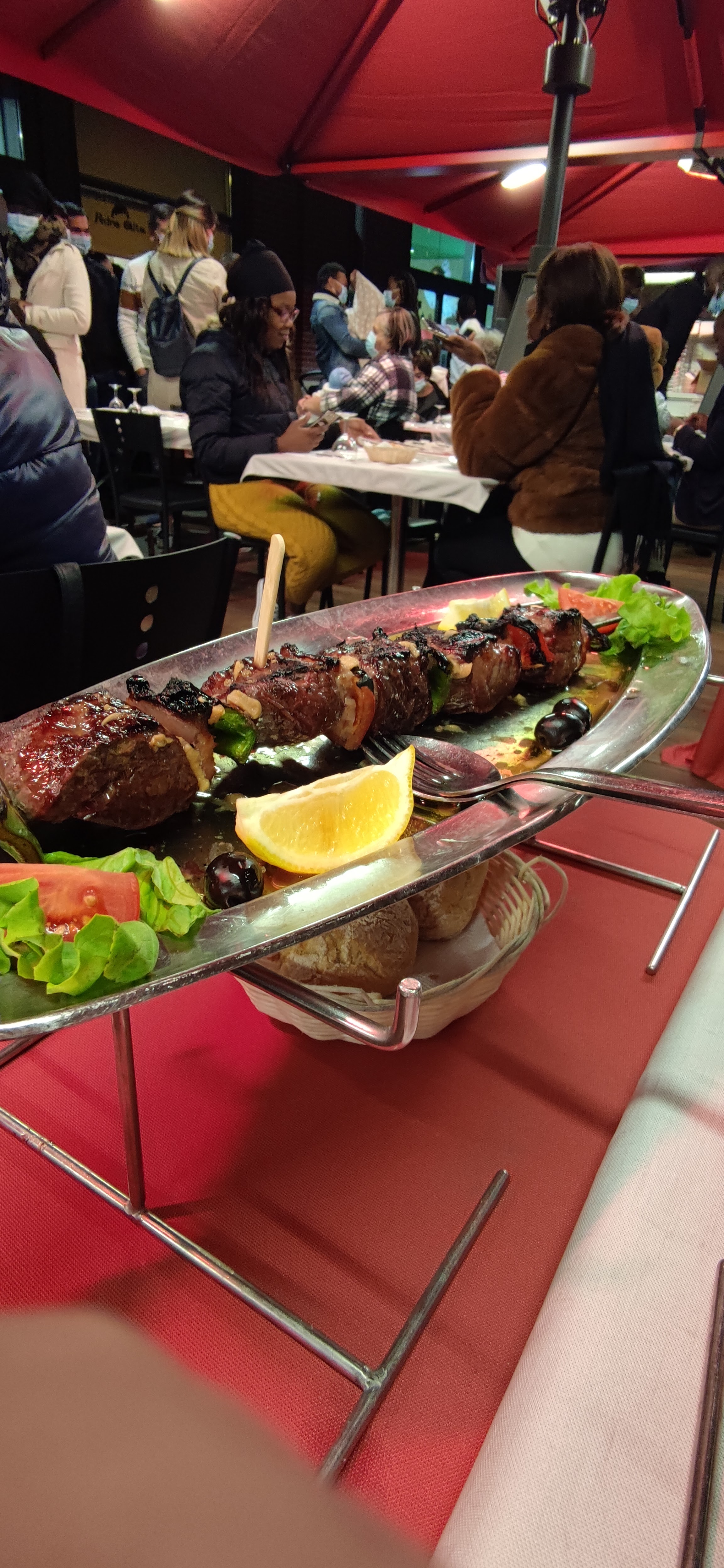 J’ai passée un très bon moment 🥰 je me suis bien régaler les portions sont très généreuses et très bonnes 😍🤌🏾obliger de prendre à emporter sauf pour ceux qui ont des extra large estomac 🤣 juste ce qui m’a déranger c’est les serveurs qui chantent pour les anniversaires ils chantent pendant un long moment et c’est dérangeant trop bruyant sinon au top pour le reste 🫶🏾