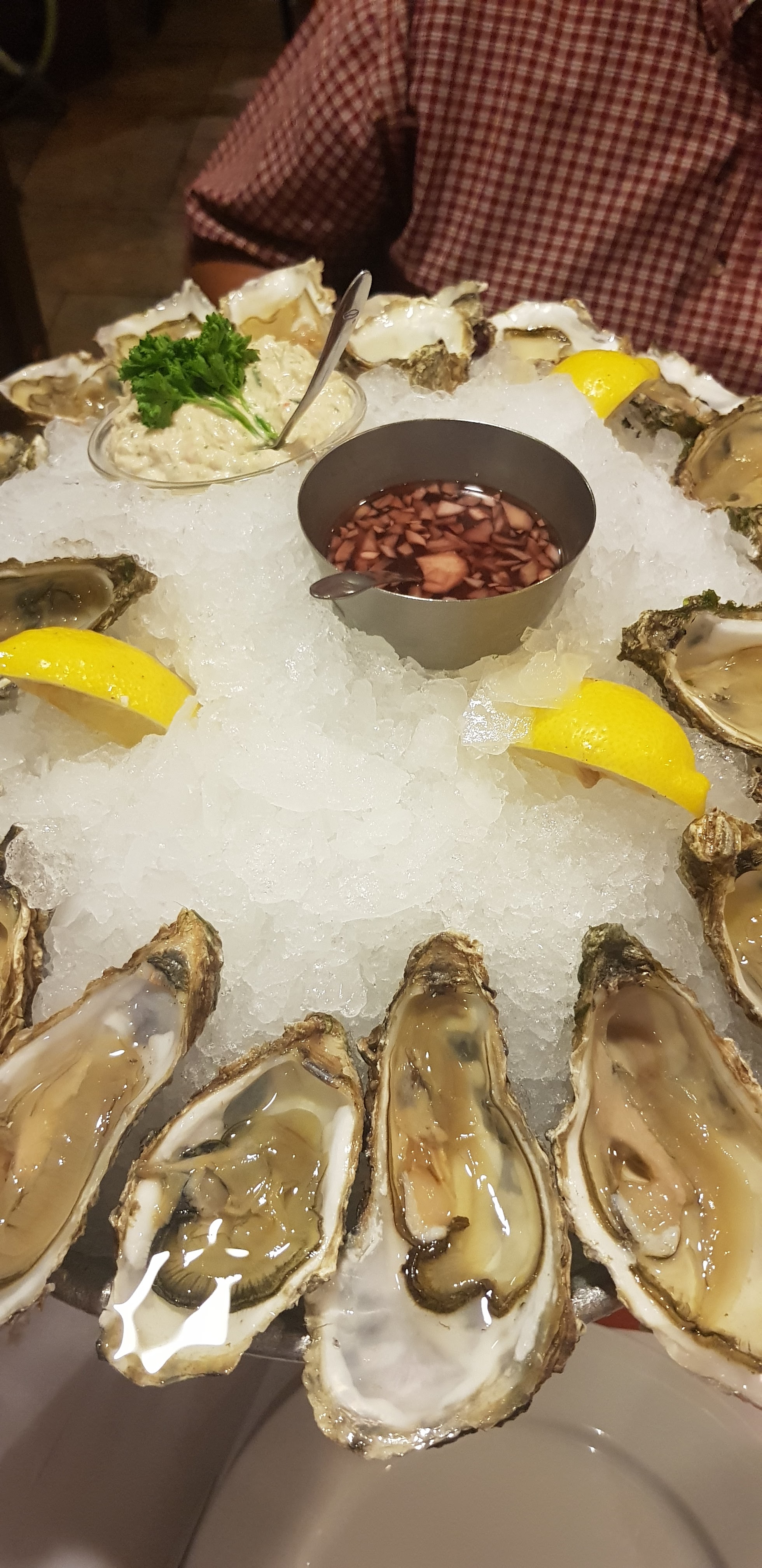 Tout était très bon et des portions énormes. Les huîtres excellentes et fraiches . La viande goûteuse et tendre. Le service bien organisé et notre serveuse très sympathique. Petit bémol : les tables sont trop petites par rapport aux plats trop grands. Il faut bouger assiettes, verres et couverts pour déposer ces énormes plats. À améliorer !