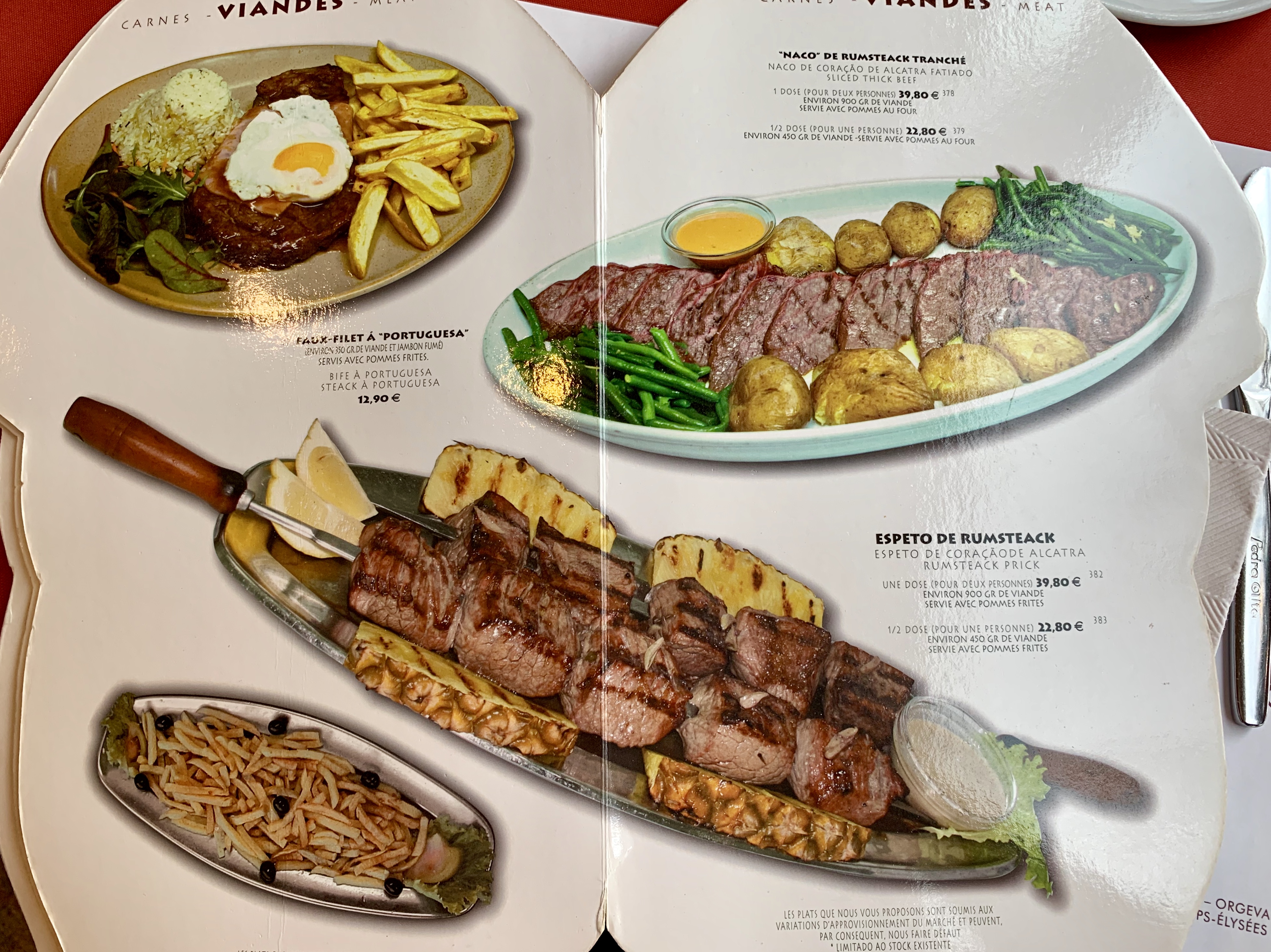 Specialites portugaises dans ce restaurant on on fait ripaille. Les plats comme les desserts sont servis en grande quantite Privilegiez les poissons ou les fruits de mer dont ce restaurant est specialiste. Piur les viandes Mettez s y le prix pour une viande tendre et savoureuse Tres bon rapport qualite prix Tres bon service. Il y a beaucoup d affluence et vous risquez de faire la queue a l entree 4 etoiles et demi pour moi
