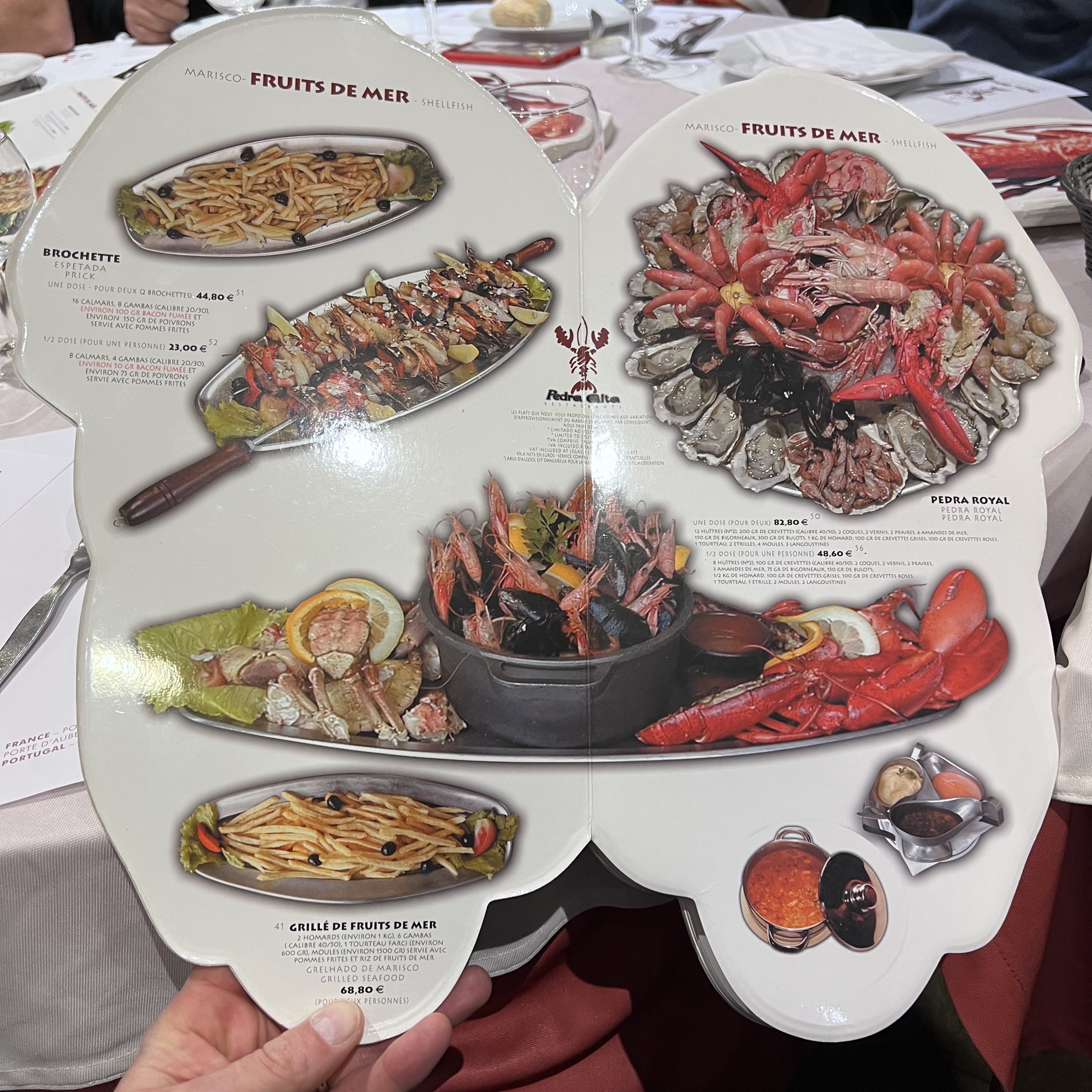 Service très sympathique. Personnel adorable. Copieux . C’est bon, (niveau brasserie) et Original ( plats portugais) mais Des portions telles que .. le plat servi à une personne en nourrirait 4 facilement. Les petits homards aux pinces arrachés dans le vivier à l’entrée meurent pour rien après une vie de misère..c’est juste honteux par ces temps de disette pour beaucoup et vu l’état de la planète.