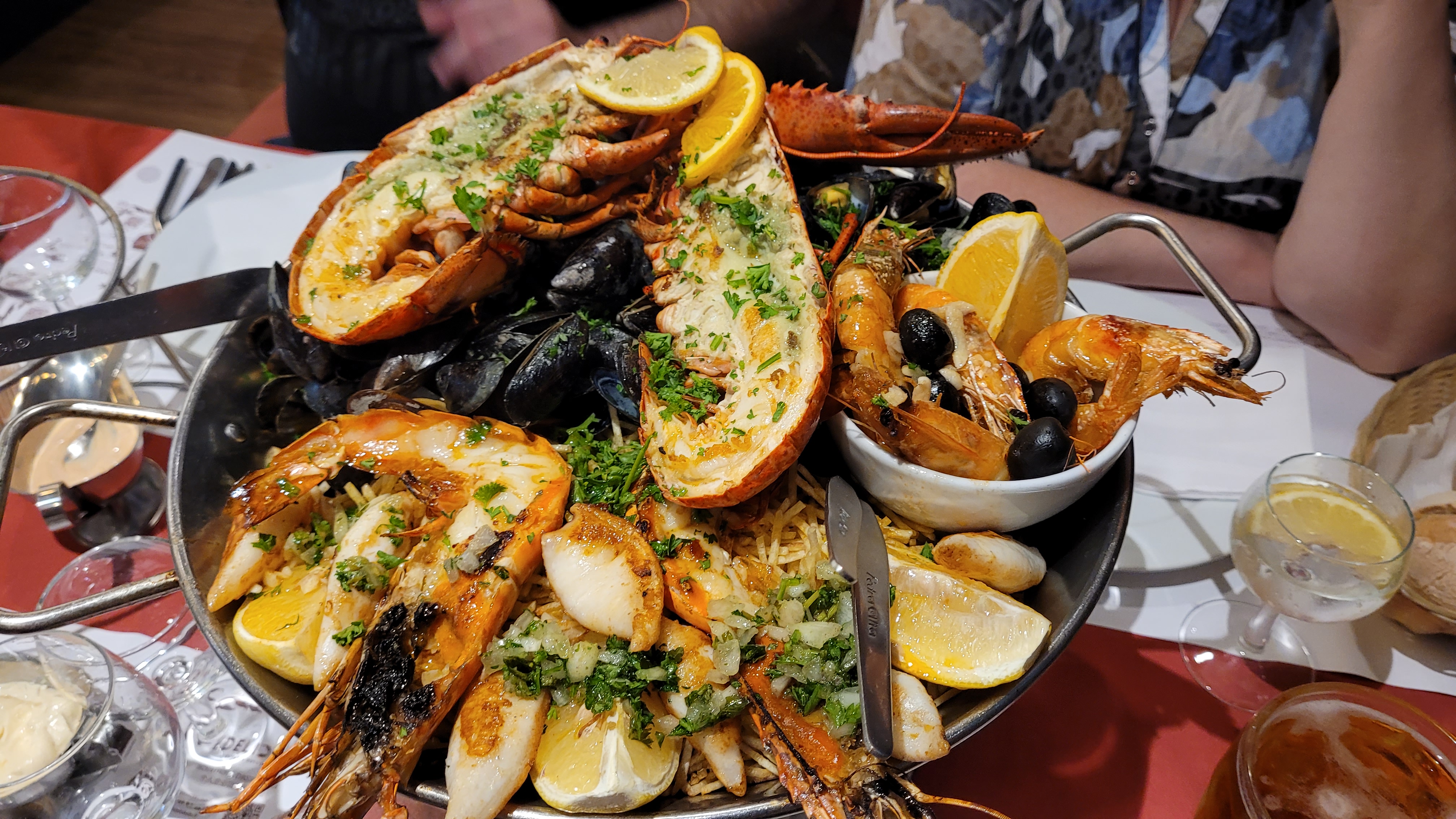 Restaurant très sympa mais tout est trop cuit , grosses quantités , beaucoup de monde donc cuisson mode cantine , tous les fruits de mer sont caoutchouteux surtout les calamars et dommage de gâcher du homard en le faisant lui aussi trop cuire . Les petites frites croustillantes ne le reste pas longtemps baignant dans le jus de cuisson d'un peu tout en fait . Super personnel sinon !