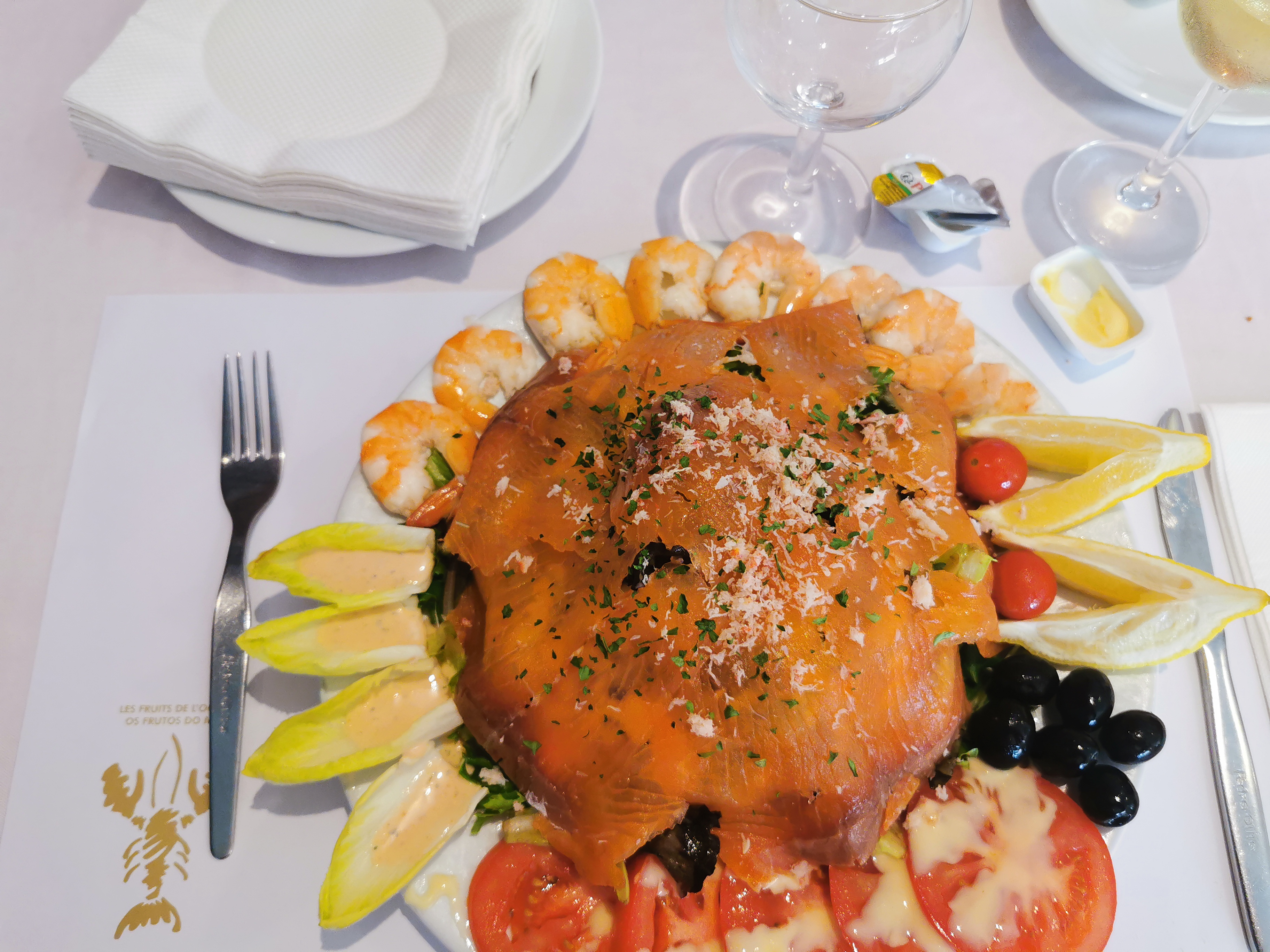 Dans l ensemble c'était satisfaisant, juste nos crustacés n'étaient pas cuits. Quelques oublis dans notre commande sinon bien dans l'ensemble.