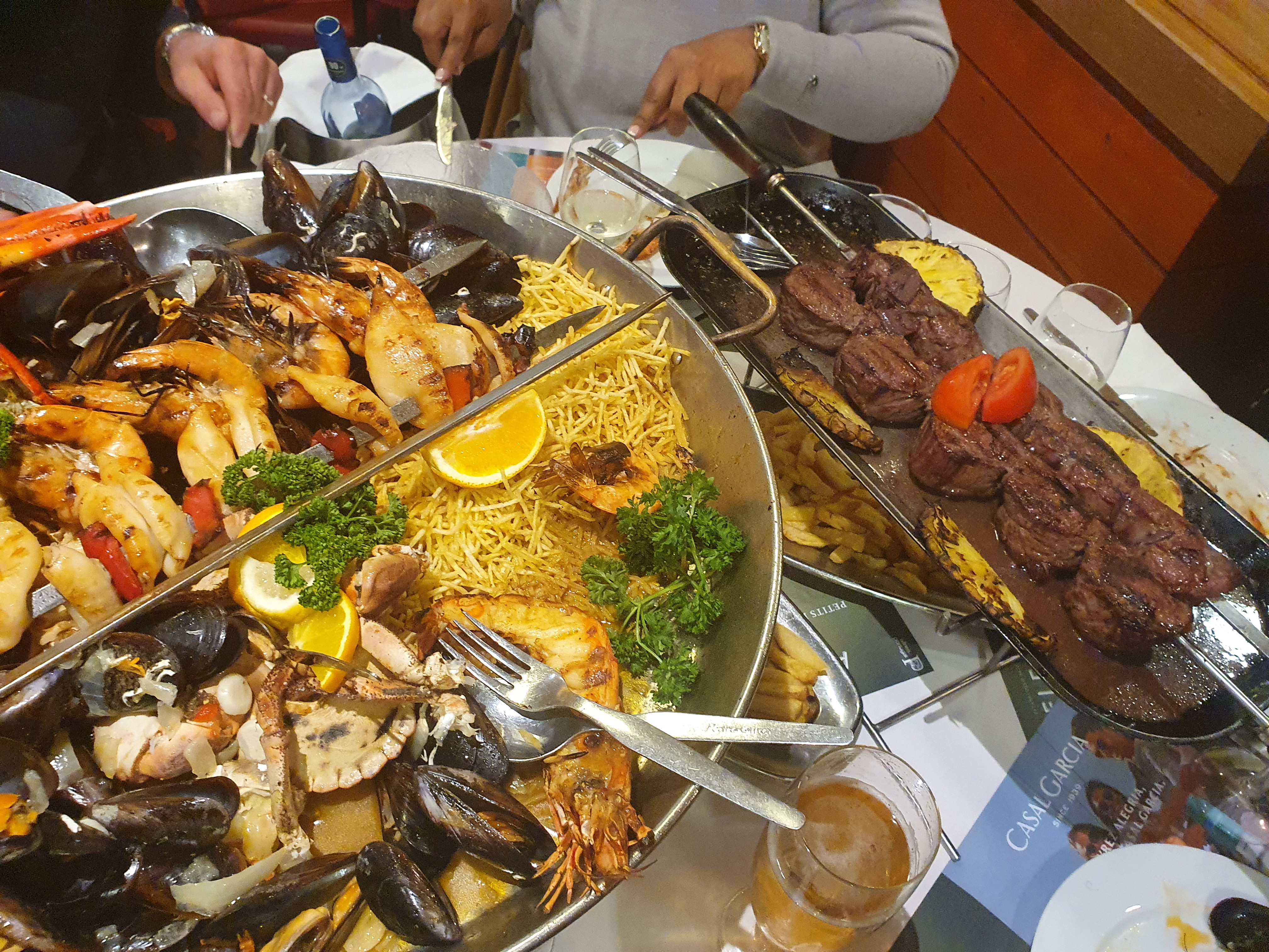 Beaucoup d attente ce jour, mais tout le monde a eu la même idée d aller à Pedra. Les plateaux toujours aussi copieux, mais cette fois-ci il manquait les moules. Bien sûr ça a été remplacé par autre chose.