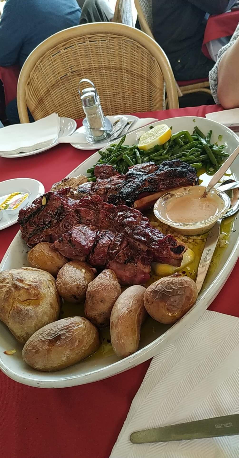 Tout est bon surtout la côte de bœuf avec haricots verts les frites maison . La déco est un peu passer besoin d'un rafraîchissement.