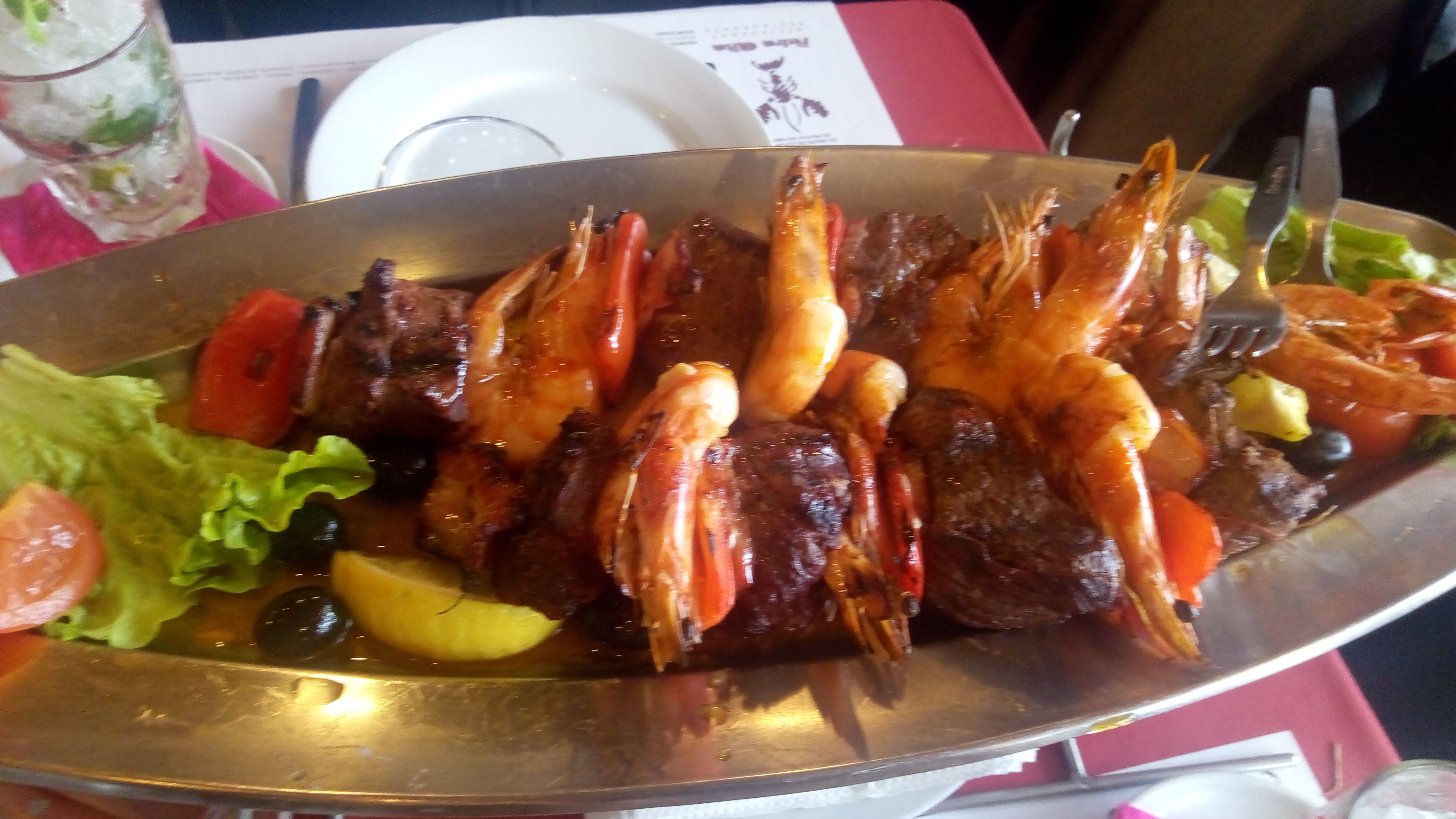 Il n'y a pas que l'estomac il faut avoir bien solide.. mais aussi son porte-monnaie ! Je trouve les plats légèrement disproportionné.. et coûteux. beaucoup de quantité, et probablement beaucoup de gâchis.. Voici un plat pour 3 personnes. 94euros pour ceux qui se pose la question évidemment on a pas tout fini.