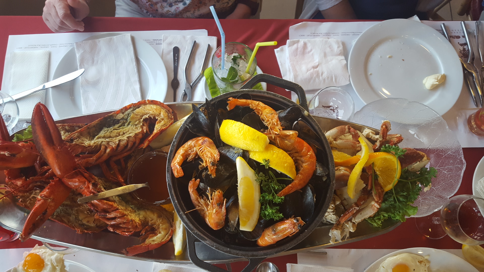 Bien bon moment ce dimanche 20/08 avec ma grand-mère dont l'appétit ne faiblit pas :-) On avait pris le plateau Cataplana, waouh, heureusement que j'avais sauté le p'tit déj.. super la brochette de calamars/crevettes grillés, le homard... Leur riz aux fruits de mer passe bien.. La grand-mère voulait absolument sa Poire Belle Hélène alors on l'a accompagné.. les Pasteis étaient bons sans être exceptionnels, le feuilleté pourrait être un peu retravaillé. C'est très correct comme tarifs vu les quantités.. Bon conseil sur le vin, qui nous allait bien Pour le service, rien à dire, plutôt attentionné Dur de dire si c'est représentatif du Portugal mais nous on apprécie bien Continuez ainsi !