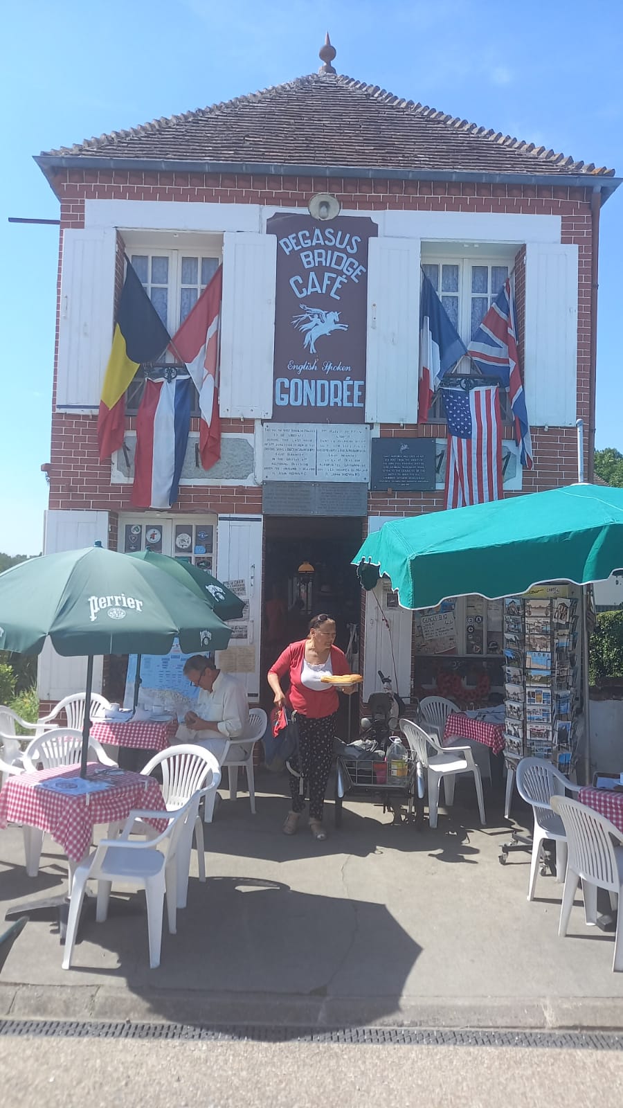 Un endroit incroyable chargé d'histoire. Vous vous tenez devant le café et regardez vers le pont et vous êtes instantanément transporté au 6 juin 1944. Les héros du débarquement ont capturé le pont Pegasus et ont empêché l'ennemi de l'utiliser. Le propriétaire du café était une petite fille à l’époque et accueille les anciens combattants comme s’ils faisaient partie de la famille. Un endroit où il faut aller pour se souvenir de ceux qui ont tant donné.