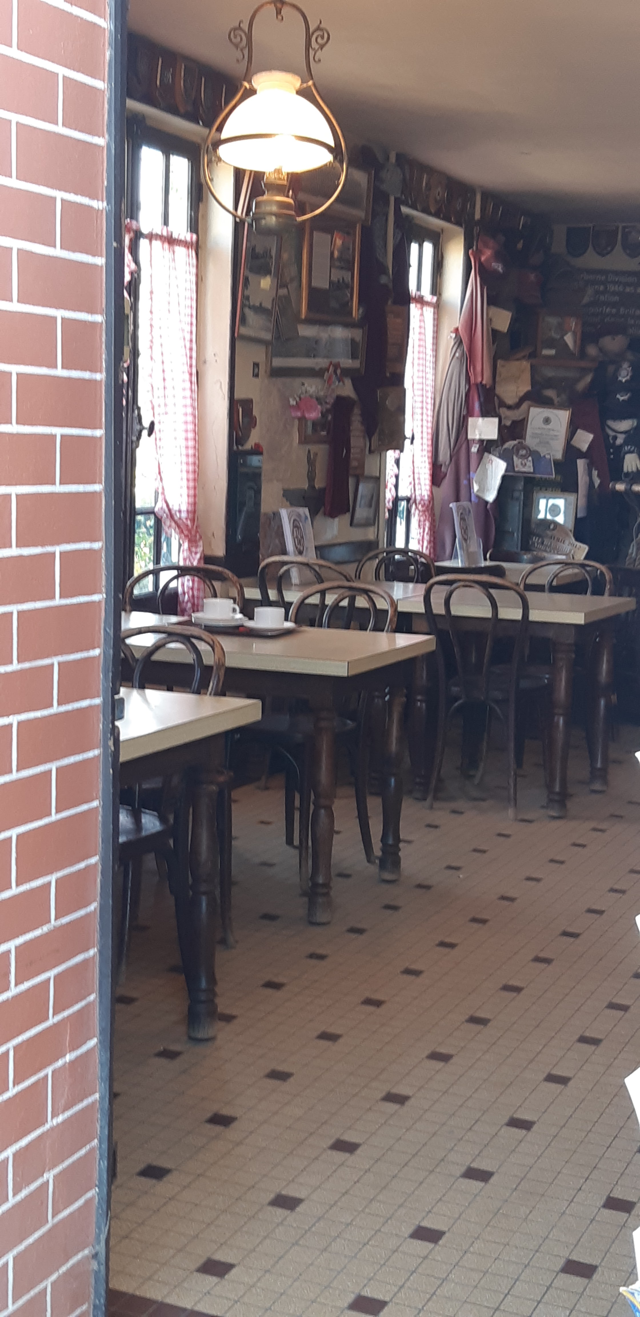 Première maison libérée. Ce Bistrot et un vrai musée. Tenu par deux petites dames. Terrasse avec chaise de jardin. Pas de service, on commande et on déplace nos consommations. Le point positif, c'est qu'un parking est mis à disposition. Chiens acceptés. Pas de bar a toutou