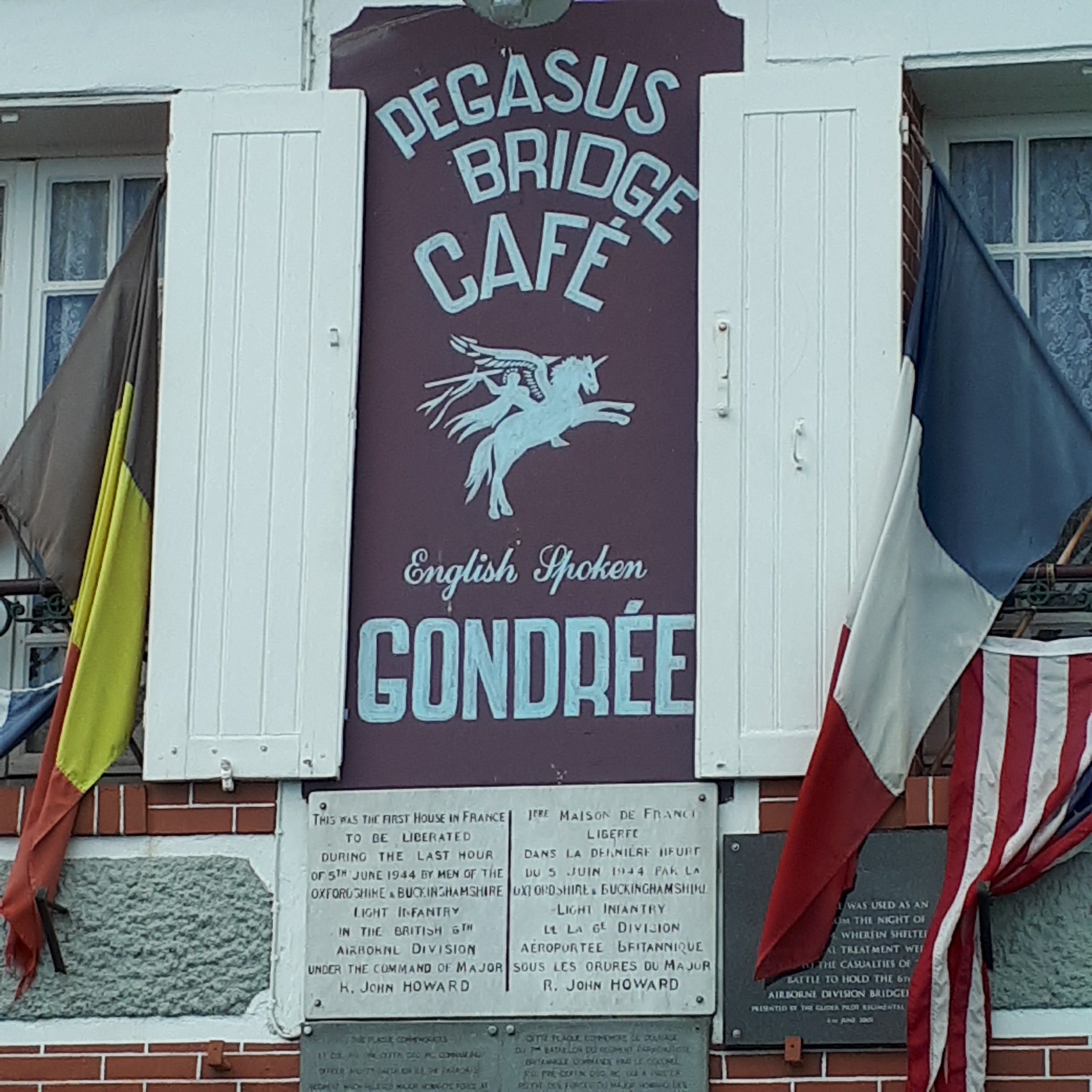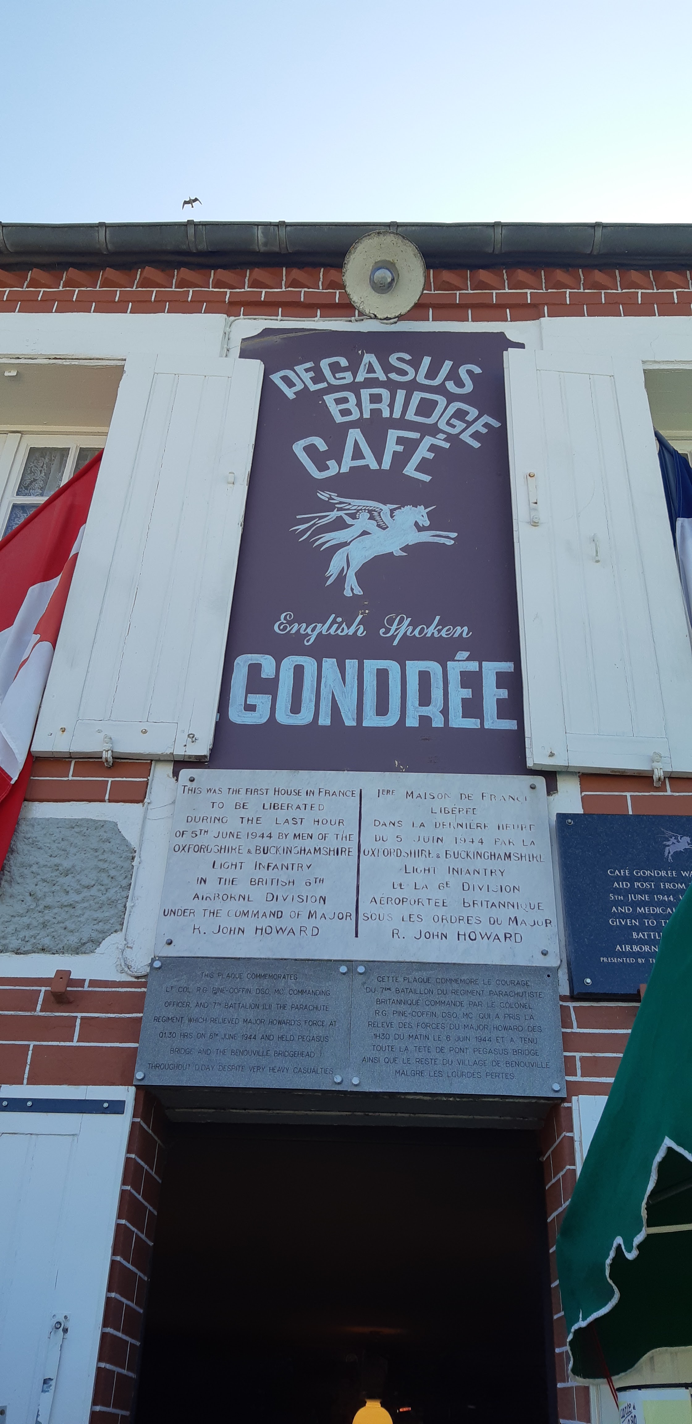 Le Café Gondree fut la première maison en France à être libérée dans la dernière heure du 5 juin 1944 par la 6e division aéroportée britannique sous le commandement du major John Howard.