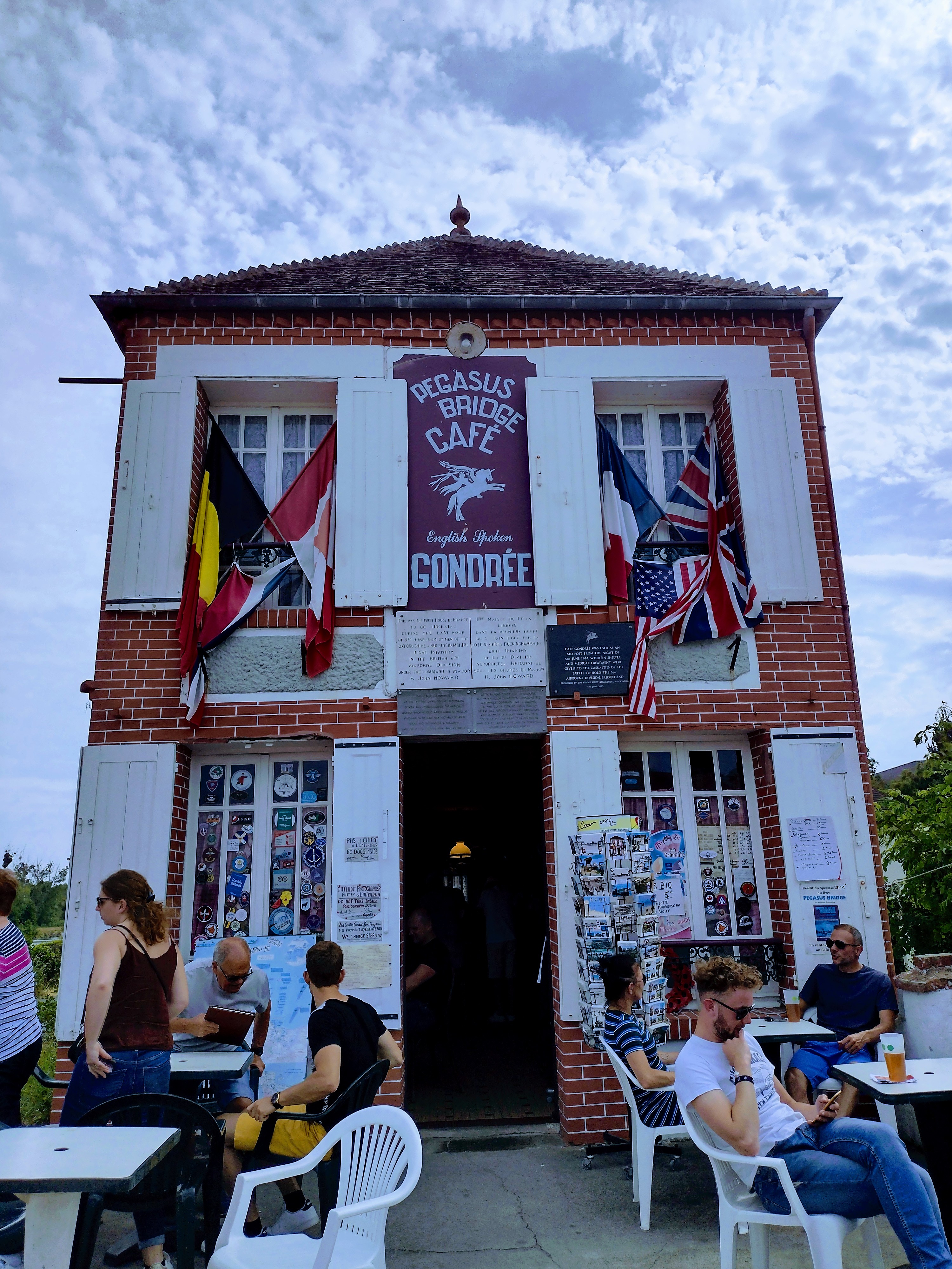 C'est toujours un plaisir pour moi de revisiter l'historique Café Gondrée, au Pont Pégase sur le Canal de Caen et de discuter avec Madame Arlette Gondrée. À l’intérieur du café se trouve un trésor de photos historiques. Le café n'accepte que les paiements en espèces.