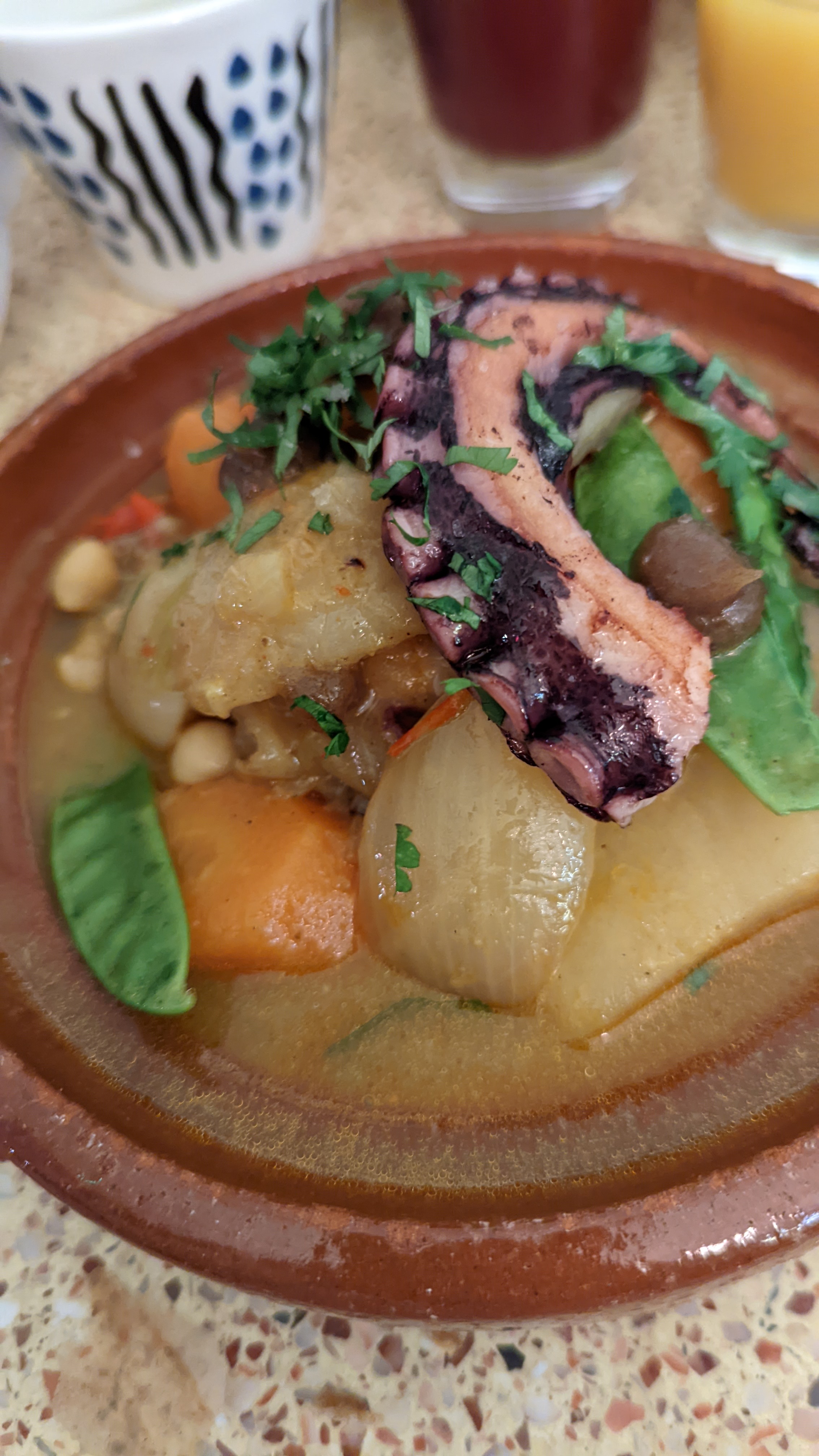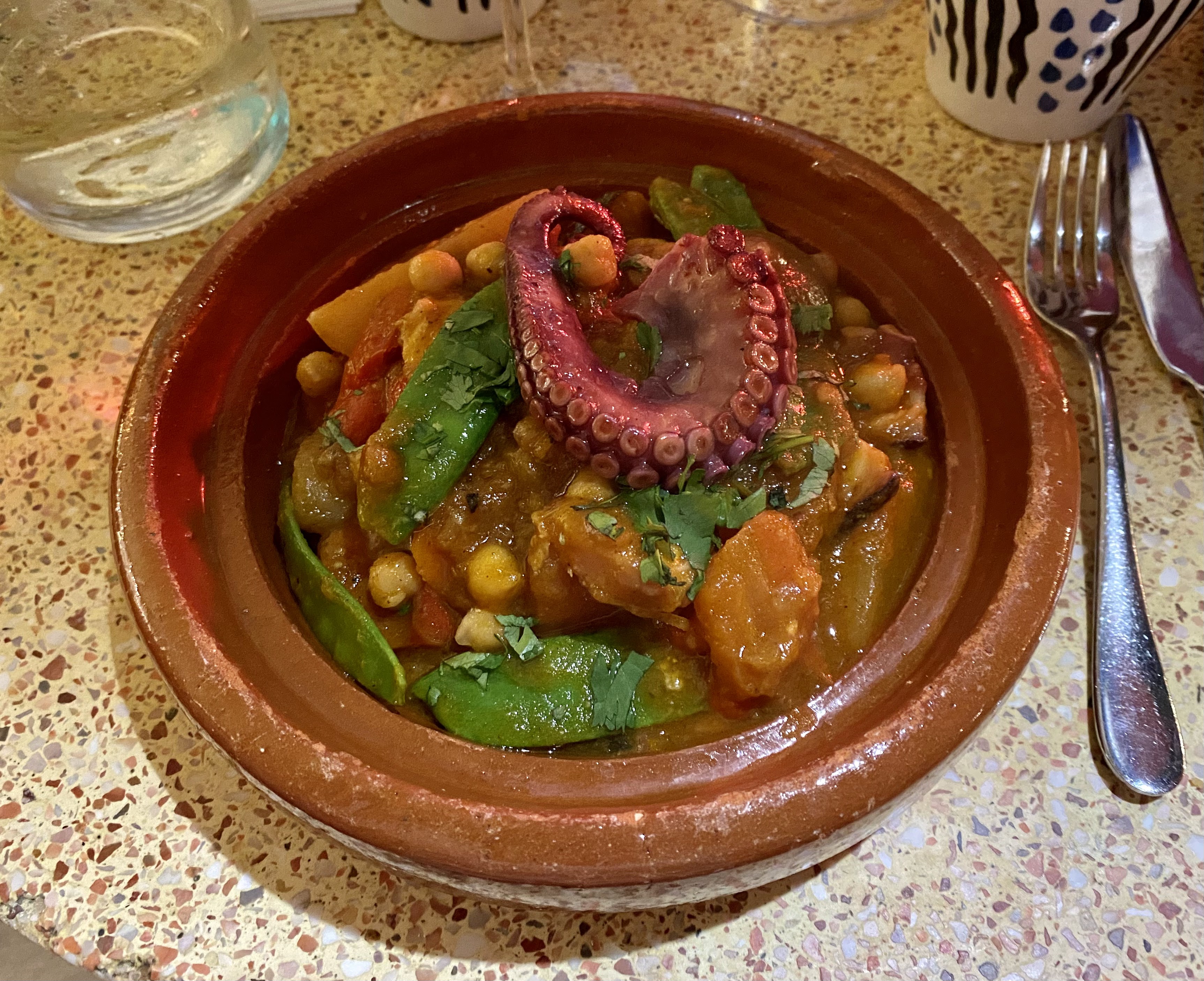 Première fois je goûte un tajine au poulpe. Plat original et très très bon. Le dessert aussi. Le personnel et l'accueil était au top. L'ambiance (musique) était sympas. Je recommande si vous êtes en couple ou entre amis (plus en terrasse il y a de l'espace)