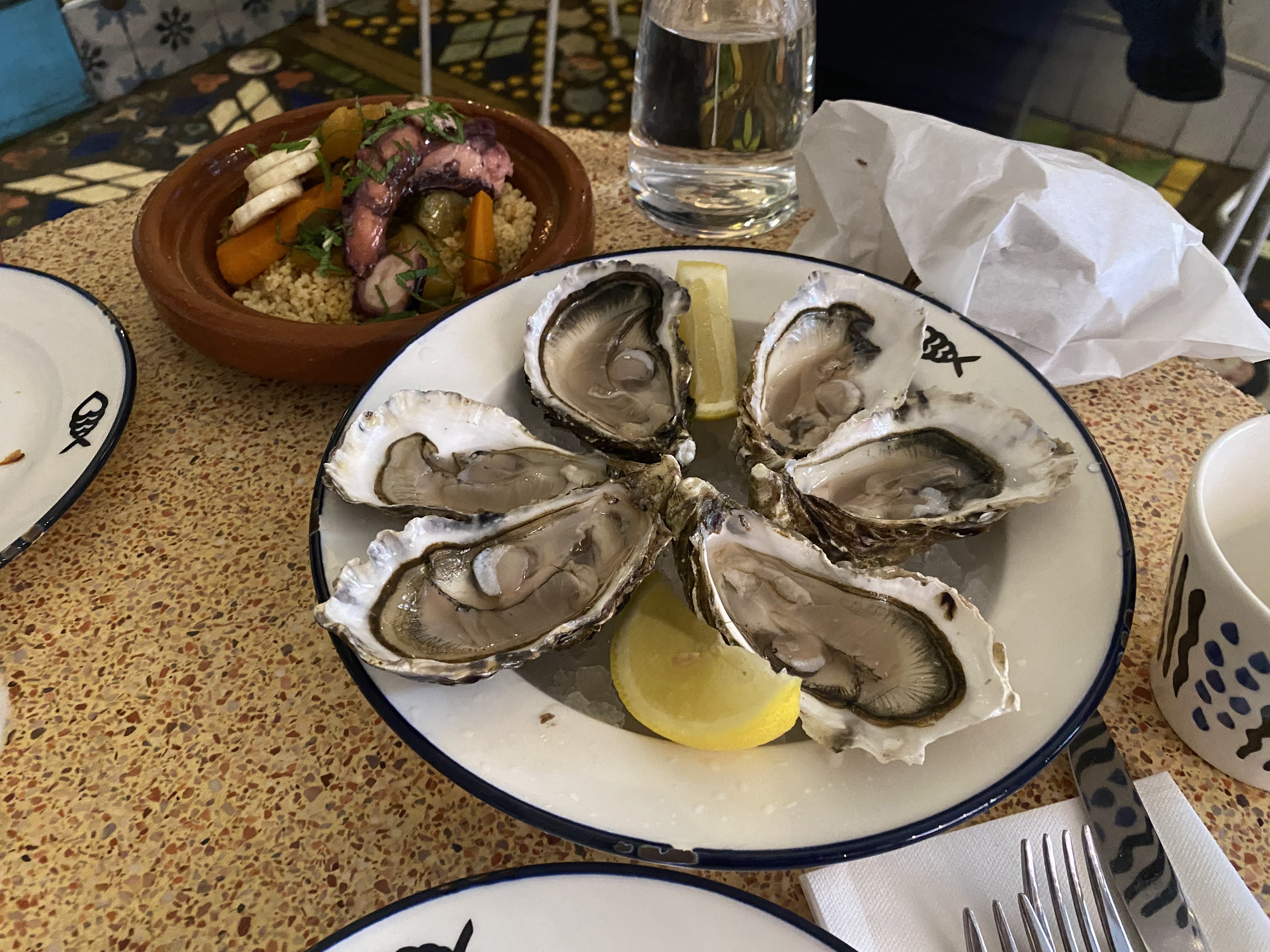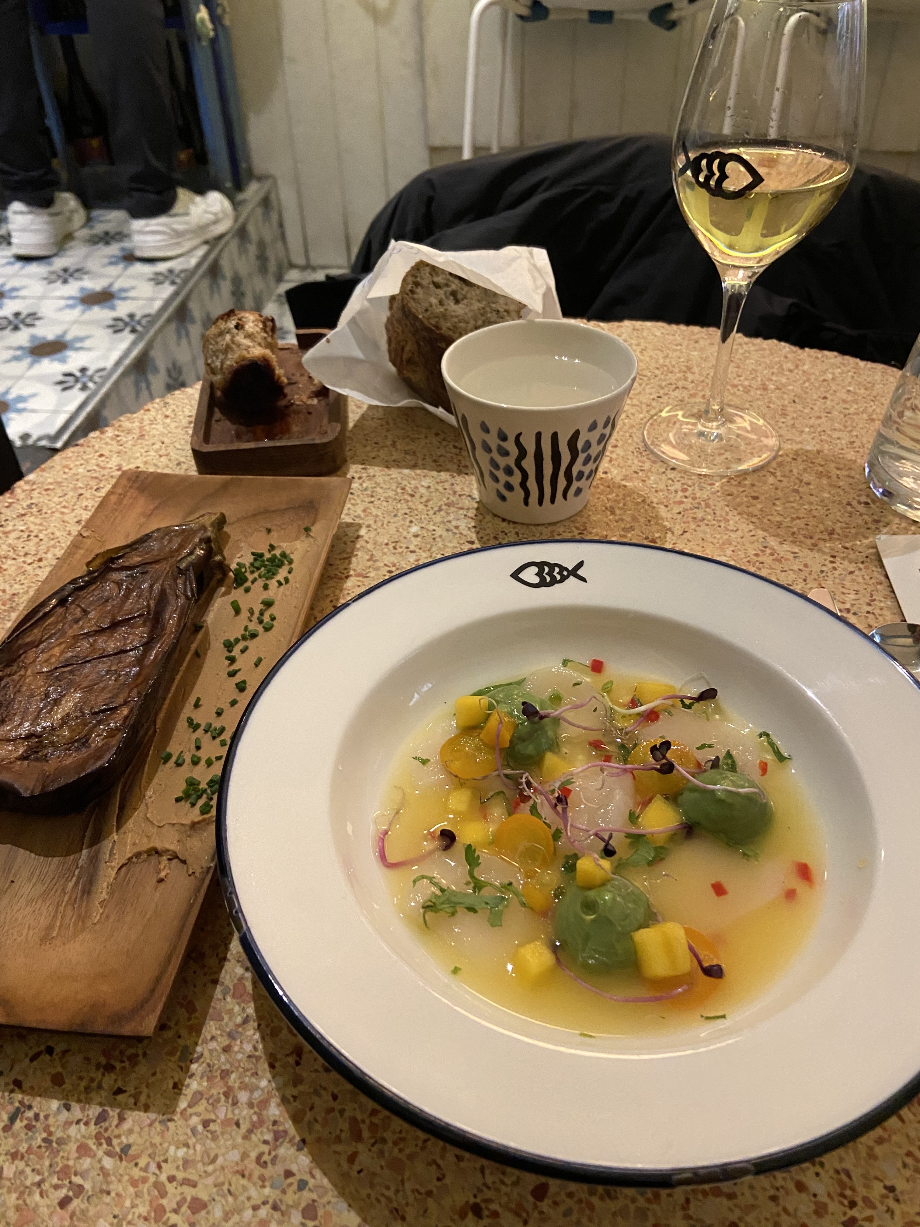 Nous voulions profiter d'être en bord de mer pour goûter des saveurs iodées : Peixes est parfait pour cela ! Pas de réservation donc venez assez tôt pour découvrir une carte courte : quelques entrées, 4 ceviches, 4 plats, et des accompagnements légumiers de haute volée (le chou-fleur rôti/cramé au tahini est incroyable). Ceviche de sériole et tagine de poulpe sont excellents, ainsi que la tarte chocolat/sarrasin. Prix un peu élevés pour la quantité mais compensés par la qualité de la cuisine, et le service très avenant.