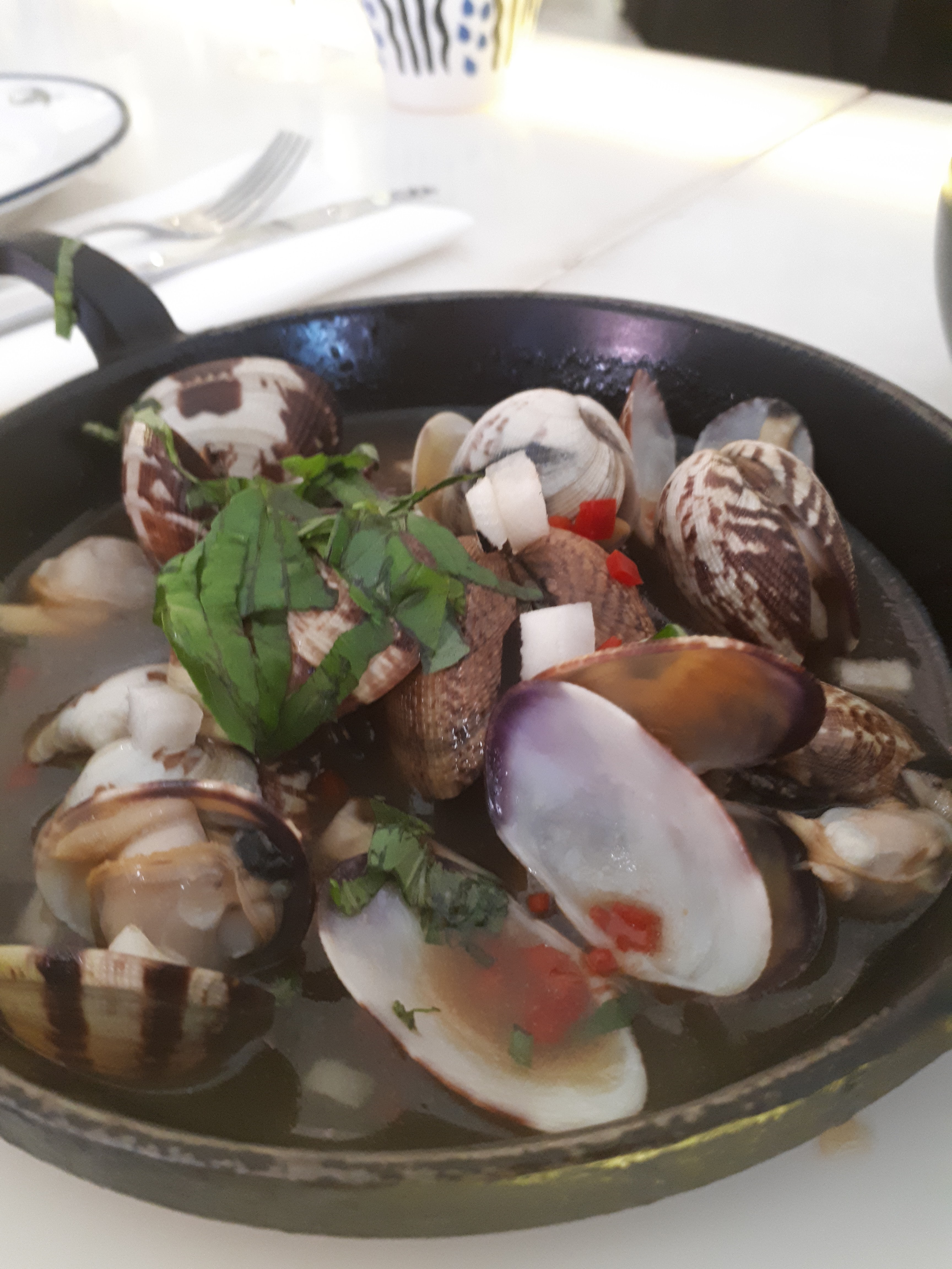 Superbe restaurant. Je me suis posée au comptoir, médusée par la préparation des plats devant moi. J'ai mangé plusieurs entrées et ils étaient tous très bon. Coup de coeur pour la cassolette de palourde et le sorbet de citron. Le lieu est finement décoré. Idéal pour l'apéro