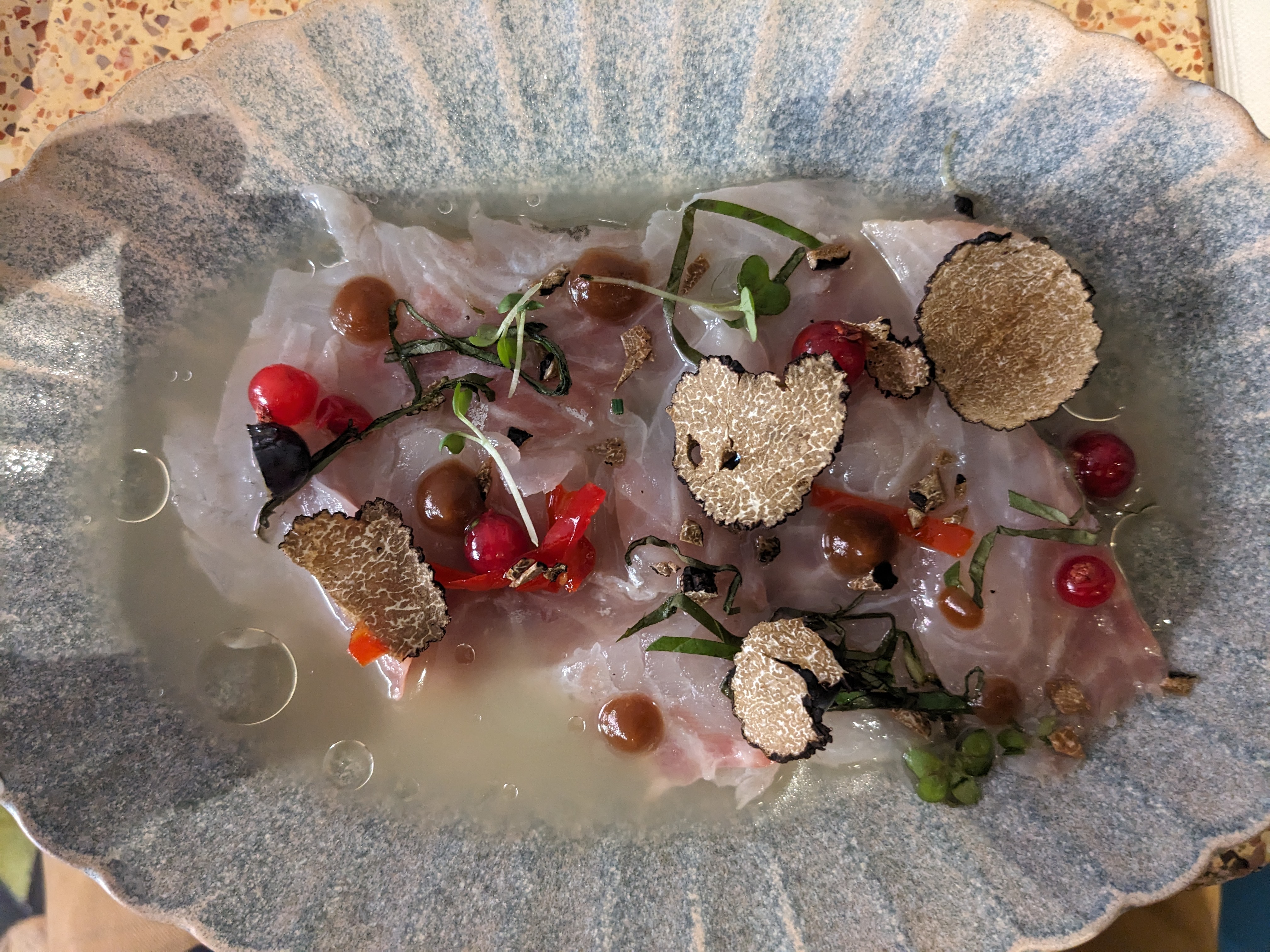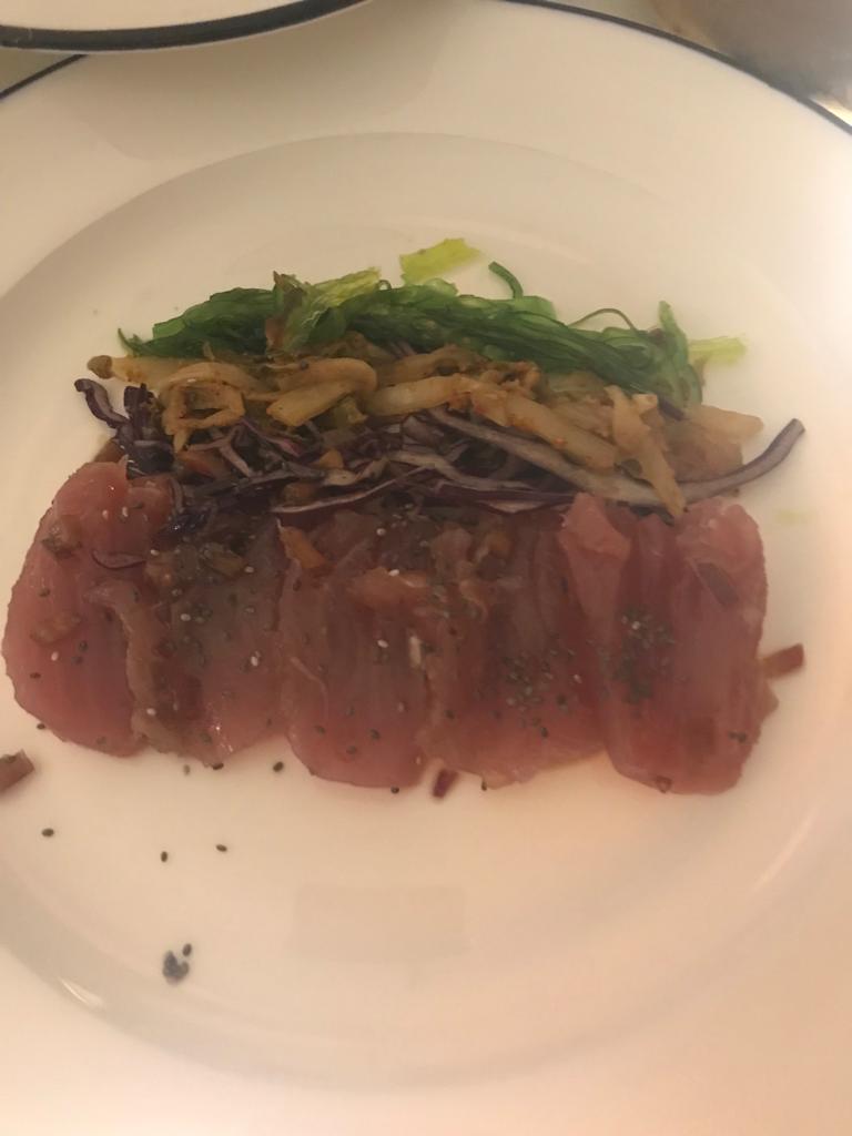 Ceviches de loup, de poisson blanc et de Saint-Jacques absolument délicieux, puis tataki de thon dont la saveur explose en bouche. Aussi joli que savoureux. Un plaisir d'être au bar et de voir s'affairer les cuisiniers. Service parfait.