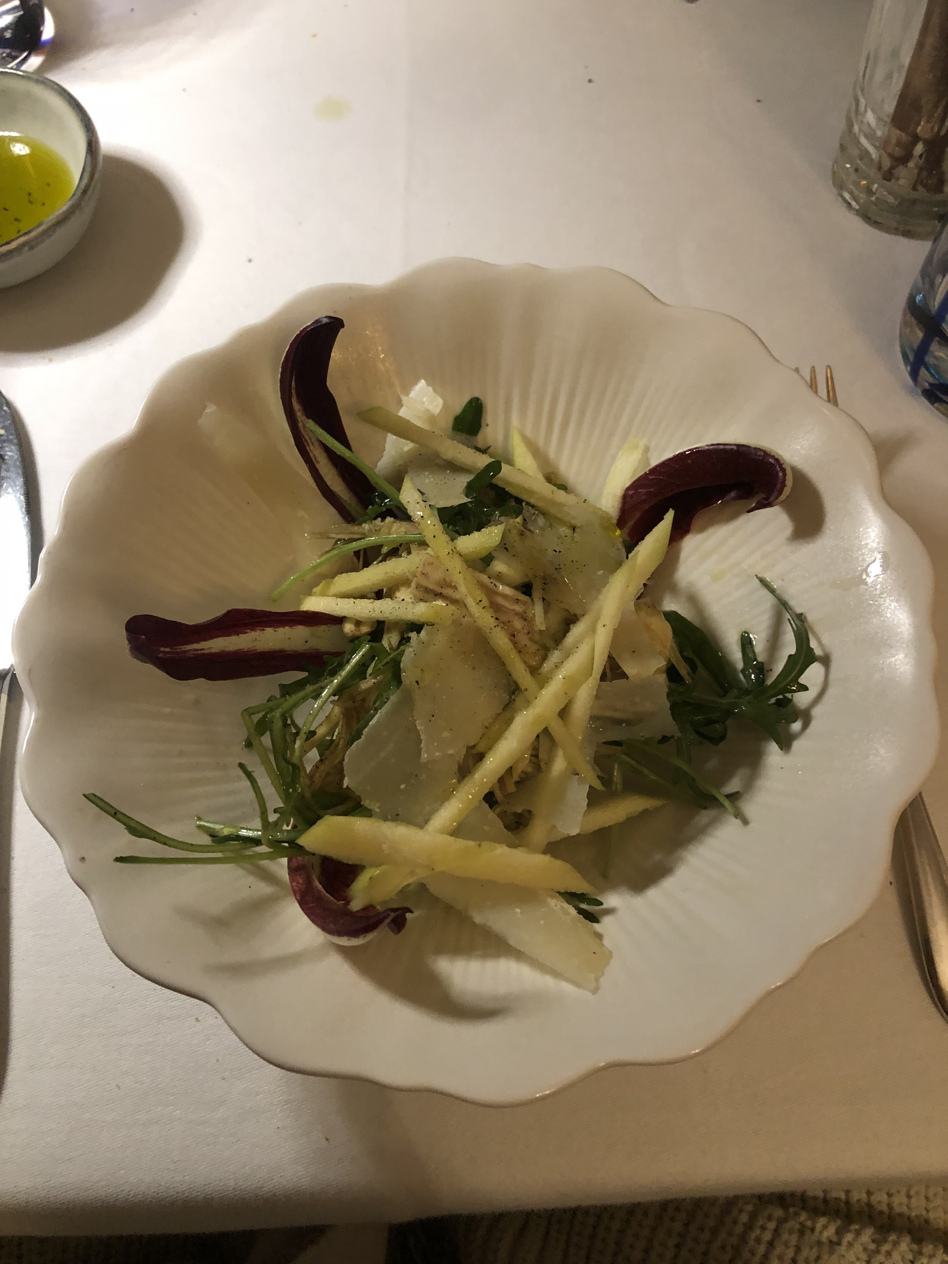 Seulement 5 ⭐️ ?!? Cette table en vaut largement 6 ! Cette table en mérite même 7… La truffe noire de Norcia - voluptueuse - est présente en majesté, les artichauts fondent littéralement en bouche, le turbot dans sa cuisson est incroyable de délicatesse, les vins sont quant à eux diaboliques… Beaucoup de malice, des sourires et du twist dans le service, une maîtrise de tous les instants pour l’assiette, toujours juste en proportion, des accords mets et vins impeccables et pertinents : il y a la du raffinement, de l’élégance… Beaucoup d’élégance… Et ce sentiment, qui devient sensation puis évidence, qu’on tutoie l’aristocratie culinaire de l’Italie…