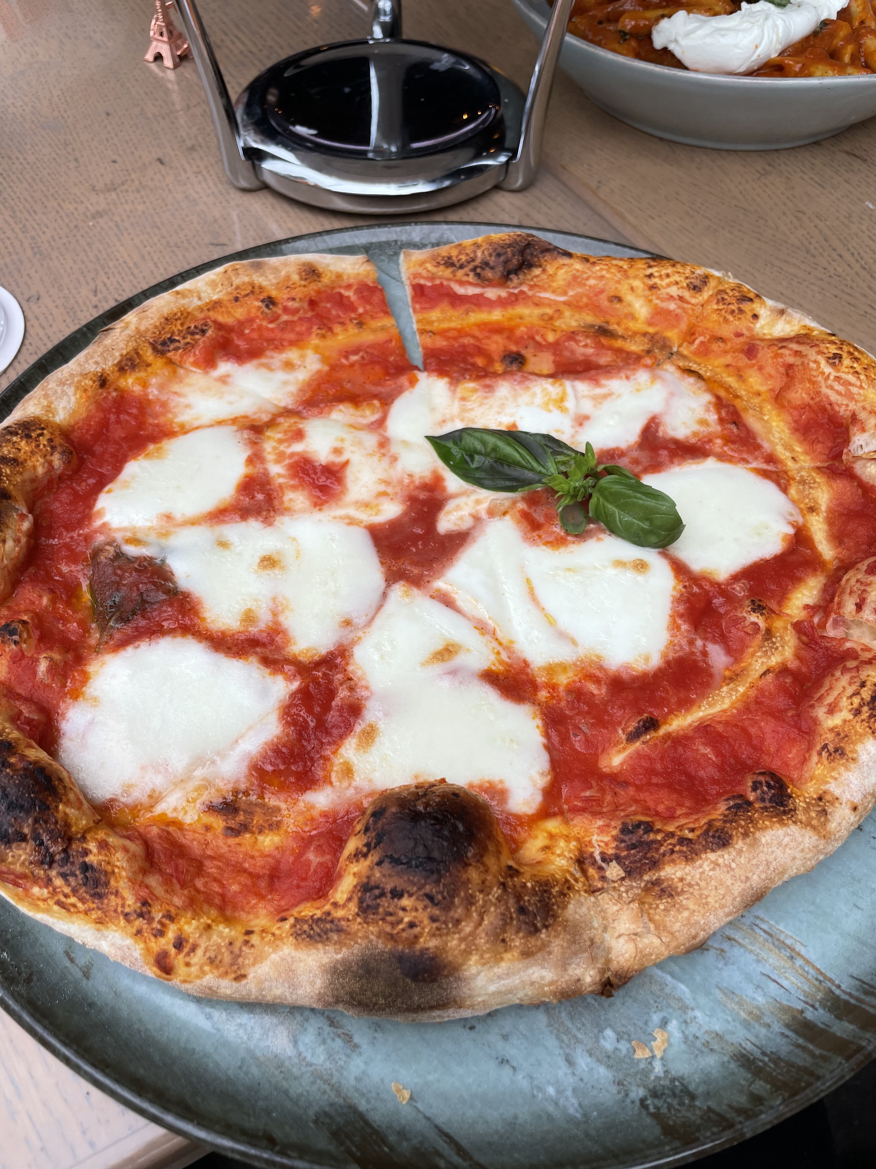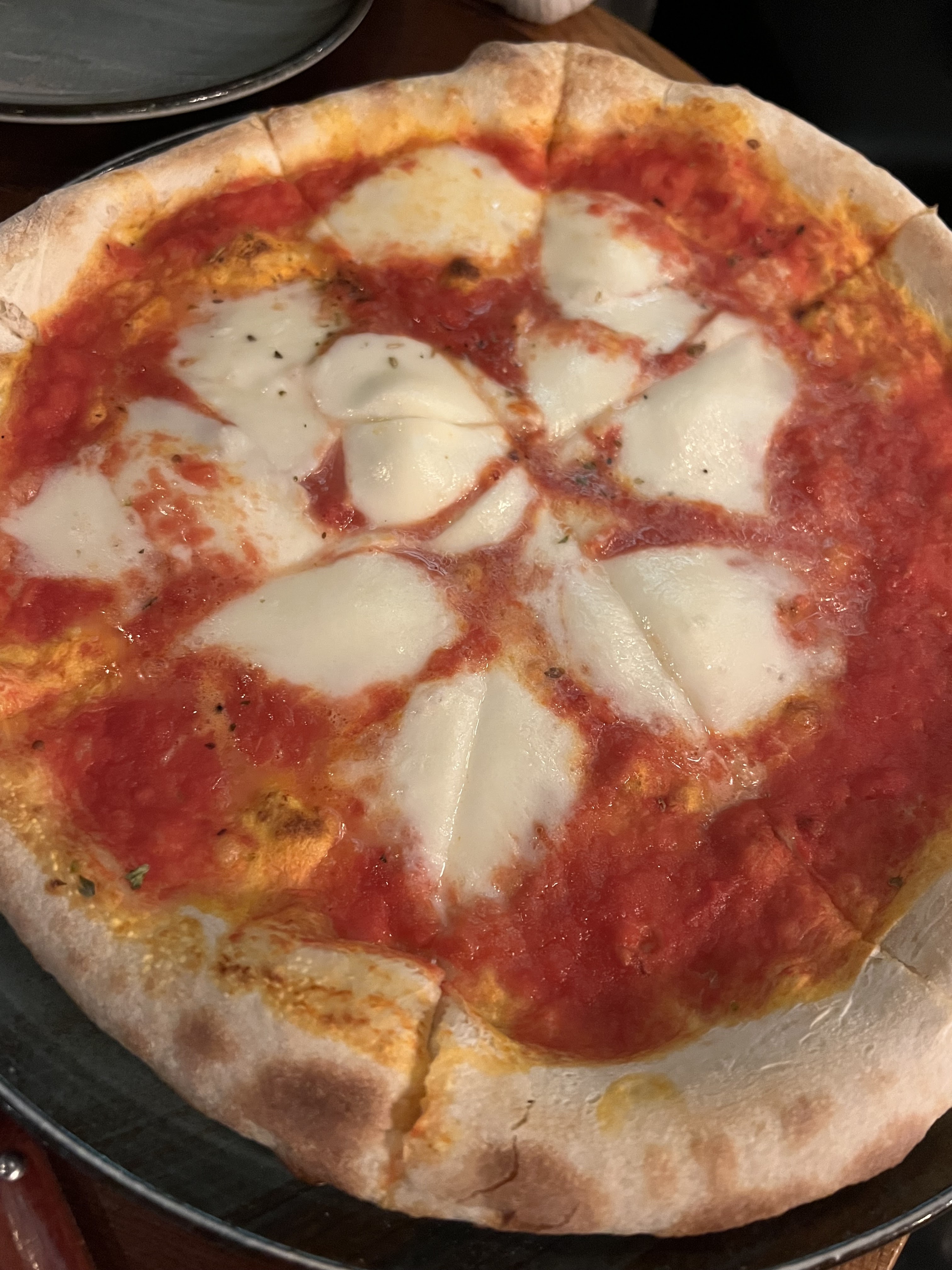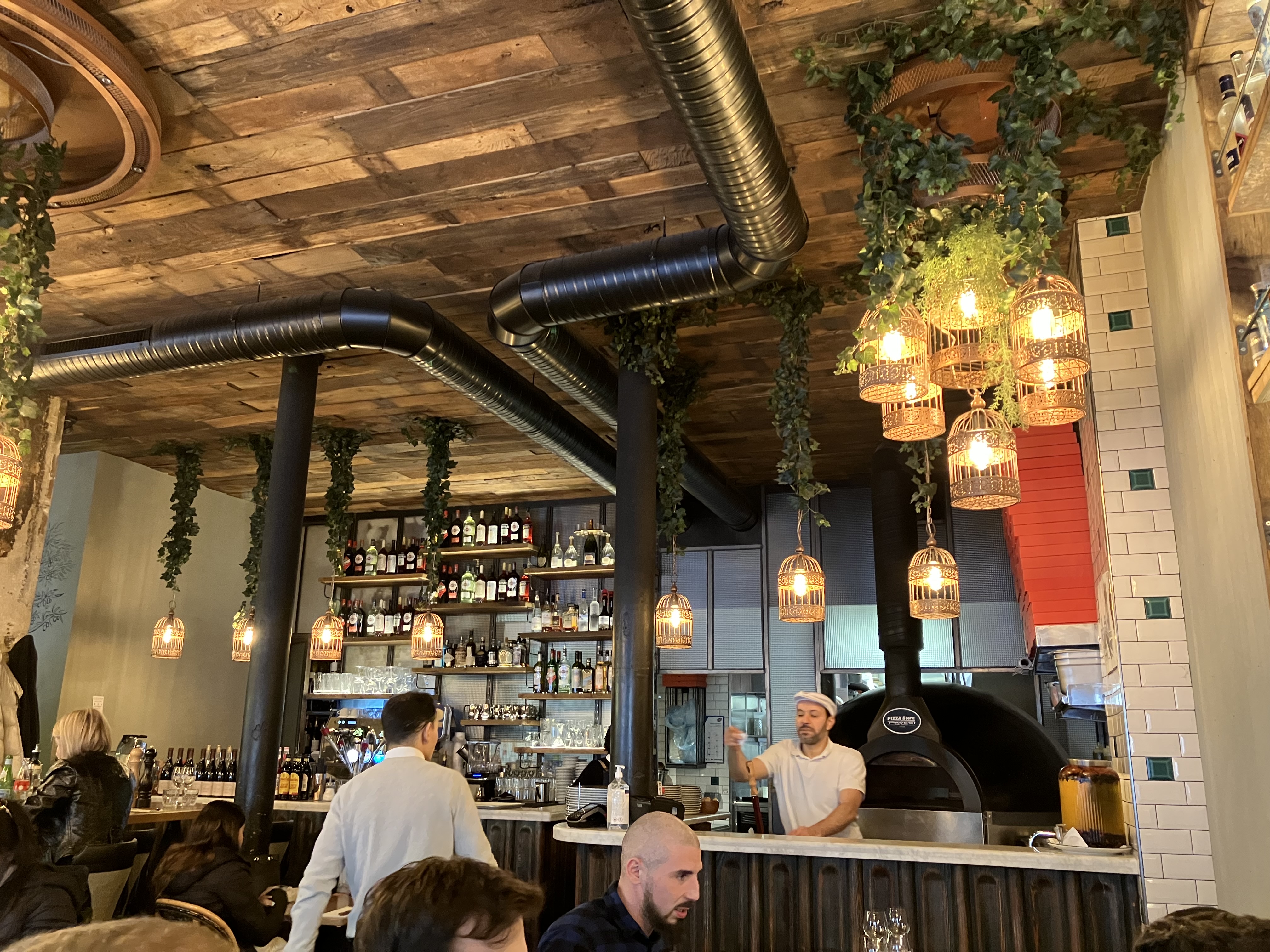 L'ambiance est sympa même si nous étions presque collés à la table d'un couple à côté de nous. (Nous n'avions pas réservé en amont). Le serveur qui s'est occupé de mon amie et moi a été parfait ! Cependant, on sent que les serveurs s'agitent dans tous les sens quand il y a plus de monde, nous avons failli nous prendre quelques plateaux dans la tête à plusieurs reprises. En ce qui concerne la pizza margherita que nous avons mangée, il y a mieux ailleurs et le prix est aberrant... Les autres plats sont donc à tester ! Cela reste un endroit intéressant pour dîner dans la capitale.