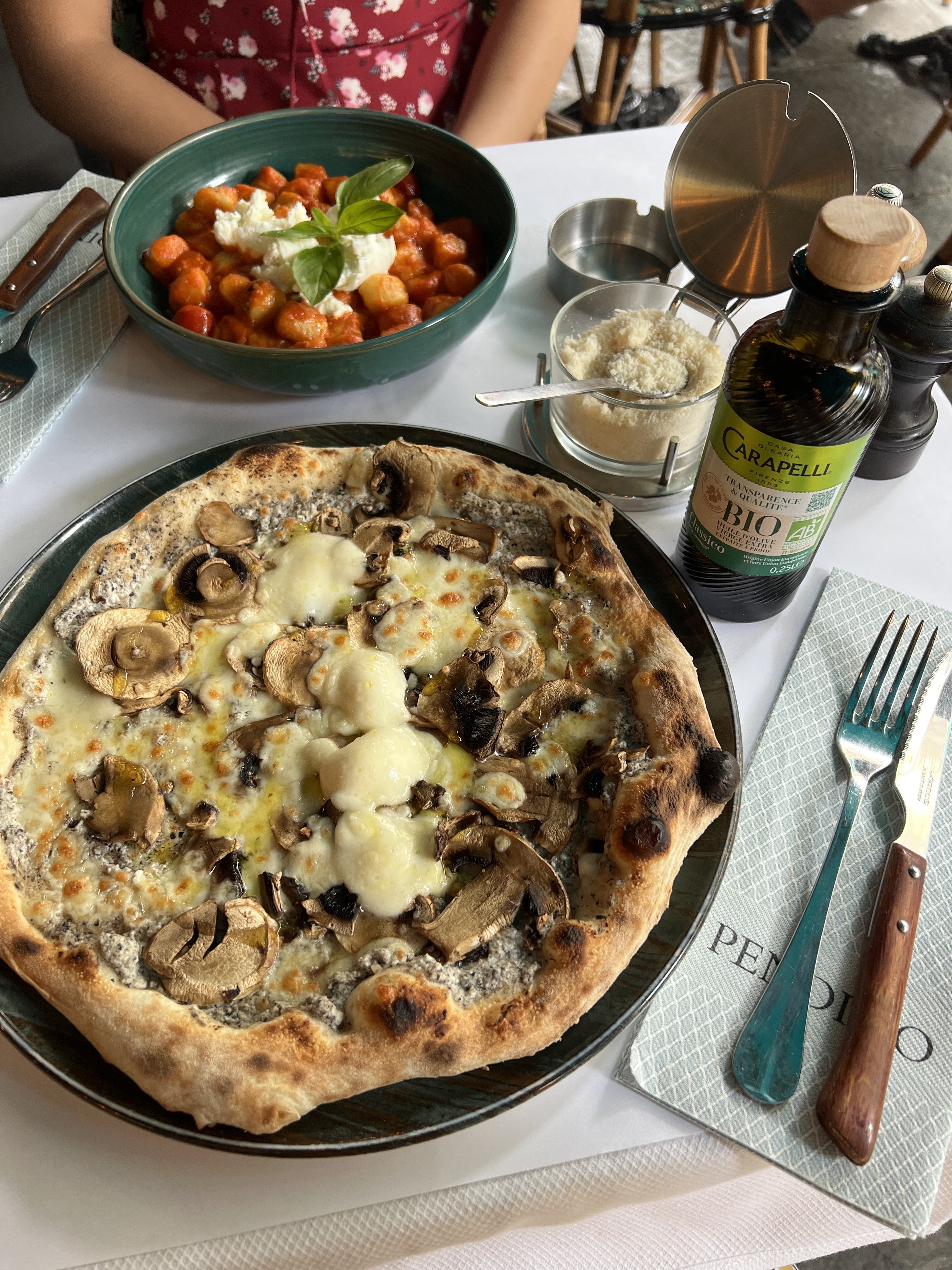 Absolument fantastique!! Globalement 12-10. Notre expérience avec ce restaurant a été incroyable, nous l'avons trouvé par chance et cela a rendu notre visite en France encore meilleure. Bouteille de Rose. (Absolument incroyable!) Nous avons eu des antipasti et une salade César en entrée, de très bonnes portions ! Nous avons mangé une pizza chacun, Petite Italie et Parme, une des meilleures pizzas que nous ayons mangées de notre vie ! Nous étions tellement rassasiés à ce stade, mais après avoir eu une si bonne expérience avec la nourriture, nous sommes allés essayer le tiramisu et le milkshake. OH MON DIEU! Je ne peux pas exprimer avec des mots à quel point j’aimerais que tout le monde essaie ce restaurant. Ça vaut vraiment le coup. Ajoutez-le à votre voyage en France !!
