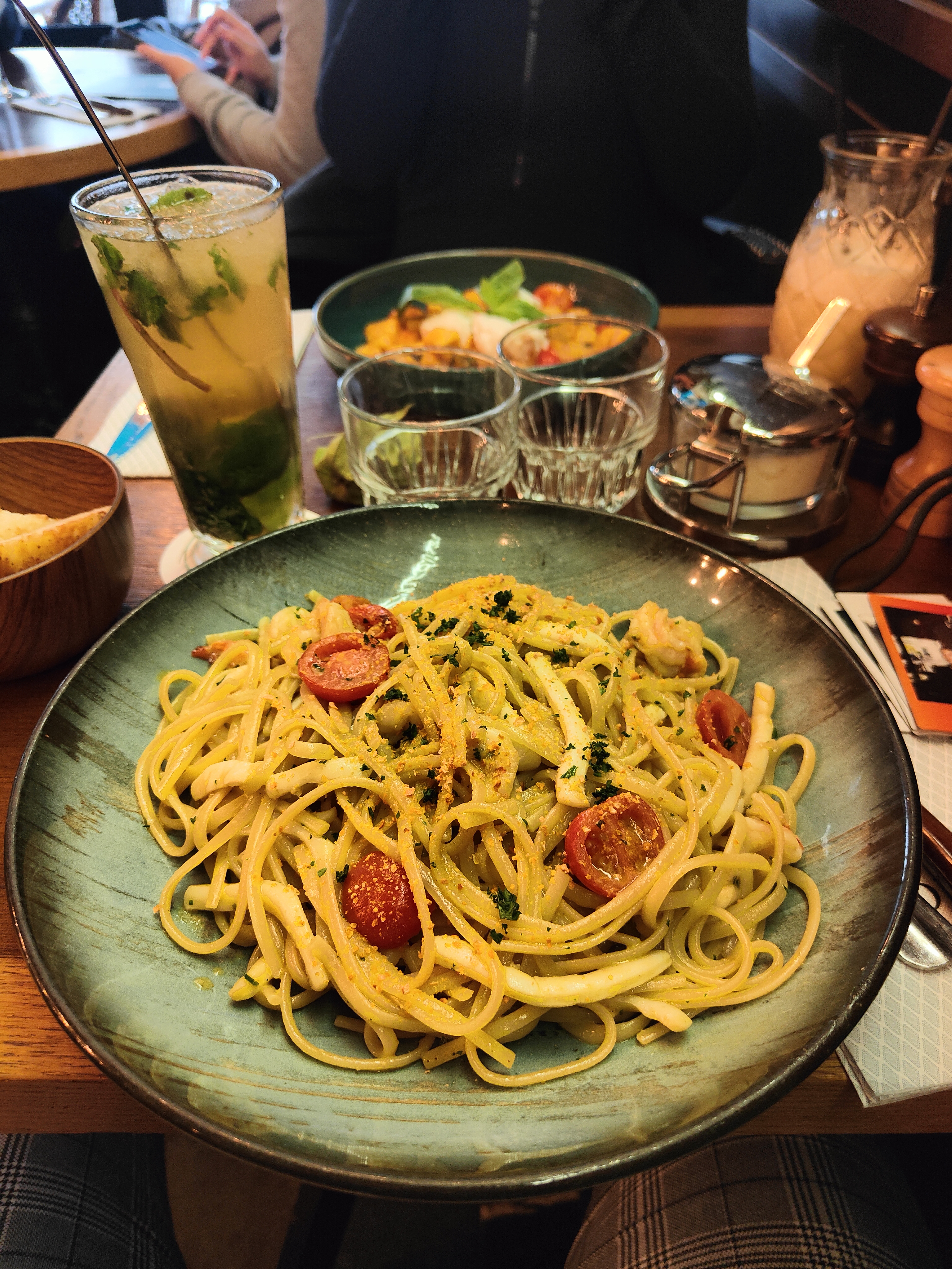Linguine gambas calamars à 24€. Je m'attendais à me régaler. J'ai attaqué par un côté déjà tiède. Gambas de la taille de crevettes, calamars discrets dans l'assiette. Lasagnes pour mon amie. Sans sel. Salade sans saveur laissée au final dans l'assiette. On paye le quartier. Un cadre chaleureux. Un service impeccable.