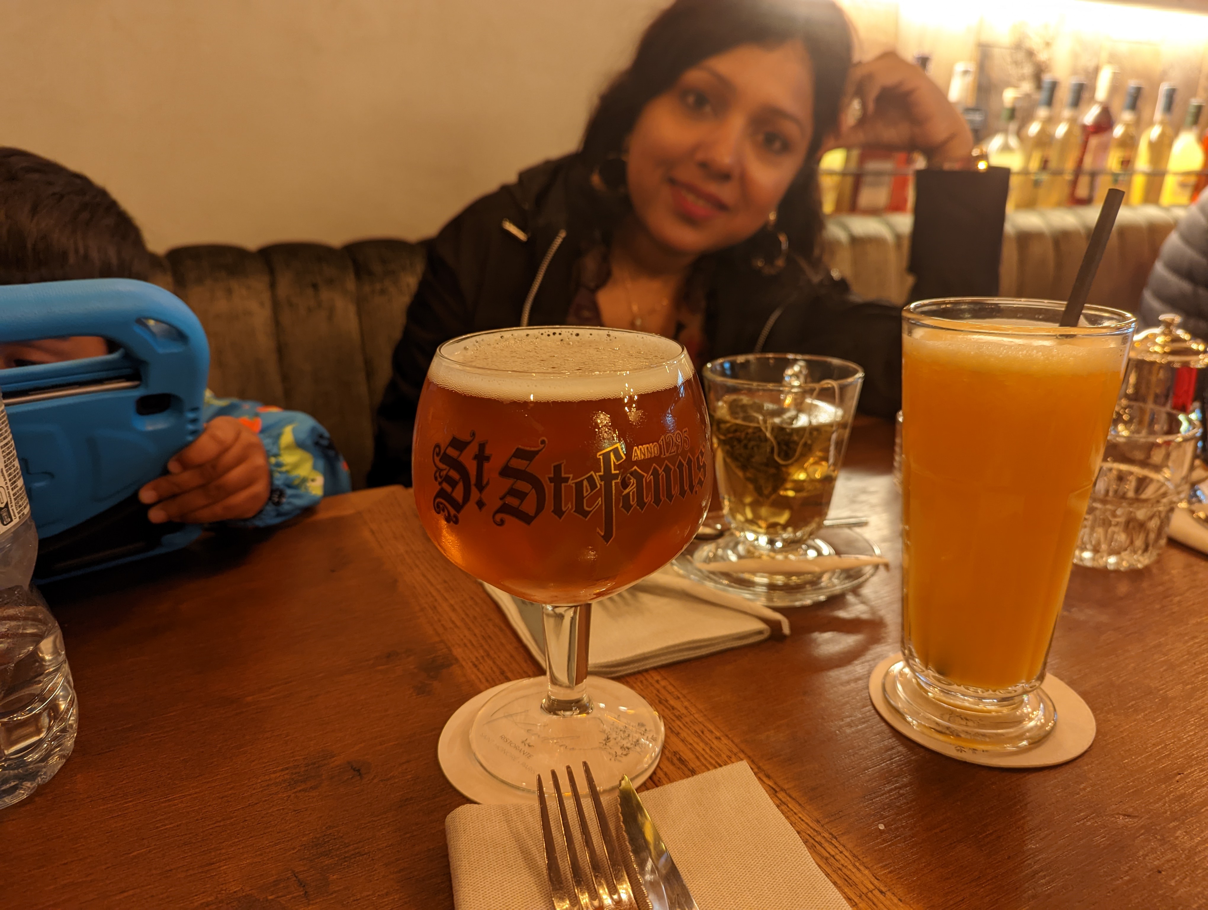 Nous nous sommes arrêtés car lorsque nous sommes passés devant, les gens mangeaient et la pizza avait l'air bonne. Après avoir vu qu'une salade coûtait 20 €, nous avons décidé de simplement prendre un verre. L'eau coûte 7 € la bouteille et les jours où il fait 33 heures dehors, de l'eau est nécessaire. Le milkshake Oreo était sérieusement juste du lait arrosé, il n'était même pas froid. Je sais qu'en Europe les milkshakes ne sont pas comme ceux des Américains mais quand même quelle déception