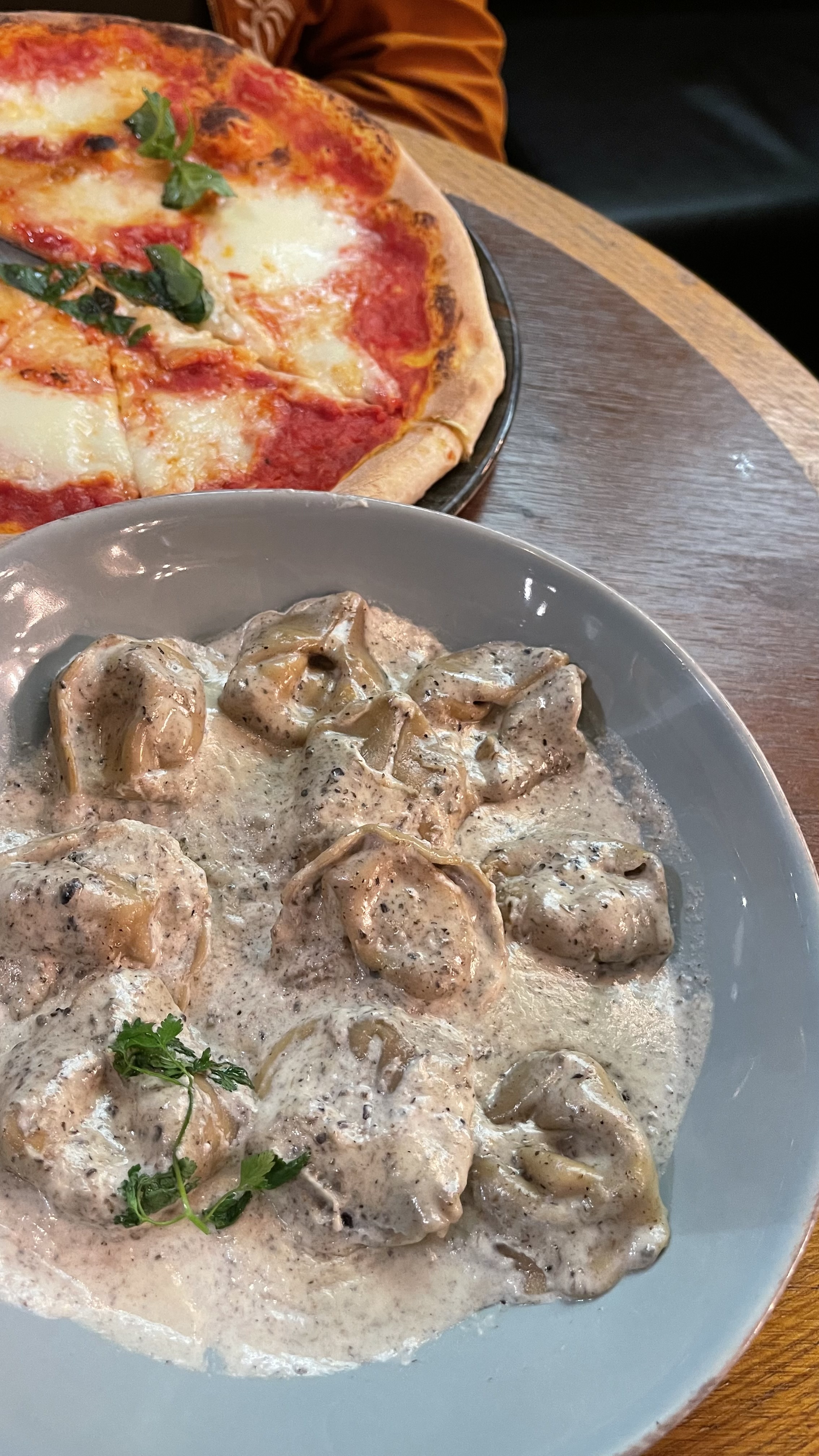 Je suis tombé sur cet endroit en cherchant un endroit pour déjeuner et je le recommande sans hésiter ! Les tortelli aux truffes doivent être l'une des meilleures pâtes, sinon la meilleure, que nous ayons jamais mangée. Sauce superbe ! La pizza était également très bonne, mais n'avait rien sur les pâtes.