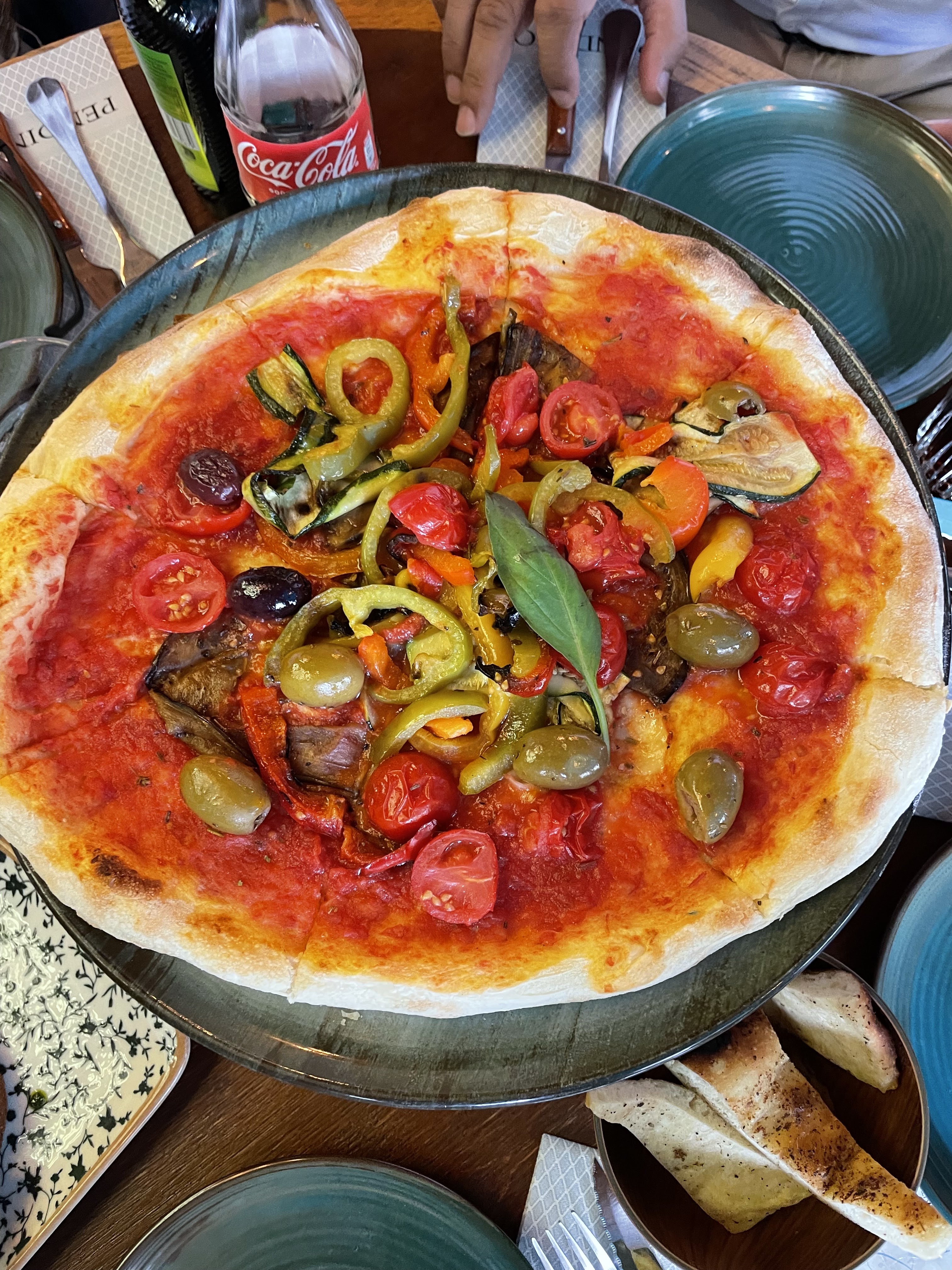 Je suis venu ici avec mon partenaire pendant la semaine, je me suis assis dehors, c'était très confortable. Le serveur était très gentil et rapide mais la pizza était liquide, il n'y avait presque aucune base de tomate et n'était pas cuite. Les pâtes étaient cependant assez bonnes mais je n'y retournerais pas en raison des prix élevés.