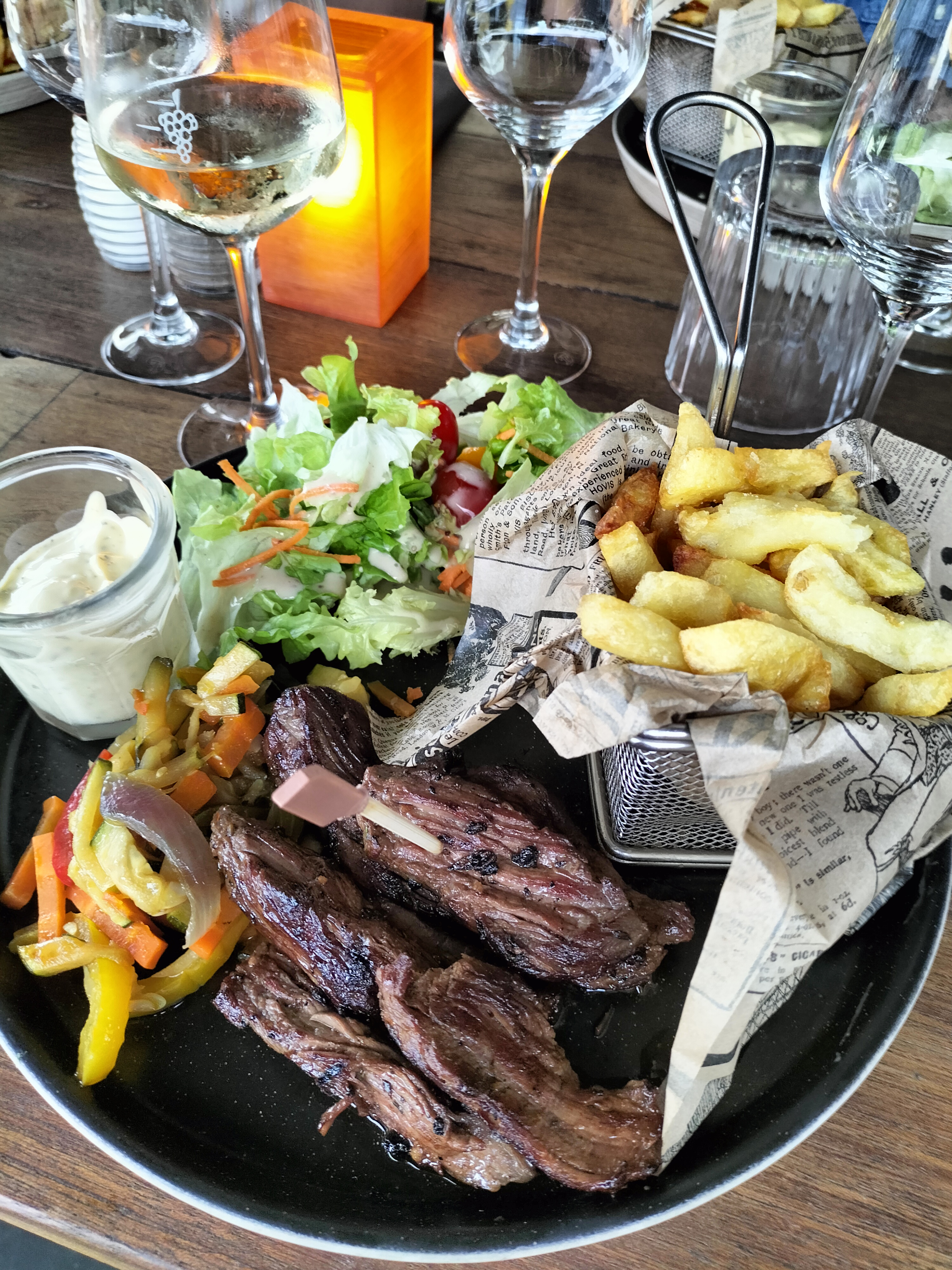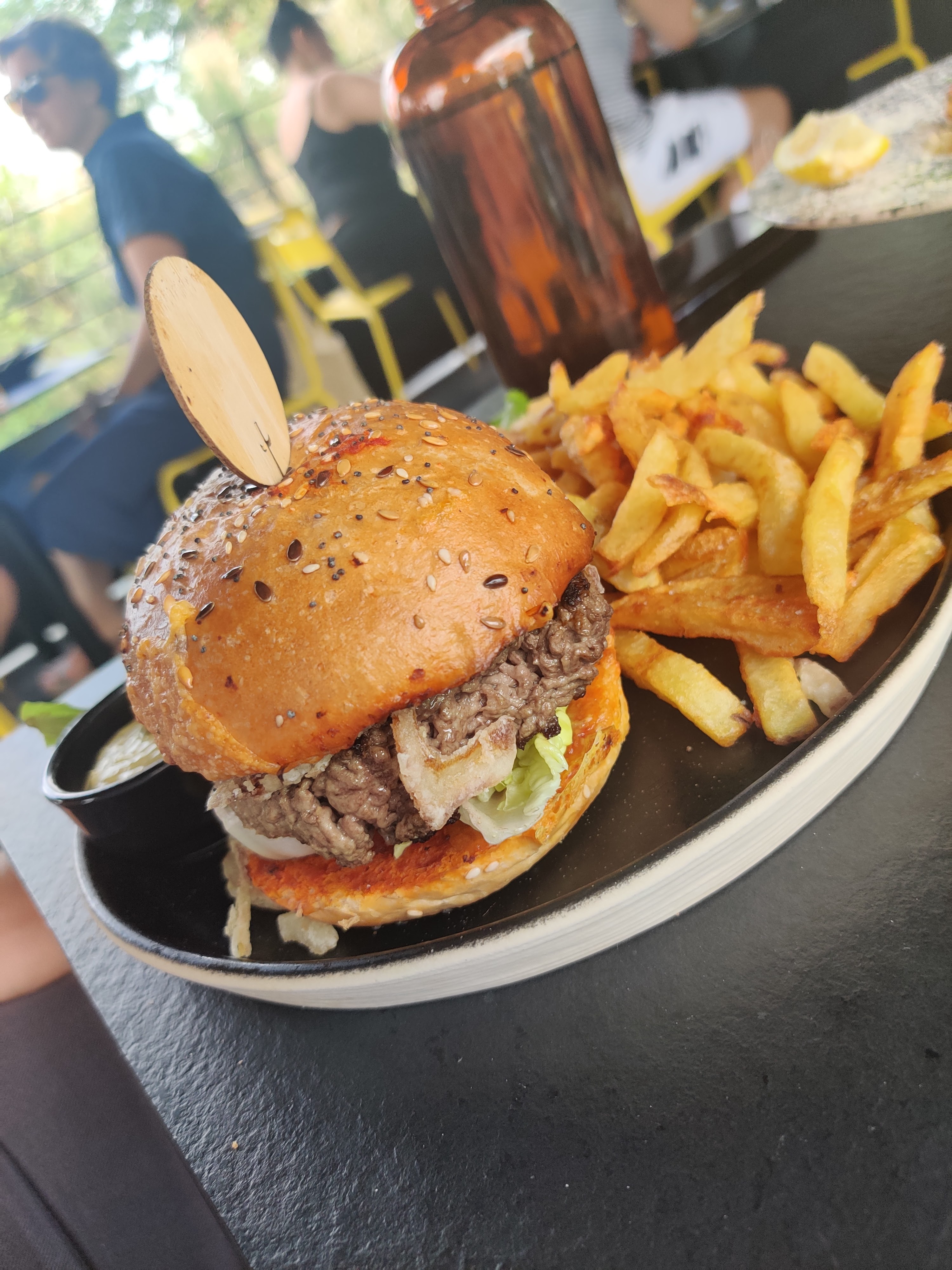 Bonjour à tous, Très beau cadre pour manger un morceau où prendre une planche apéro avec un petit verre en terrasse. Cependant le repas je suis déçu ! Risotto aux gambas j'avais l'impression que c'était plus des crevettes et vraiment beaucoup de citron dans l'assiette ! Le burger quand à lui rien d'exceptionnel très peu de fromage steak haché façon bouchère mais très sec ! Le pain était cependant bon. Bonne journée à tous.