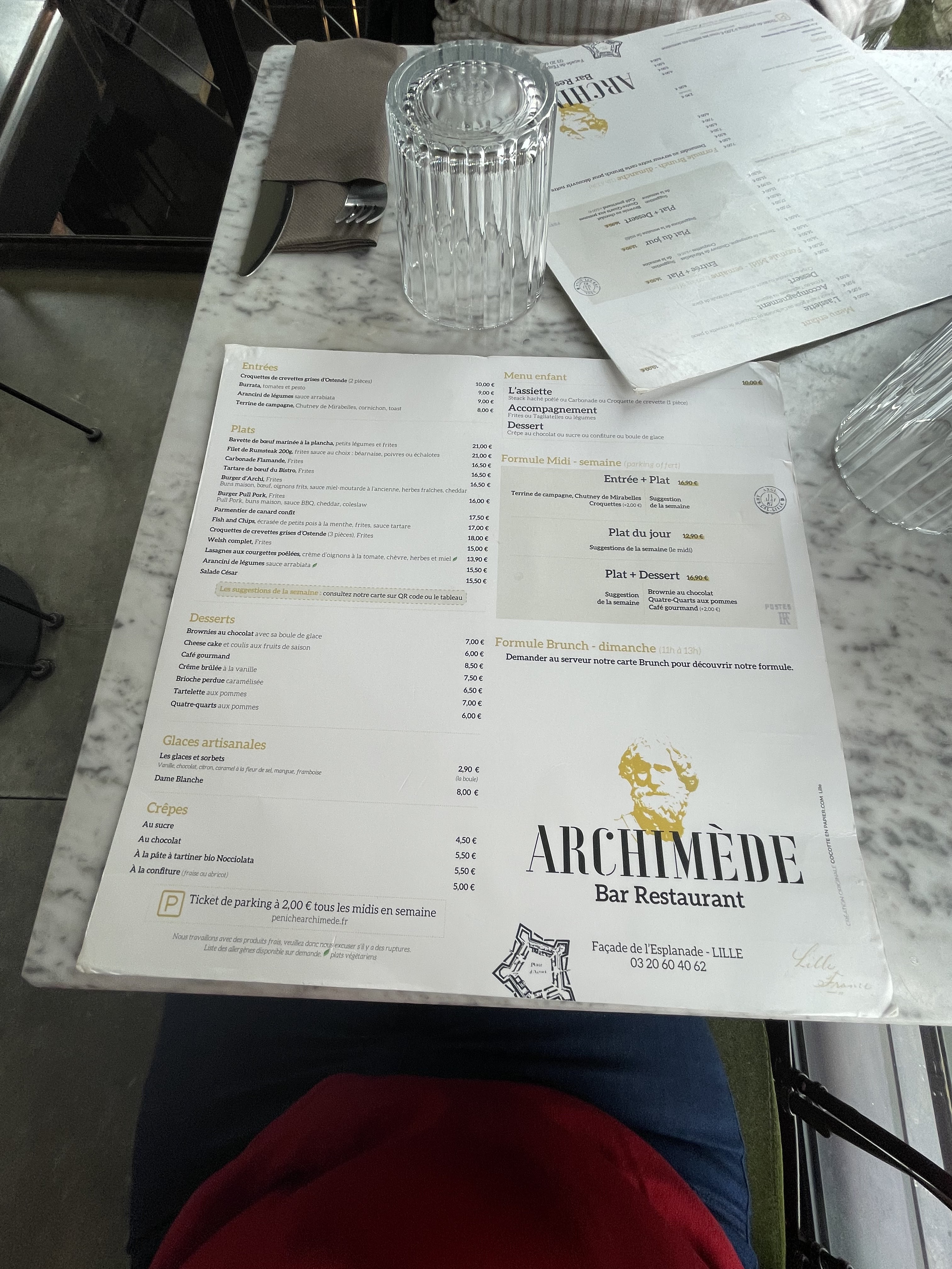 Un sans faute ! Service cuisine ambiance ! L’archimede est une adresse plus que recommandable ! Nous avons passé une soirée exceptionnelle ! Nous avons bien mangé ! Le service est irréprochable ! A ceux qui sont un peu critique ! Sur le paiement du parking ! Franchement n’importe quoi ! Je recommande a 200% cette adresse pour les personnes qui aiment le soient chill et sans chichi !