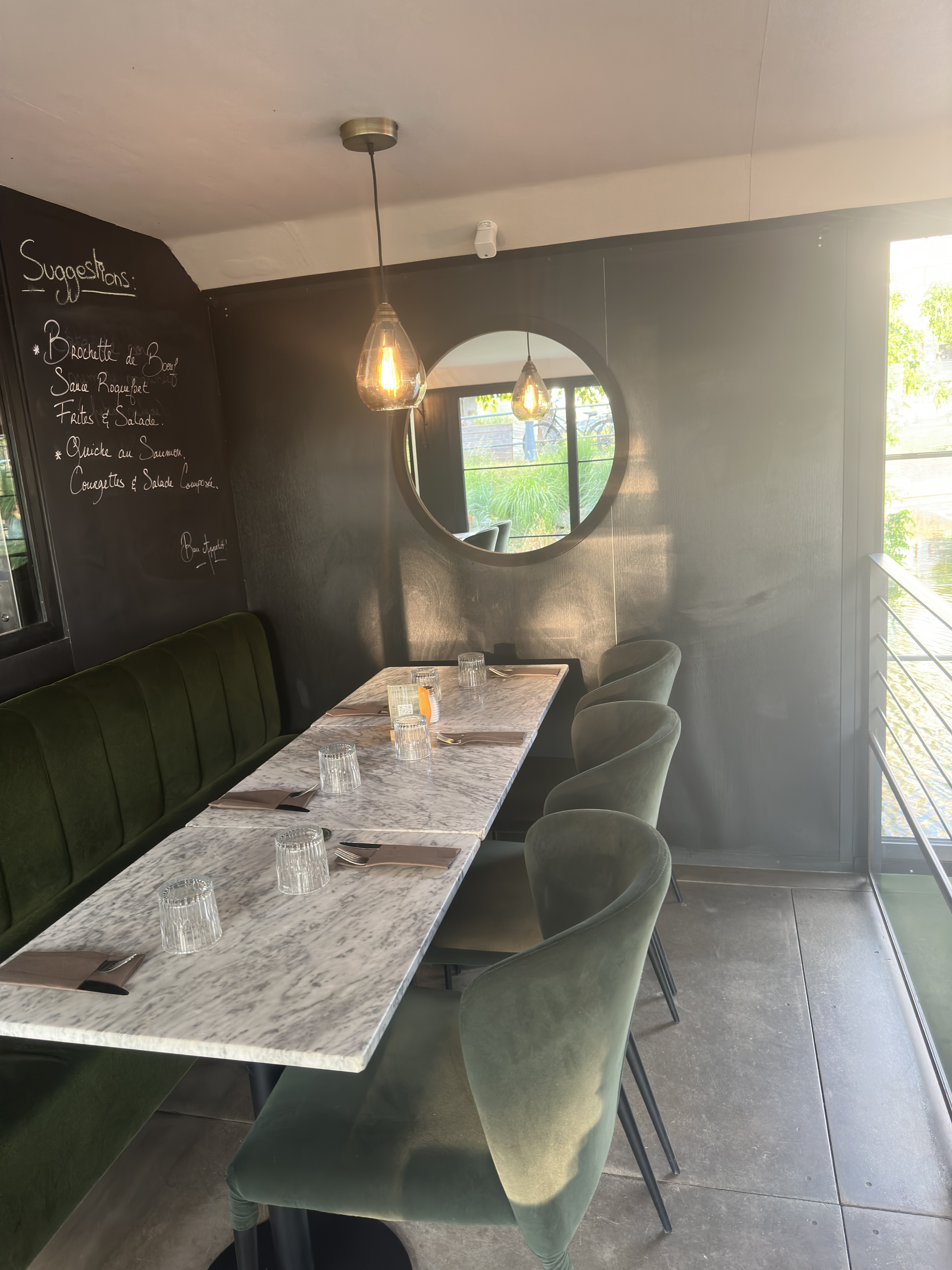 Équipe super sympa surtout Léa. Plats bons et cadre originale à bord d’une péniche. Desserts copieux addition correcte. Un lieu pour passer un agréable moment