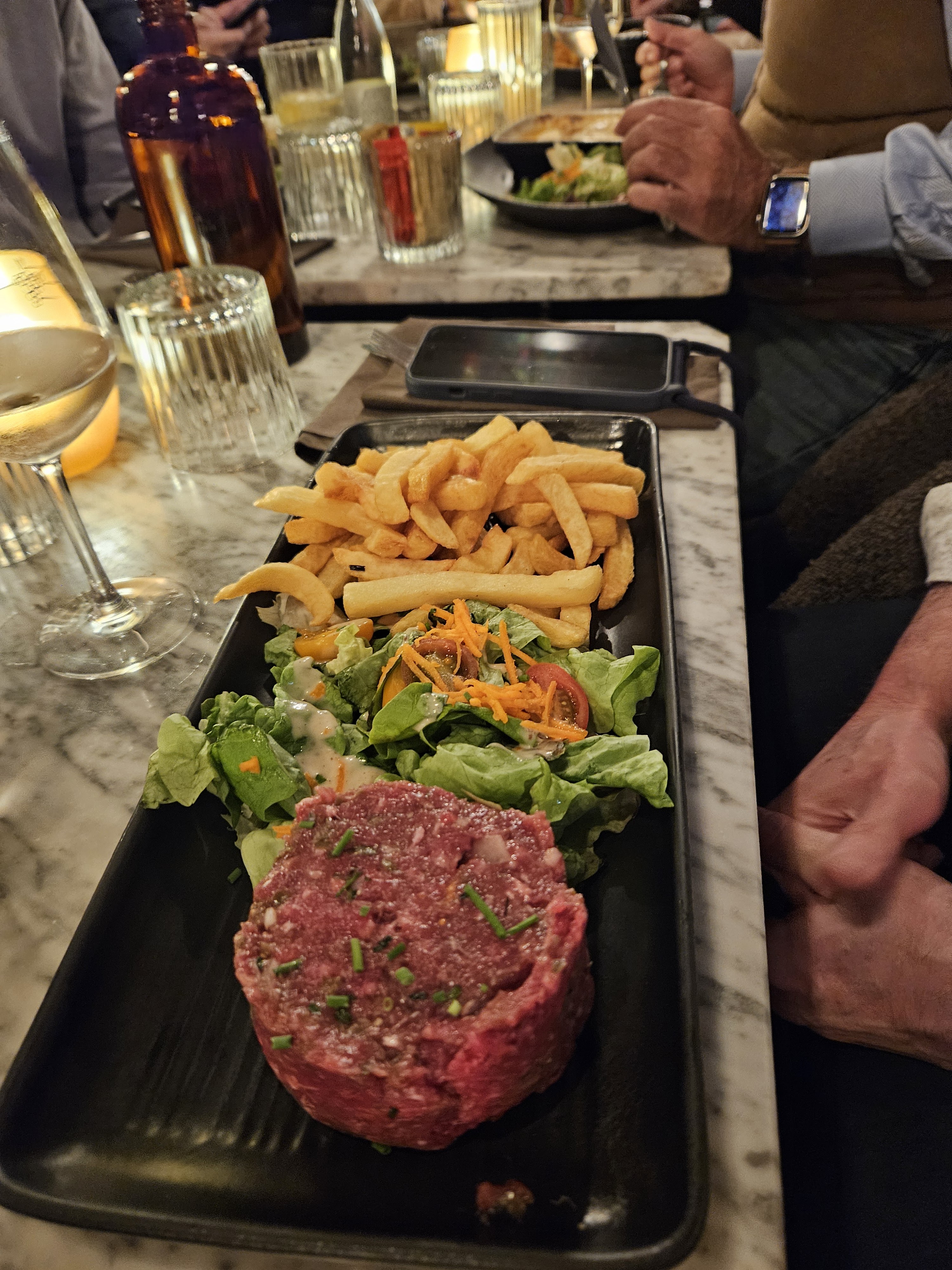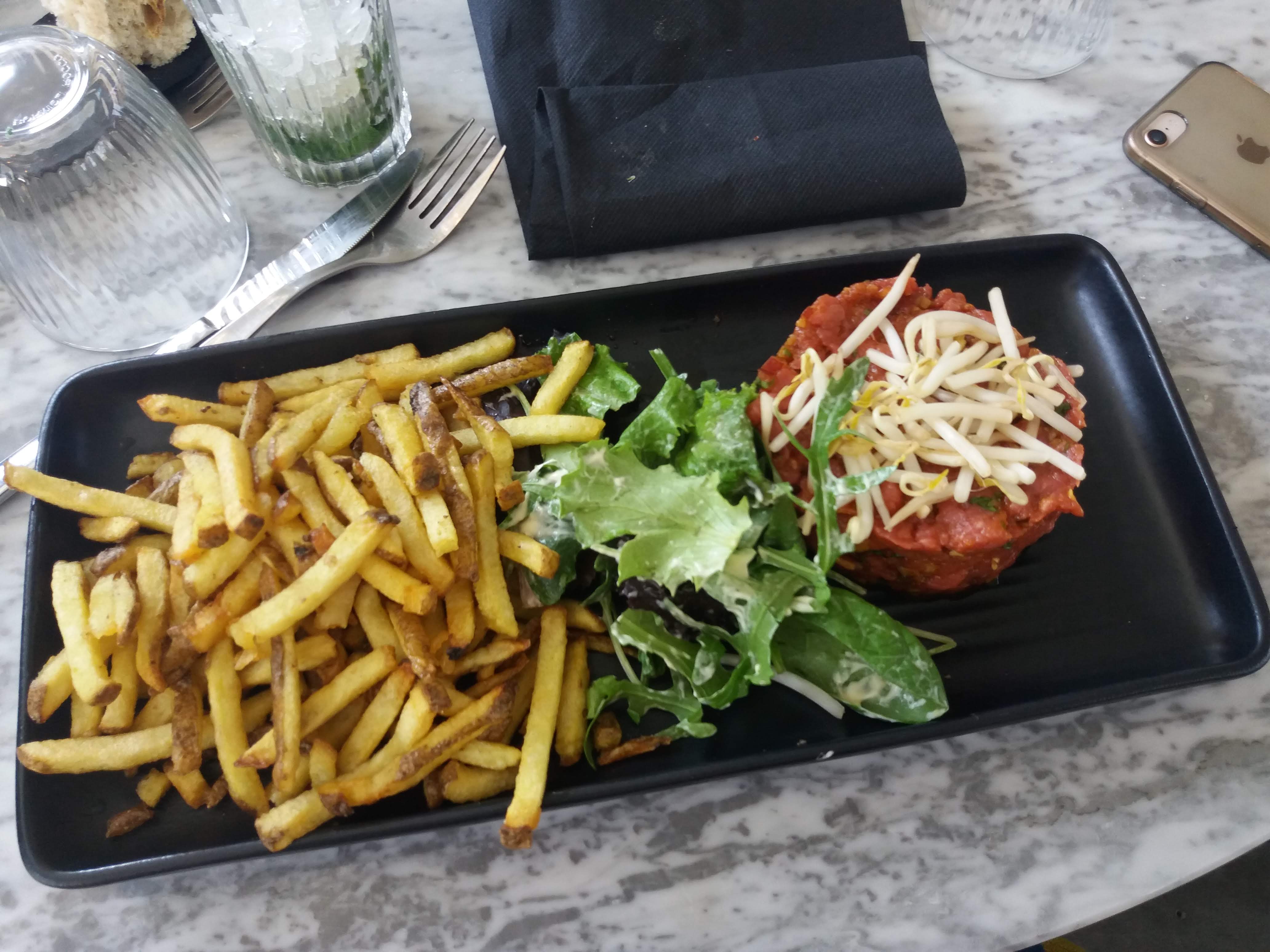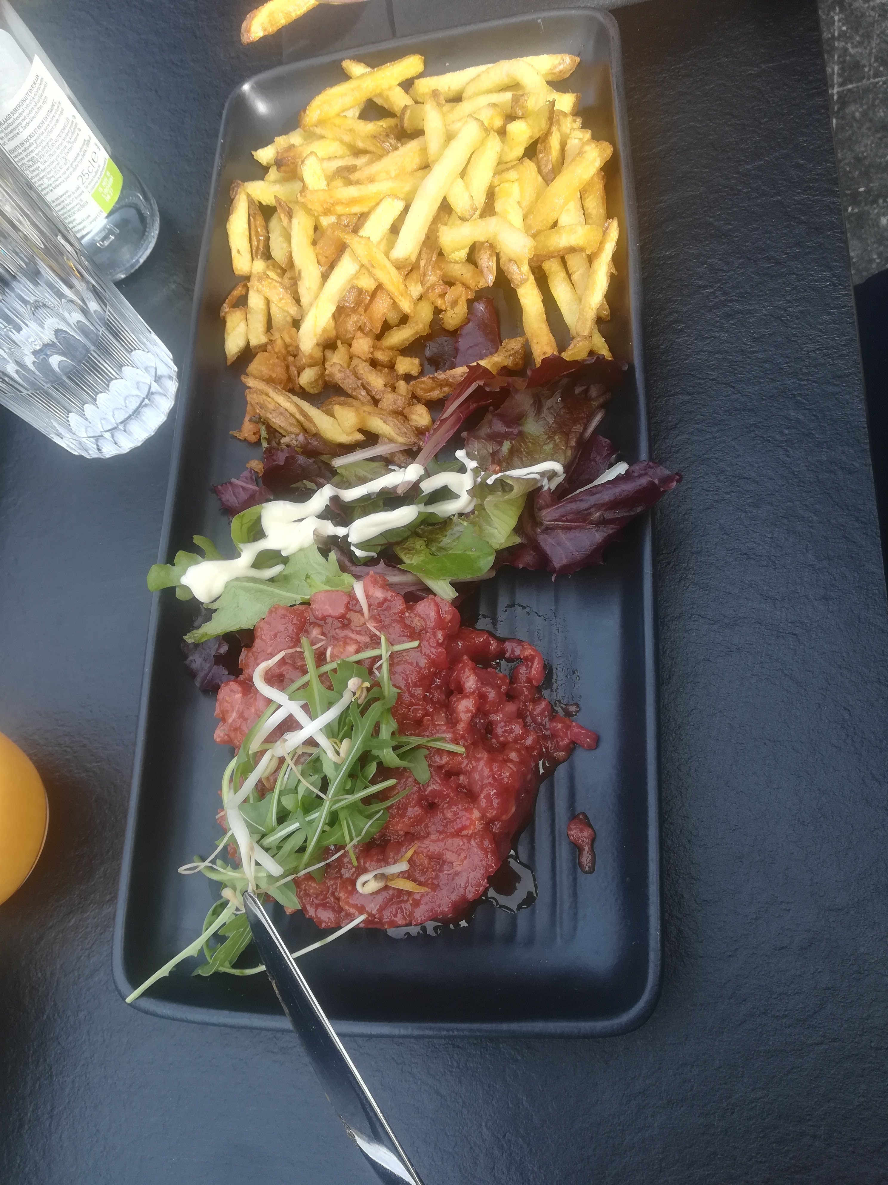 Très déçue... Malgré une atmosphère et des serveurs sympas, j'ai été très déçue de mon plat. Un tartare de boeuf d'une couleur douteuse 🤔. Rien à voir avec la photo du menu et on ne savait pas me répondre sur la recette... Apparemment c'était normal. J'ai tout de même goûté mais un goût de vinaigre très prononcé et trempé d'eau en dessous. Je n'ai pas pu le manger et aucun geste n'a été fait. Je déconseille donc ce plat.