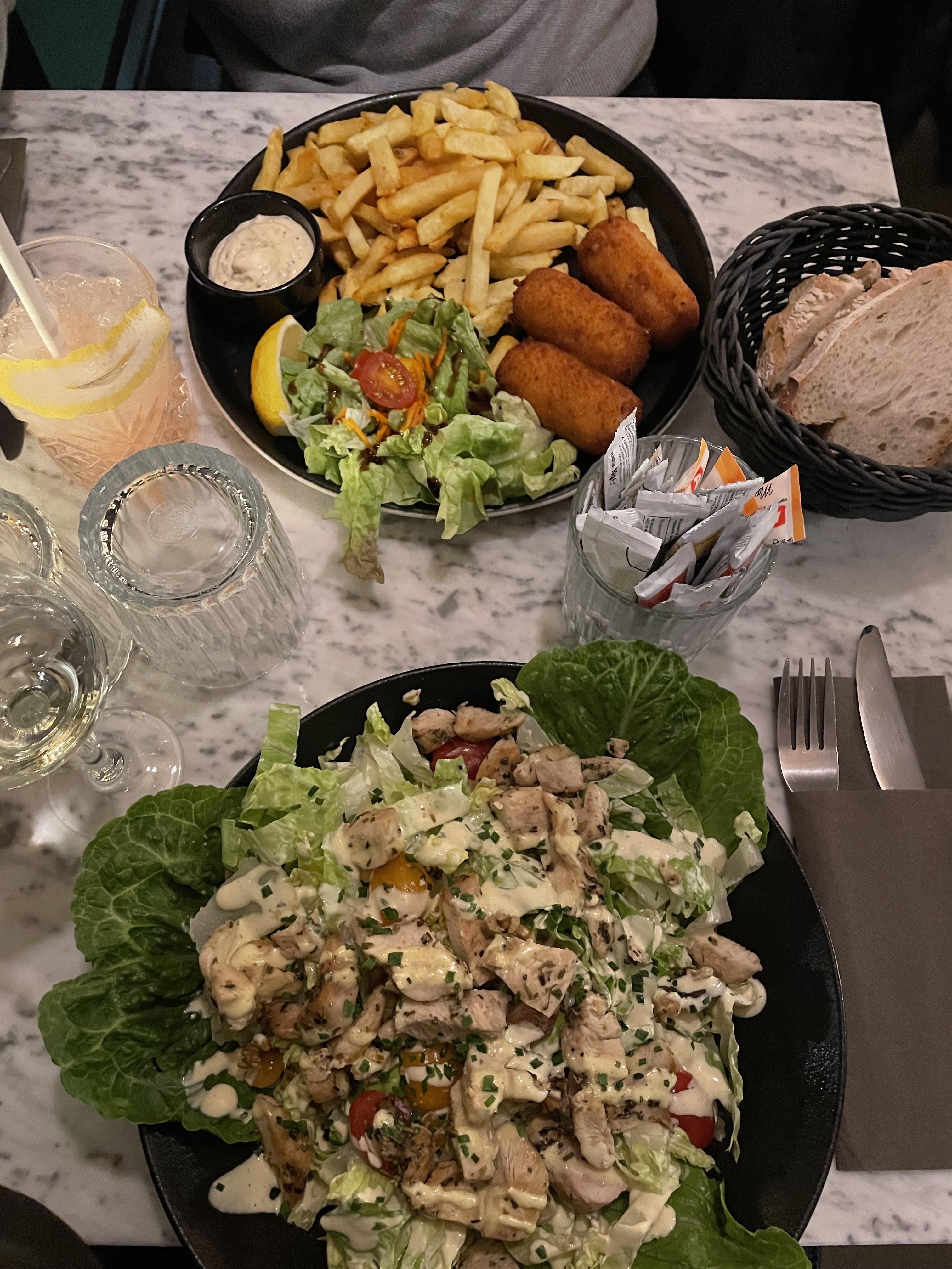 Endroit agréable et paisible. Nous étions 8 à table pour fêter un événement, nous avons pris un cocktail (très bon 😉) mais le soucis c’est que n’avons pas pu le déguster ! Nos plats sont arrivés en même temps alors que la serveuse nous avait demandé si on voulait attendre un peu avant de lancer les plats 🤔, dommage… donc nous avons mangé avec notre cocktail au lieu d’un verre de vin ou bière ( c’est pas terrible) et n’avons pas pris dessert, de peur de l’avoir trop vite également et à vrai dire ça nous a coupé l’appétit !! Cela dit, tous Les plats étaient bons 👍