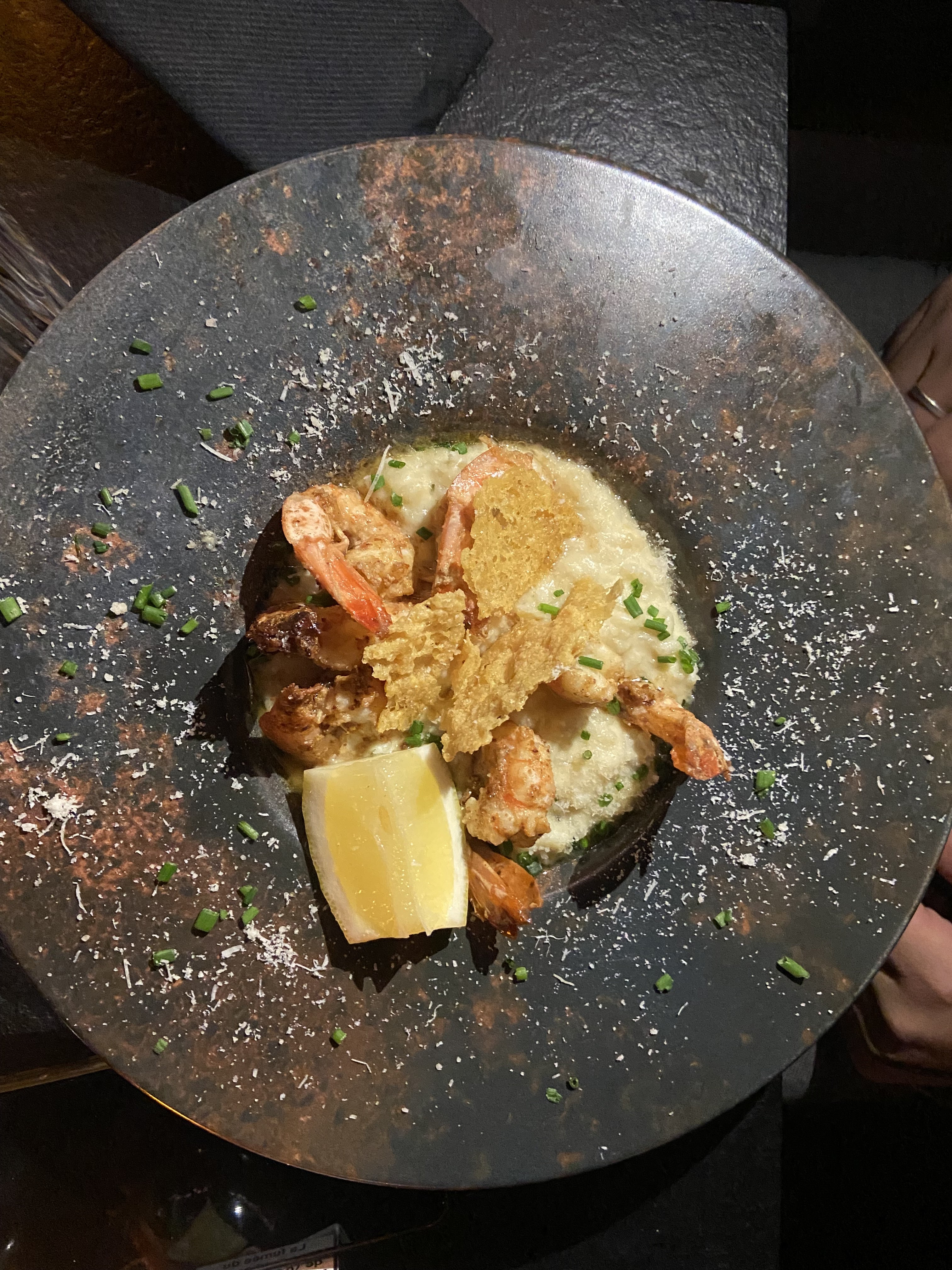 Service plutôt lent concernant les boissons. La limonade avait plus un goût d'eau gazeuse. Concernant les plats, ceux ci ne mettent pas trop de temps à arriver. Je vois mes amis se faire servir avec des assiettes copieuses qui me donnent envie. Mon plat arrive, le risotto avec gambas, et là déception : très petite quantité ! Je pense que même les entrées sont plus copieuses. Pour 19 € je m'attendais à beaucoup mieux, ne serais ce que sur la quantité de riz qui est vraiment MINIME. Tres déçue de ce plat quand on voit les autres qui sont pourtant beaucoup moins chers et mieux servis ! Aucune serviette ou rince doigt à disposition pour nous essuyer après décortication des gambas, nous avons dû attendre qu'un serveur passe pour lui demander. Enfin le dessert, de nouveau beaucoup d'attente pour se faire servir. Concernant le goût, la cuisine est vraiment très bonne autant le plat que le dessert ce qui est même frustrant car vu la quantité du plat on reste forcément sur notre faim et vu le prix de ce plat on se dit que le rapport / qualité prix n'est pas correct le concernant. Après l'avoir notifié en étant à peine écoutés, aucun geste commercial même envers ma copine qui fêtait pourtant son anniversaire. Dommage car très bonne cuisine, il faut juste ne pas prendre le risotto avec gambas