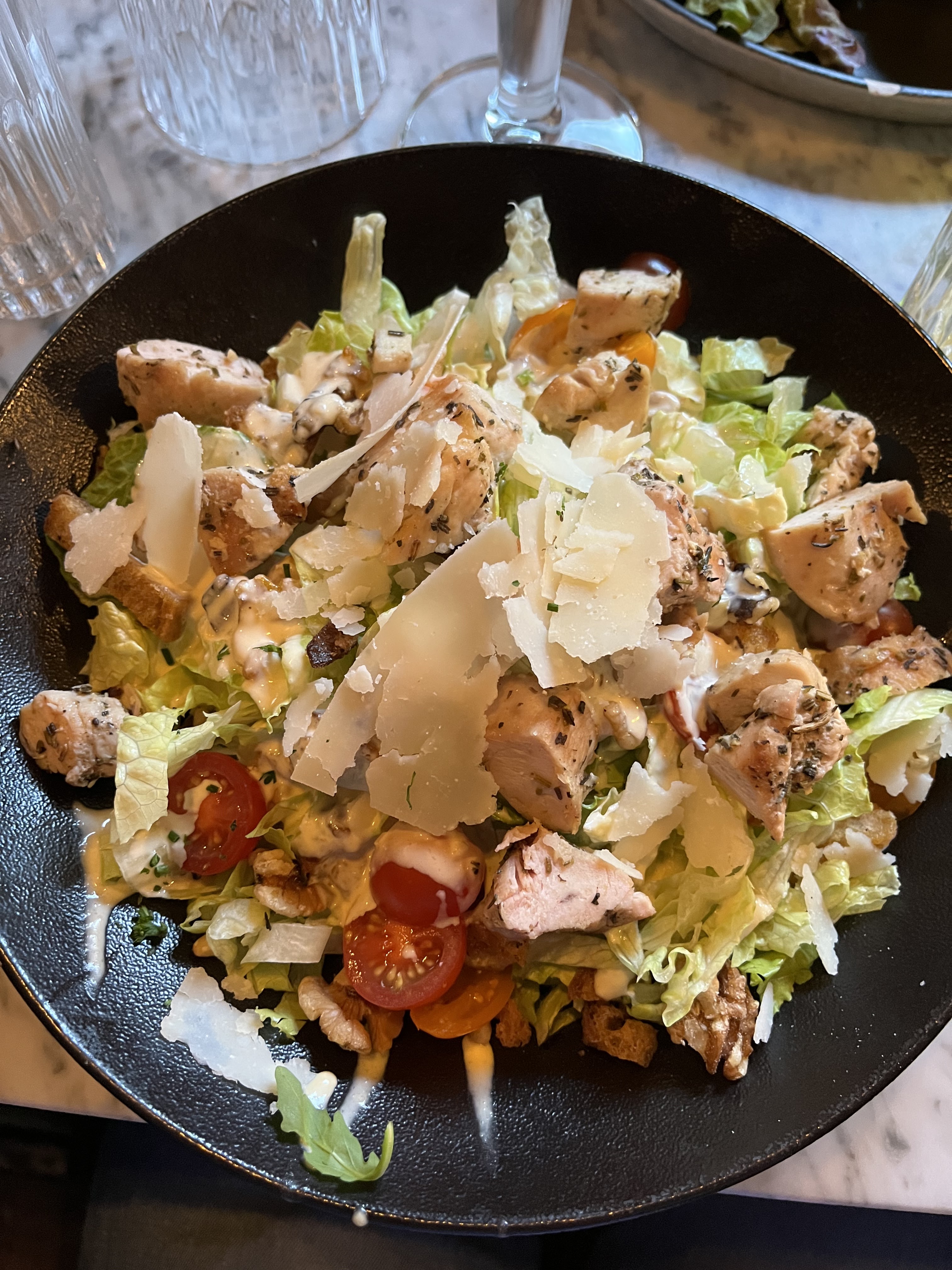 Lieu très agréable et dog friendly ( nous avons pu manger en terrasse avec notre chien qui a reçu de l’eau). Les assiettes sont généreuses et délicieuses, et ils ont adapté une salade du menu en version végétarien « rien que pour moi » c’est très appréciable