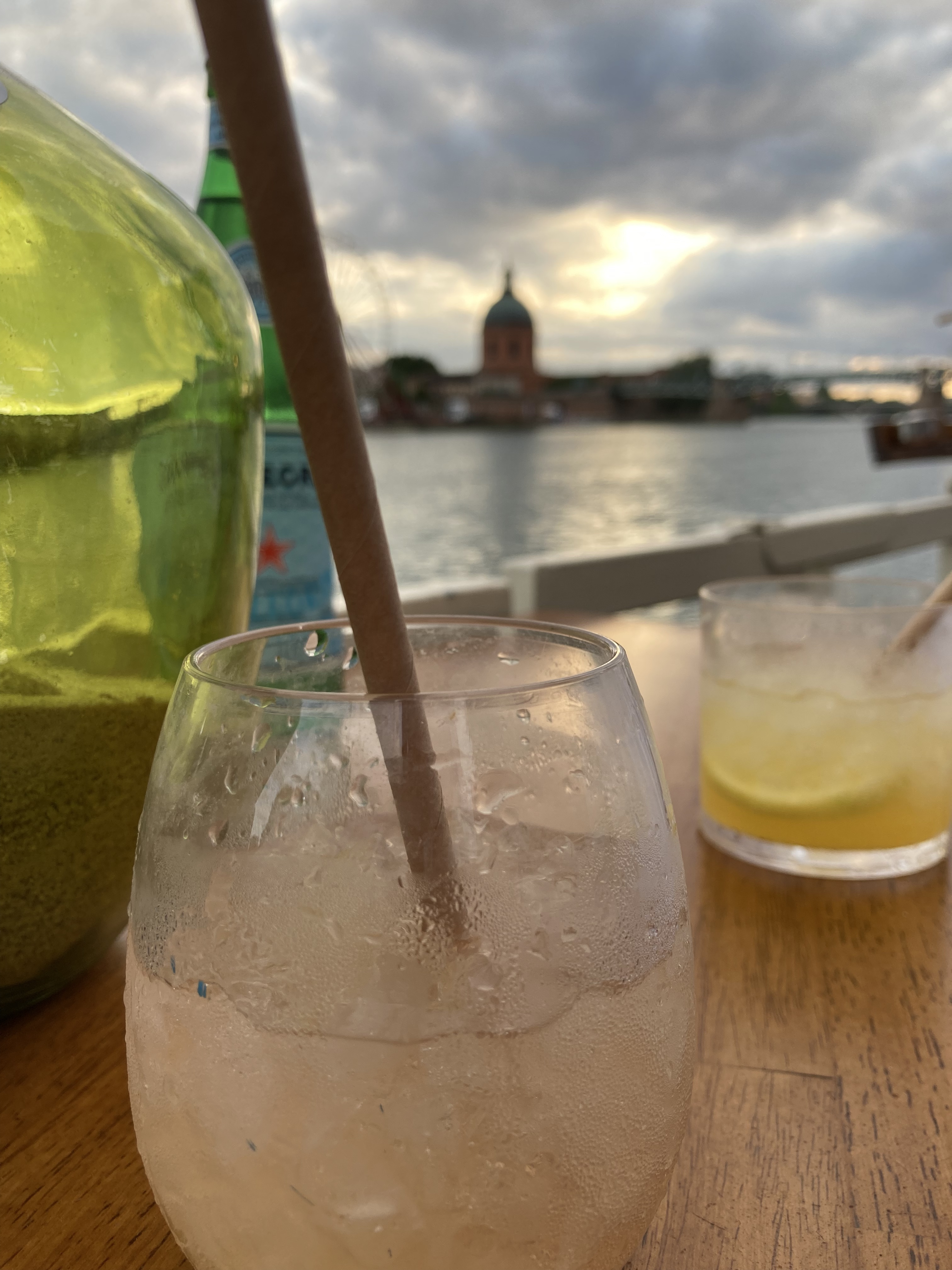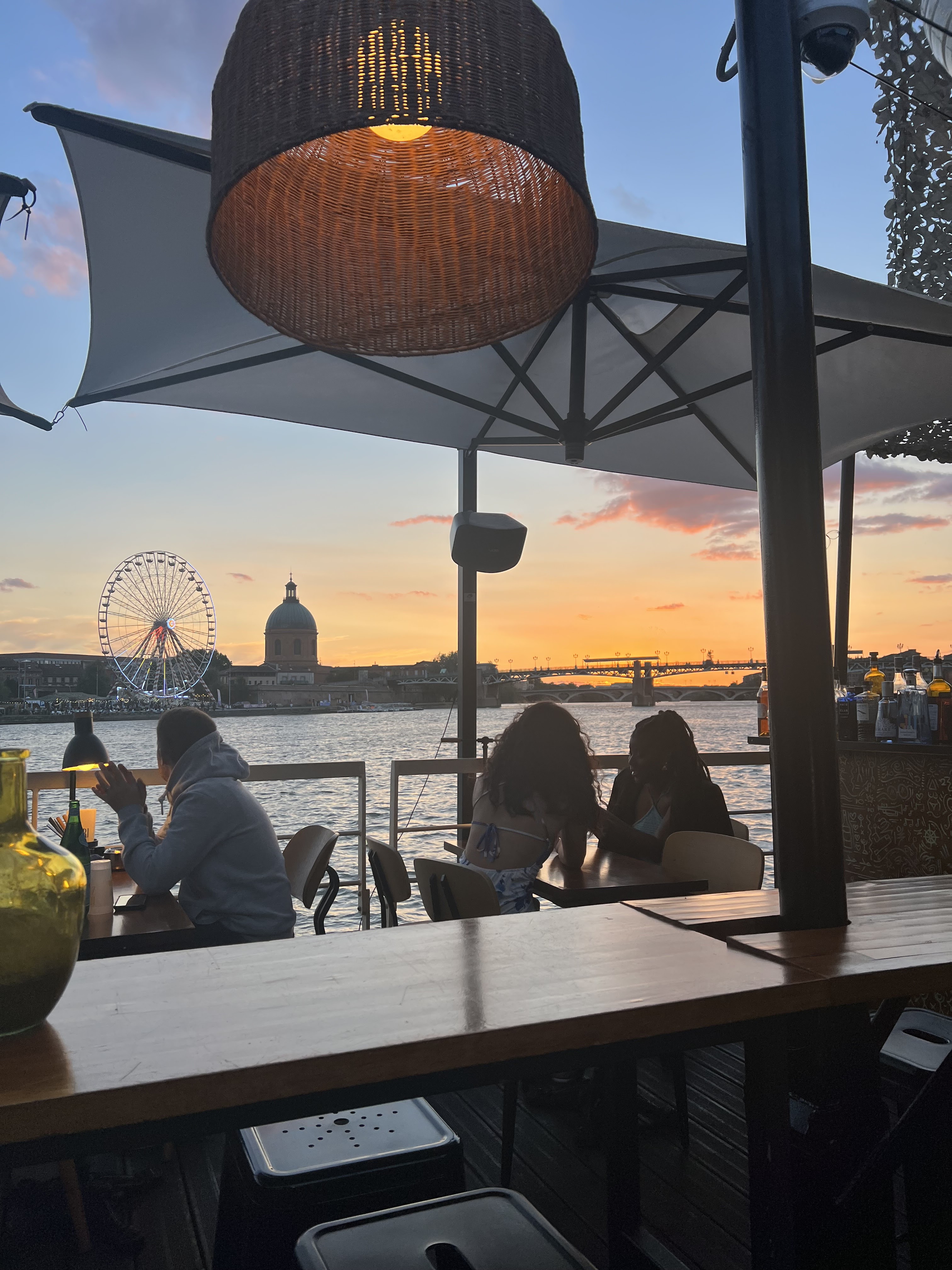 Dîner avec couché de soleil sur la Garonne très très cool ! Et bon petit repas à la clé en couple. Je recommande