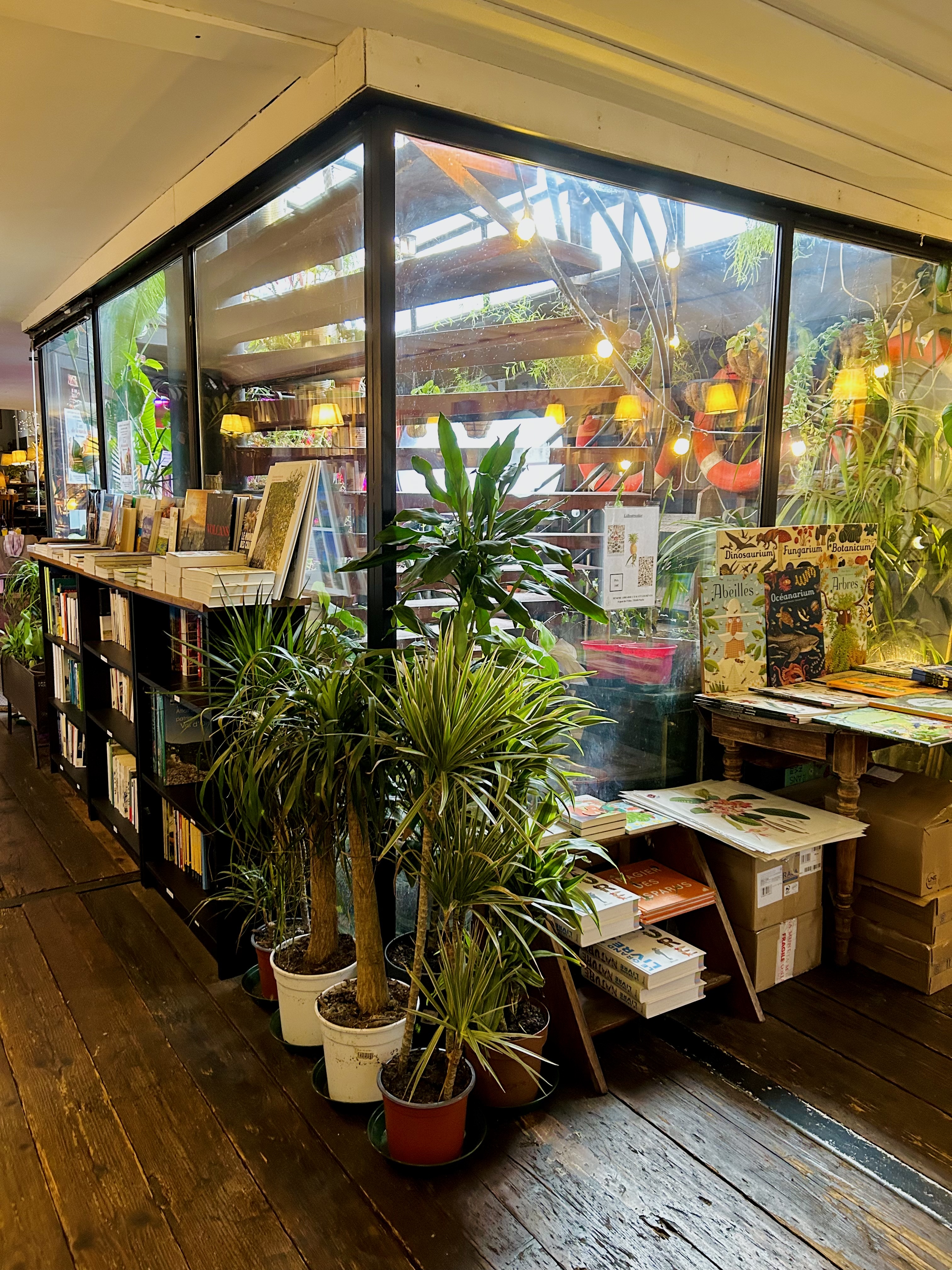 Une pépite! une librairie pour les amoureux du vivant. De plus de magnifiques plantes habille cette péniche librairie comportant également un bar où l'on peut directement se délecter de ses achats en dégustant un bon verre !