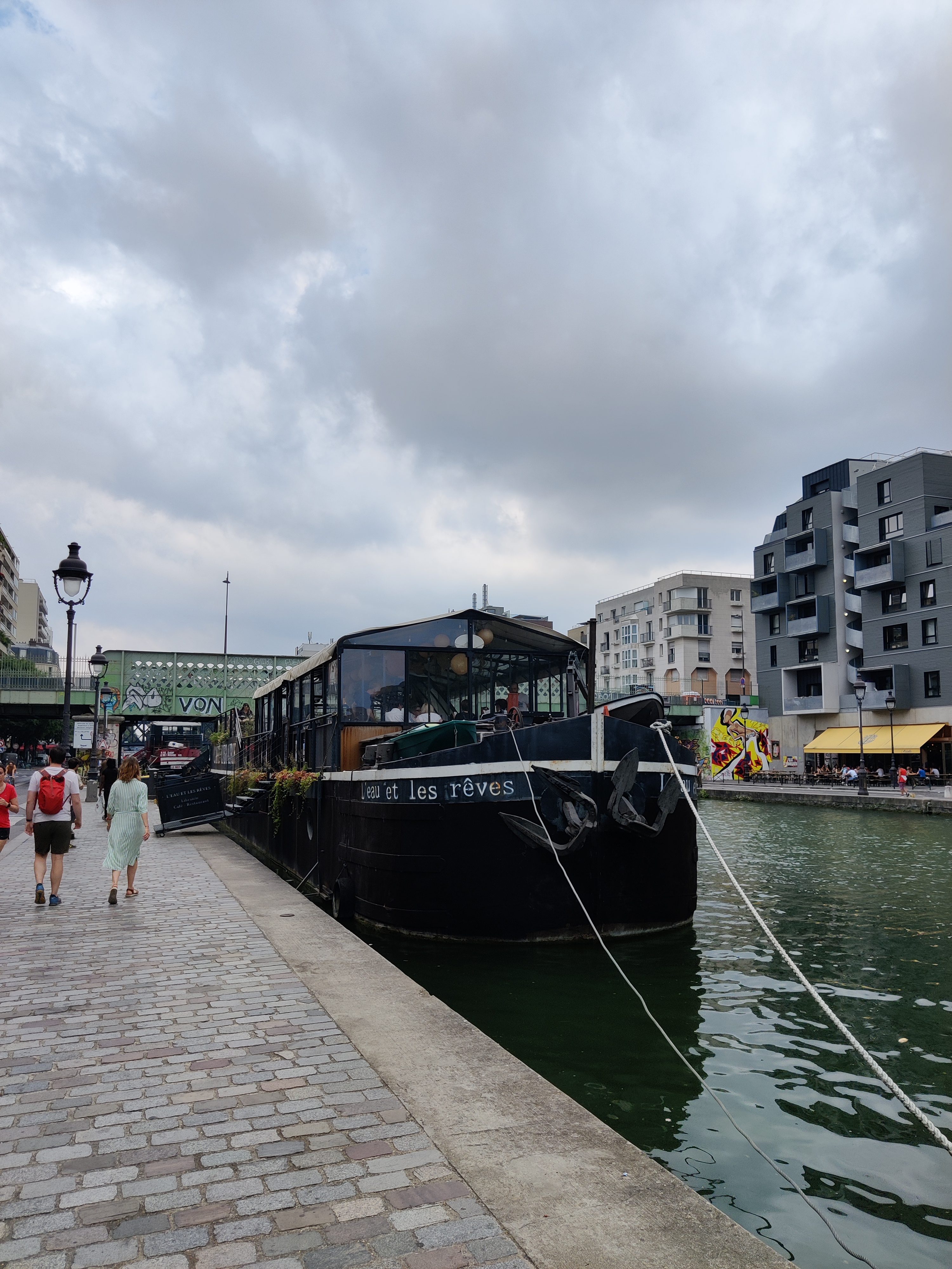 Ambiance confortable et bienvenue. situation idyllique au canal de l'Ourcq. Idéal pour prendre un verre à l'extérieur en fin de soirée.