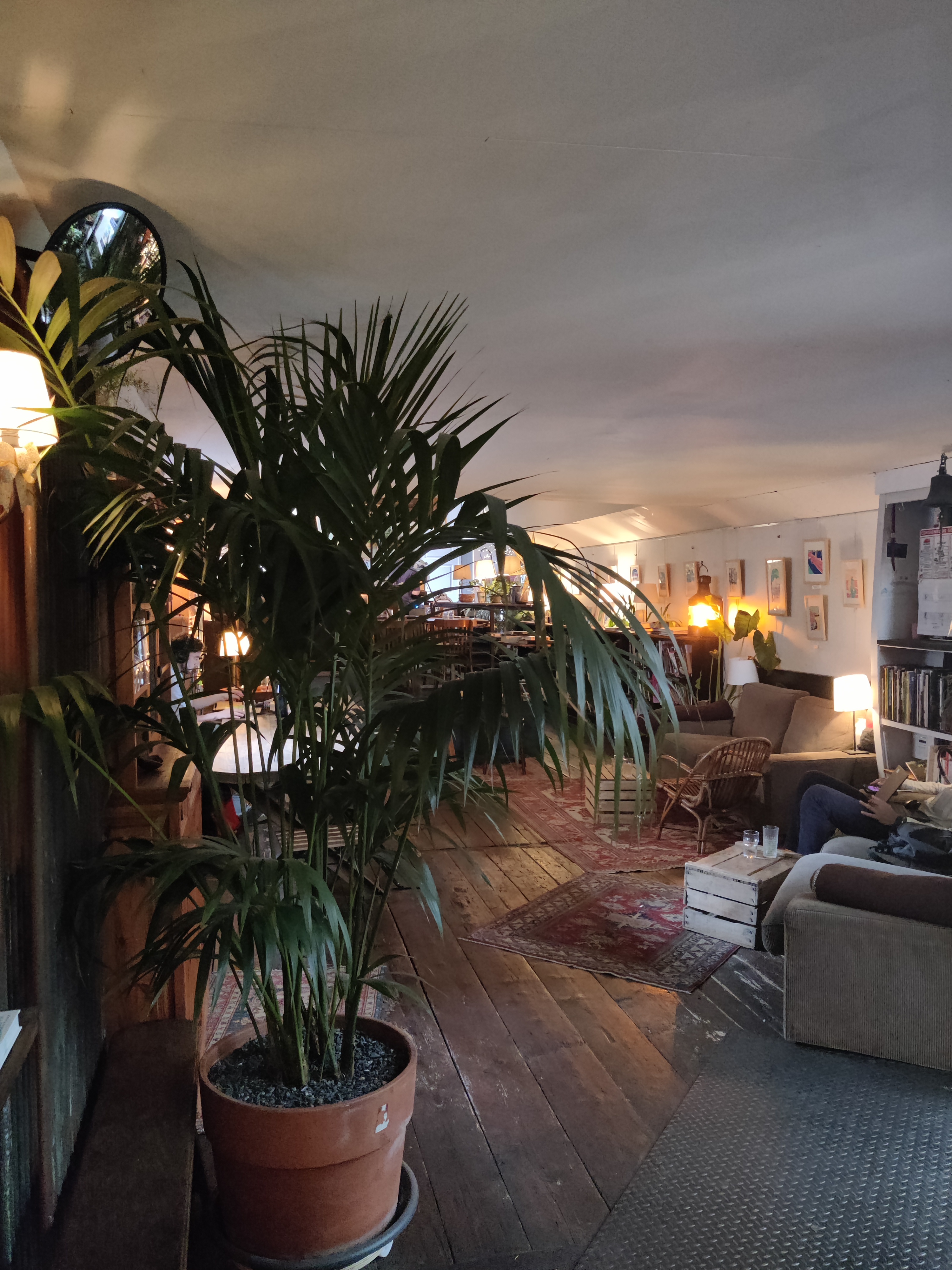Ambiance très sympa avec des plantes et des livres. J'adorerais y aller plus tôt un jour pour pouvoir trouver une place et prendre un café. Très complet un dimanche et tout le monde semblait s'amuser