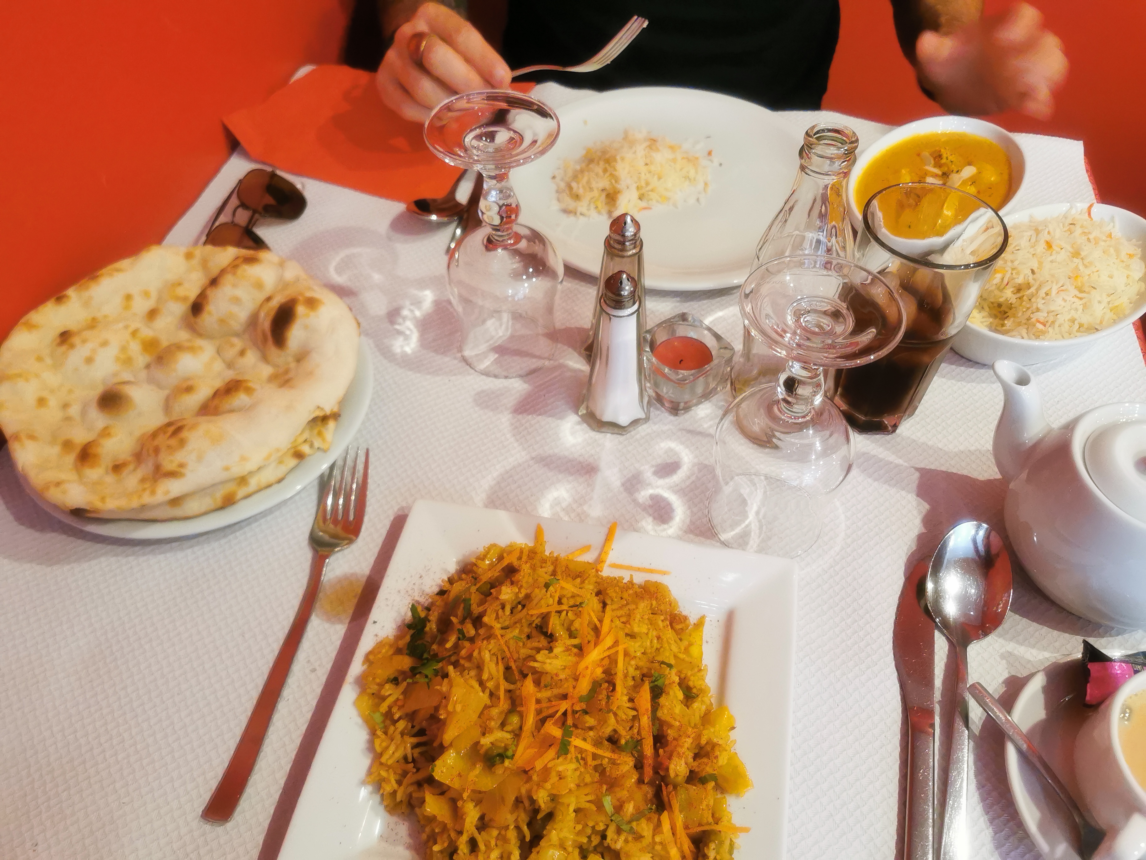 Un merveilleux voyage gustatif. La salle est très propre, d'un contraste rouge et blanc sobre mais très vivant. Le staff est souriant et avenant. Pour en venir à ce qui nous intéresse le plus, je me suis laissé tenté par le naan fruit confit et fromage ainsi que le riz au fruit confit. Un délice auquel je ne m'attendais pas. Le poulet korma qui accompagnait était aussi excellent , les épices bien dosées légèrement relevé. On ne présente plus le lassi à la rose, tout aussi bon. Enfin la glace à la rose en dessert finissait ce repas copieux d'une dernière touche de rêve. Je recommande à 100%.