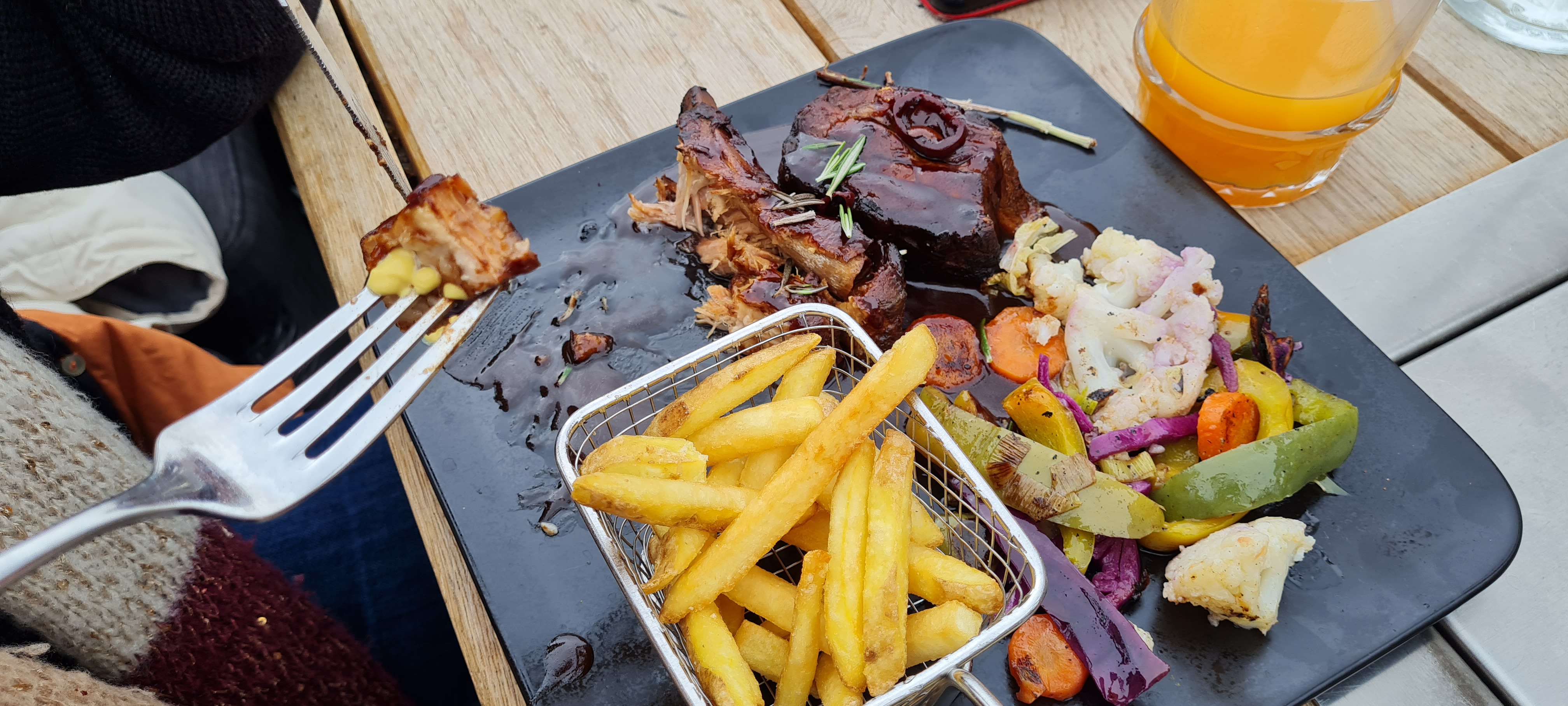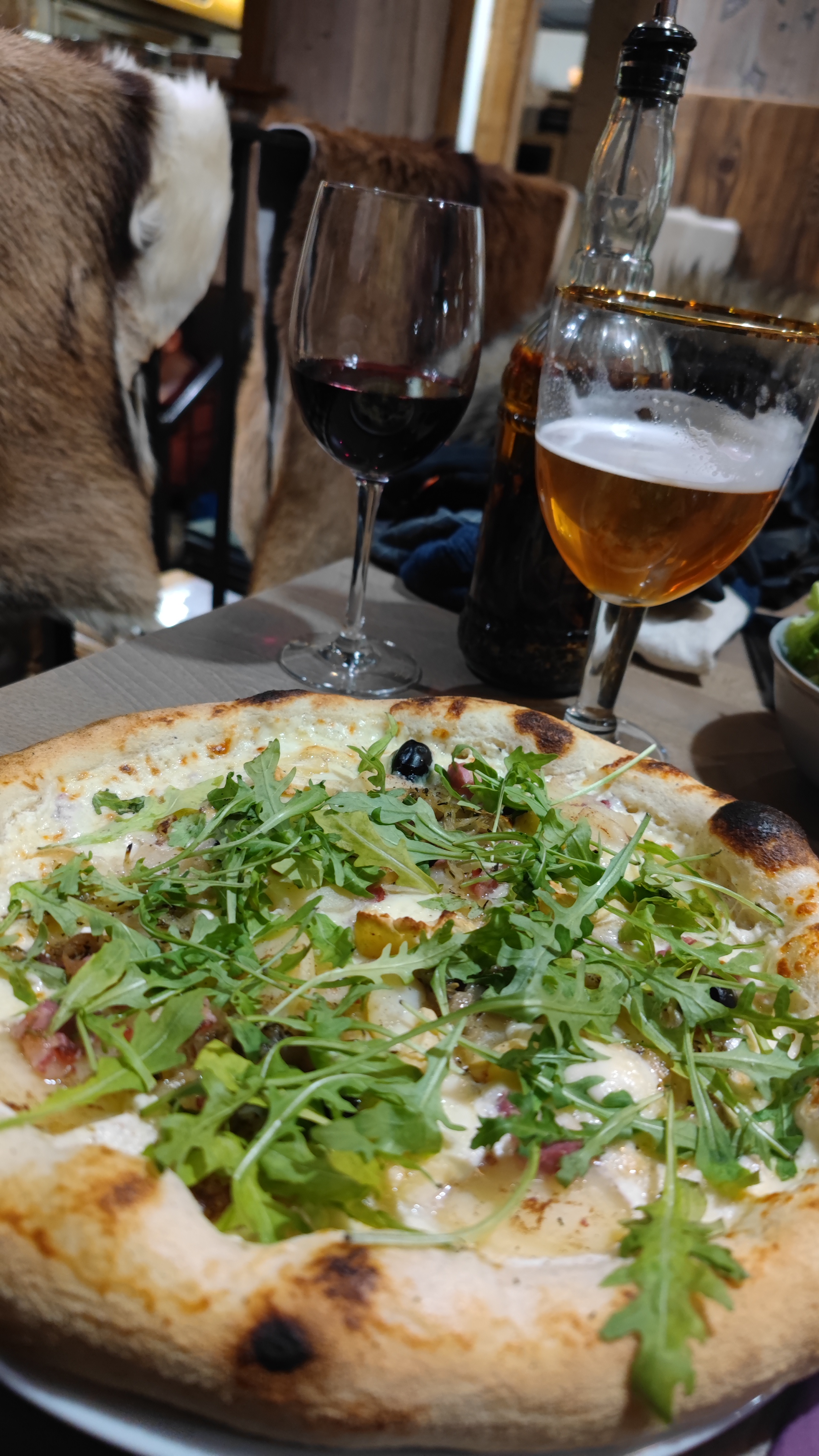 Bonne nourriture savoureuse et vin rouge! Le service était correct, mais je pense qu'il faut faire attention à la sauce chili ou peut-être à la calzone. Comme mon estomac n'était pas d'accord le lendemain matin... Dans l'ensemble, c'est un bon restaurant alpin français.