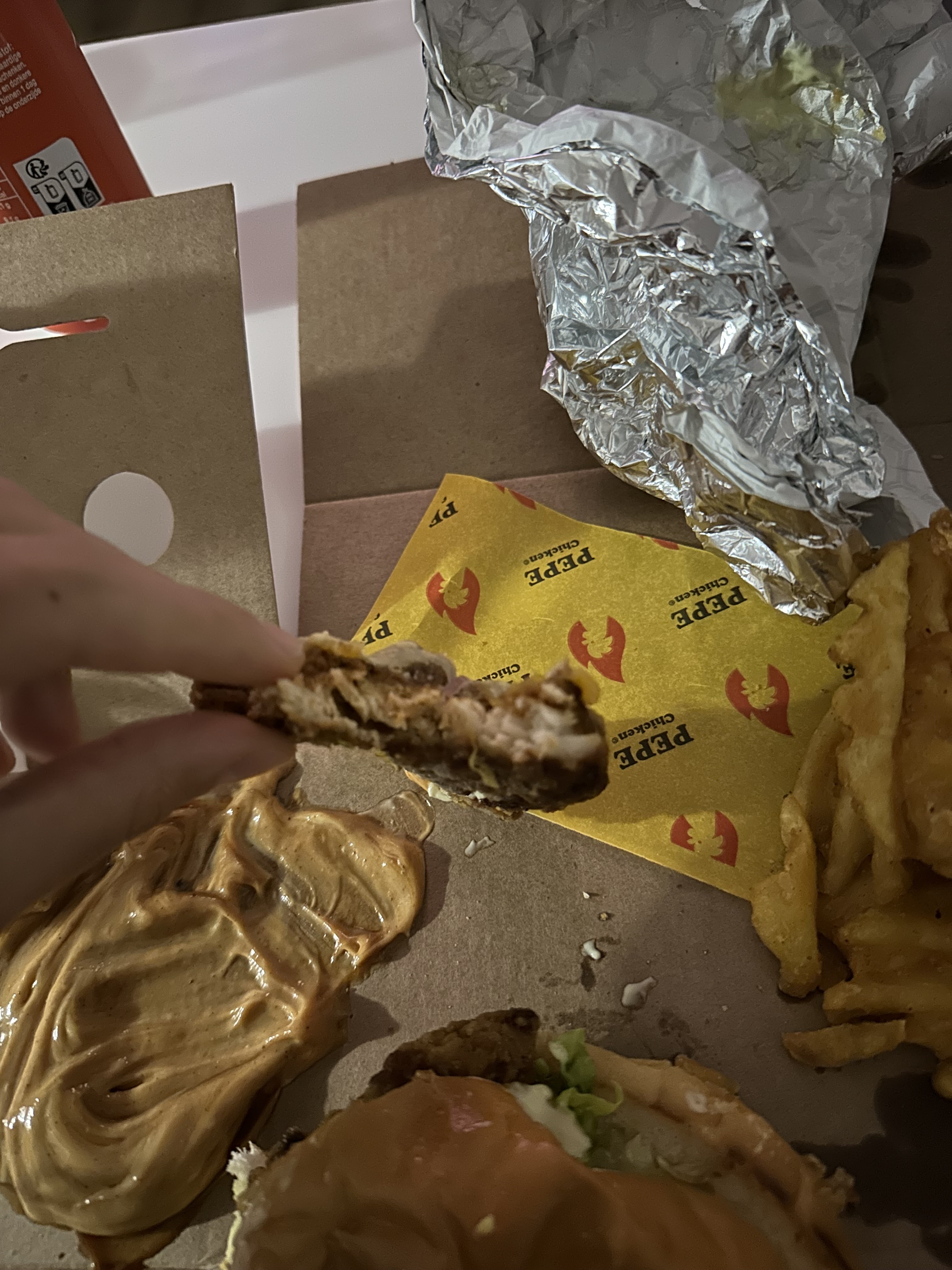 Première expérience pour moi chez pepe chiken et croyez moi je vien de loin pour essayer haha (Belgique) Mais je trouve que c'est très chère pour ce que c'est et ce que ça vaut.. C'est pas parce que tu blindes le poulets de chapelure qu il en devient délicieux 😅