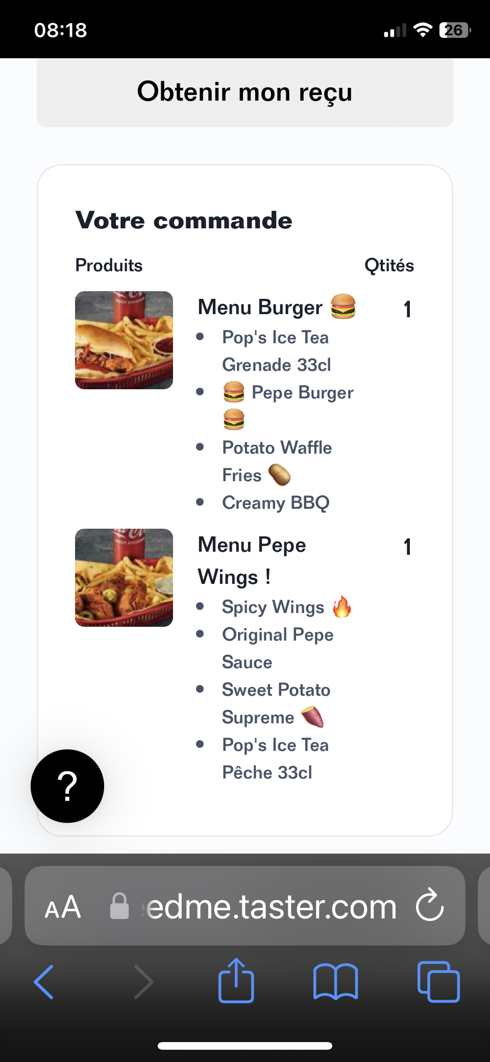 Je suis assez dégoûté de mon expérience :( 28€ au total avec un menu + 4 gros tenders. tout est arrivé très mou et tiède, le burger brûlant (merci l'alu) mais très très mou :/ ! En vrai si je dois noter uniquement les produits... Bon burger pepe mais j'ai pas eu tant de sauce donc un peu banal sauf pour le poulet qui est en quantité ! frite bonne et grande ! poulet ok car bon rapport viande chapelure.. le goût est bon mais pas non plus révolutionnaire, je trouve. sauce pepe très bonne ! rapport qualité prix correct + quantité ok tout de même. j'ai vu pire honnêtement, sauf que je recommanderai plus car mon adresse est pas adapté (derrière la mairie de Vdascq) tout était tiède et ultra mou... le poulet ressemblait limite à de la gelée niveau texture :( c'est la faute la livraison ok mais pour 28€ je suis refroidi mais content d'avoir essayé