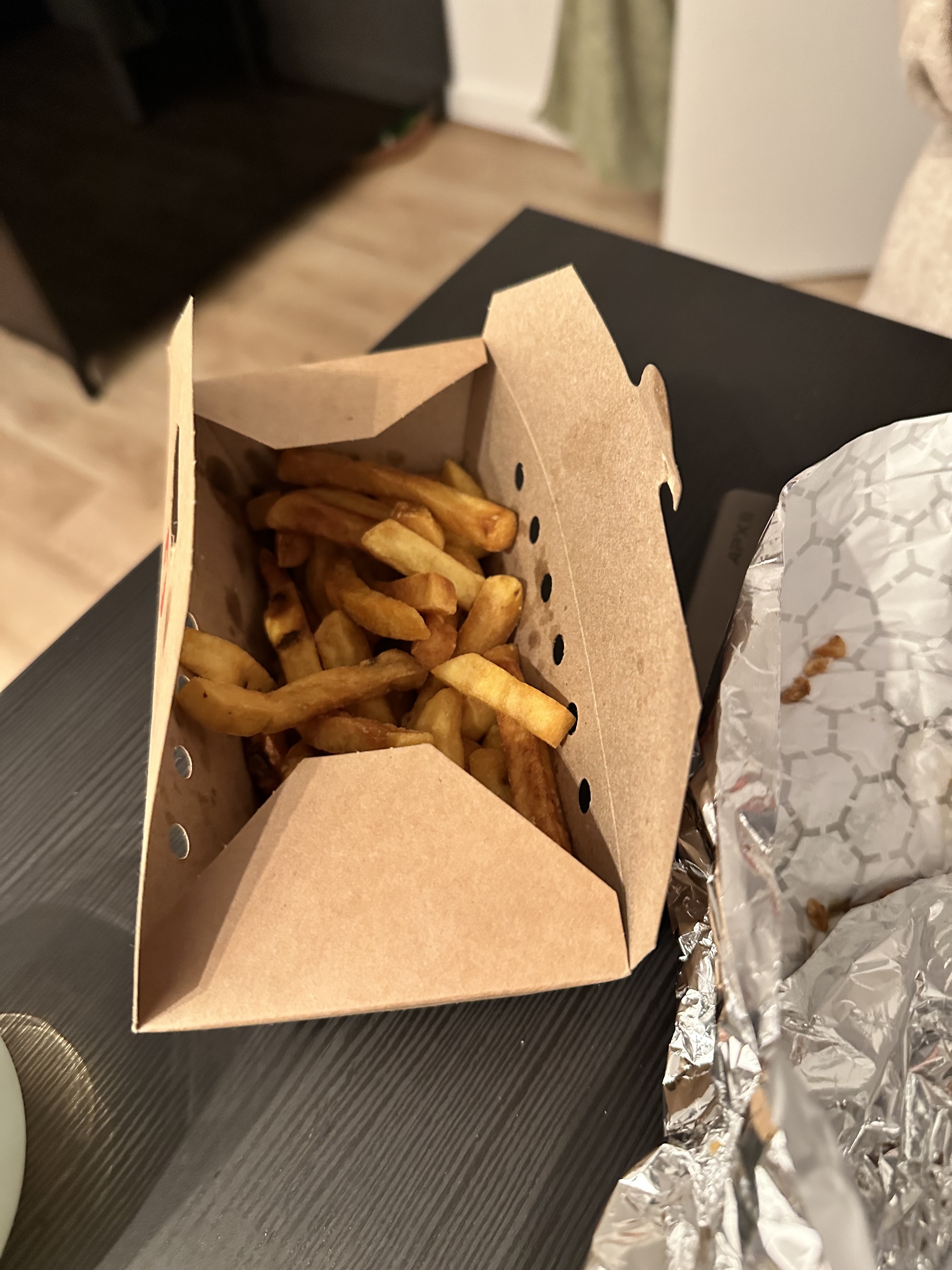 Commande à 40€ Supp patate douce payé Waffles demandées pour la 2ème personne Au final 2 barquettes de cul de frites… Commande à 40€ pour 2…et on a même pas des frites entières .. plutôt déçu de cette 1ere expérience