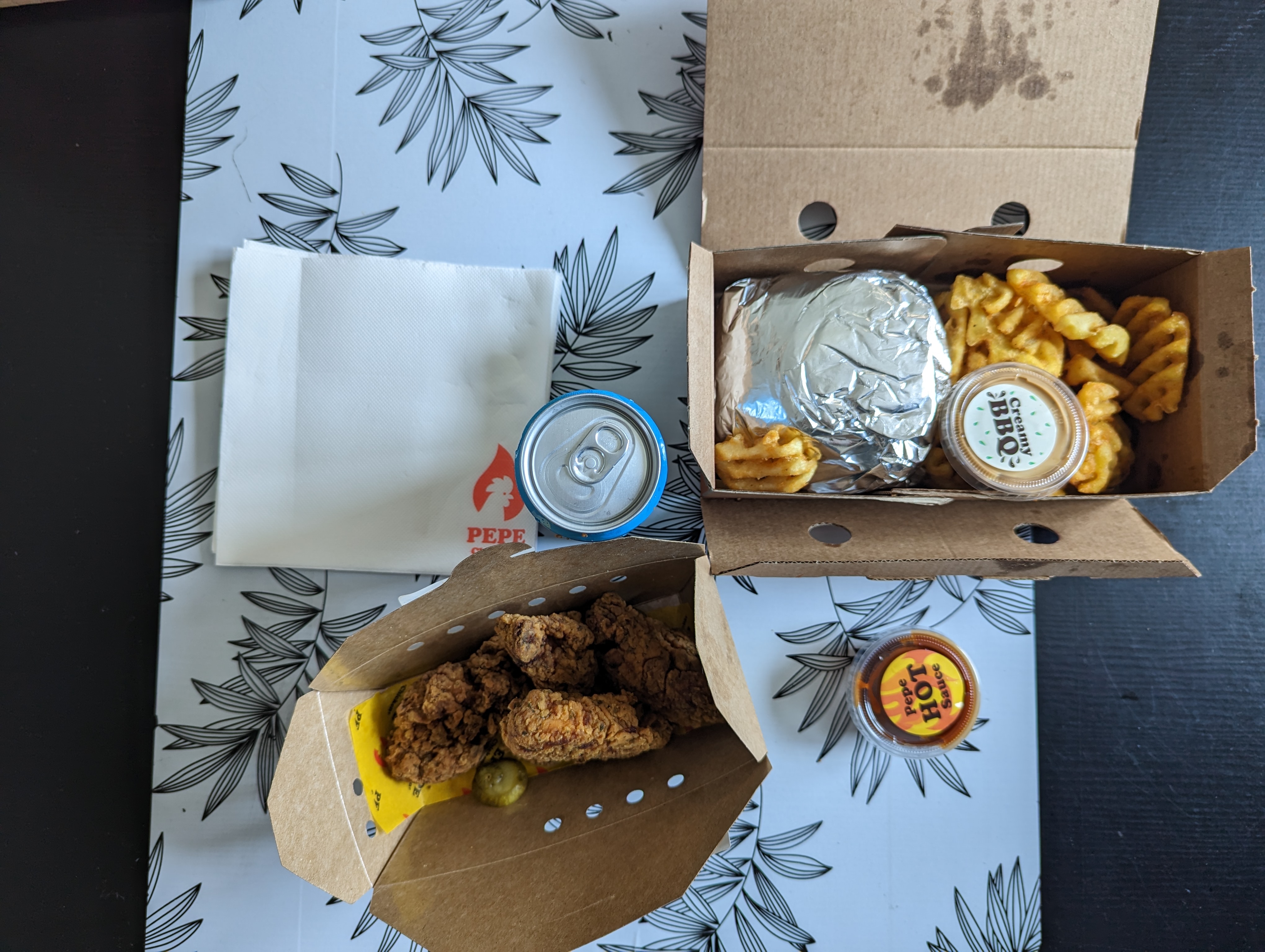 Livraison via deliveroo... très bien emballé. C'était très bon, enfin des wings qui ont du goût. Je recommande +++
