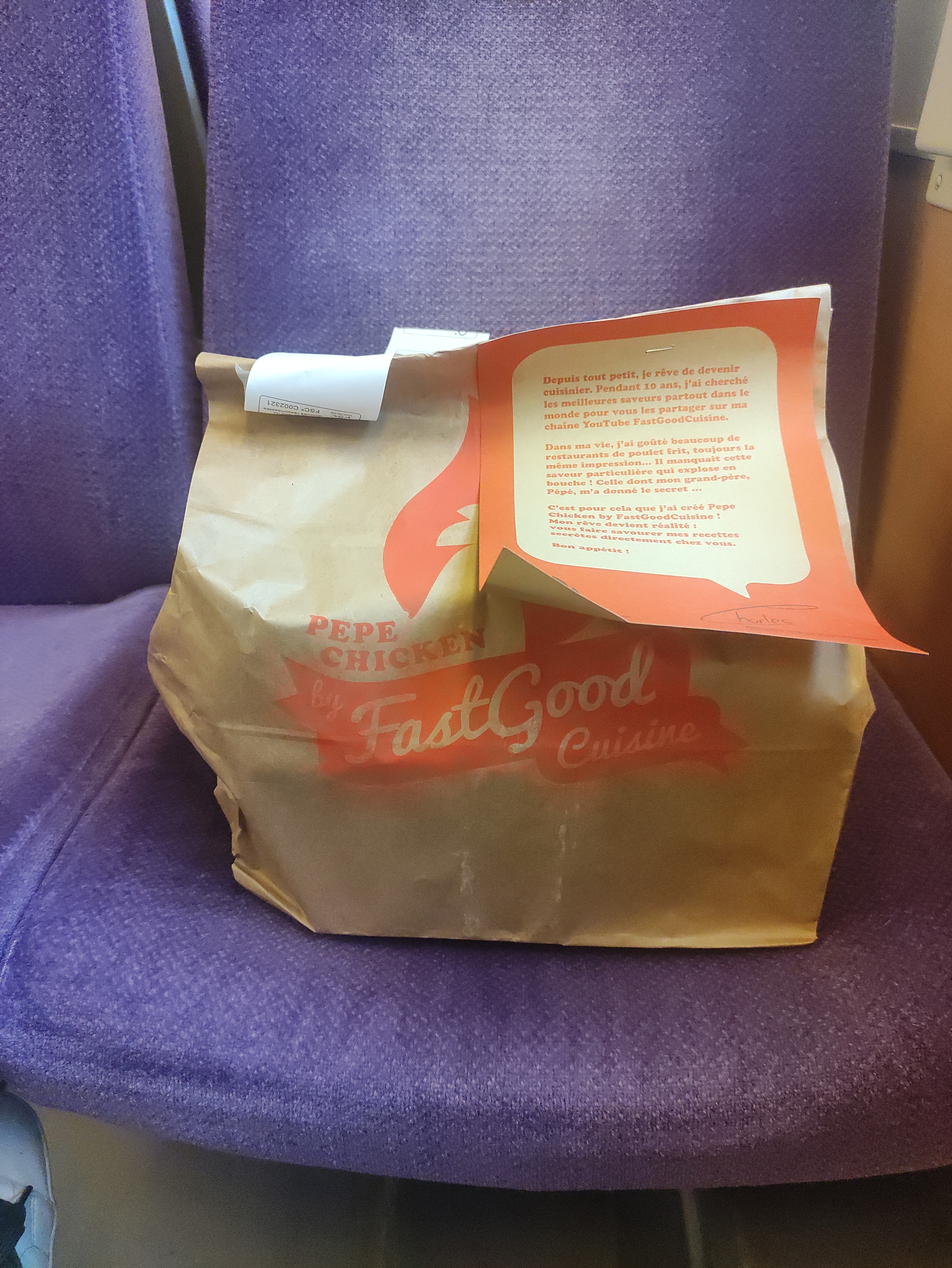 J’étais assez septique au début… un youtubeur qui crée une chaîne de fast-food … au début :) mais finalement c’est très bon ! Je n’ai pas eu de chance, la première fois que j’ai goûté, tout était froid mais j’ai laissé une seconde chance à Pepe Chicken ! Et je ne regrette absolument pas ahah !