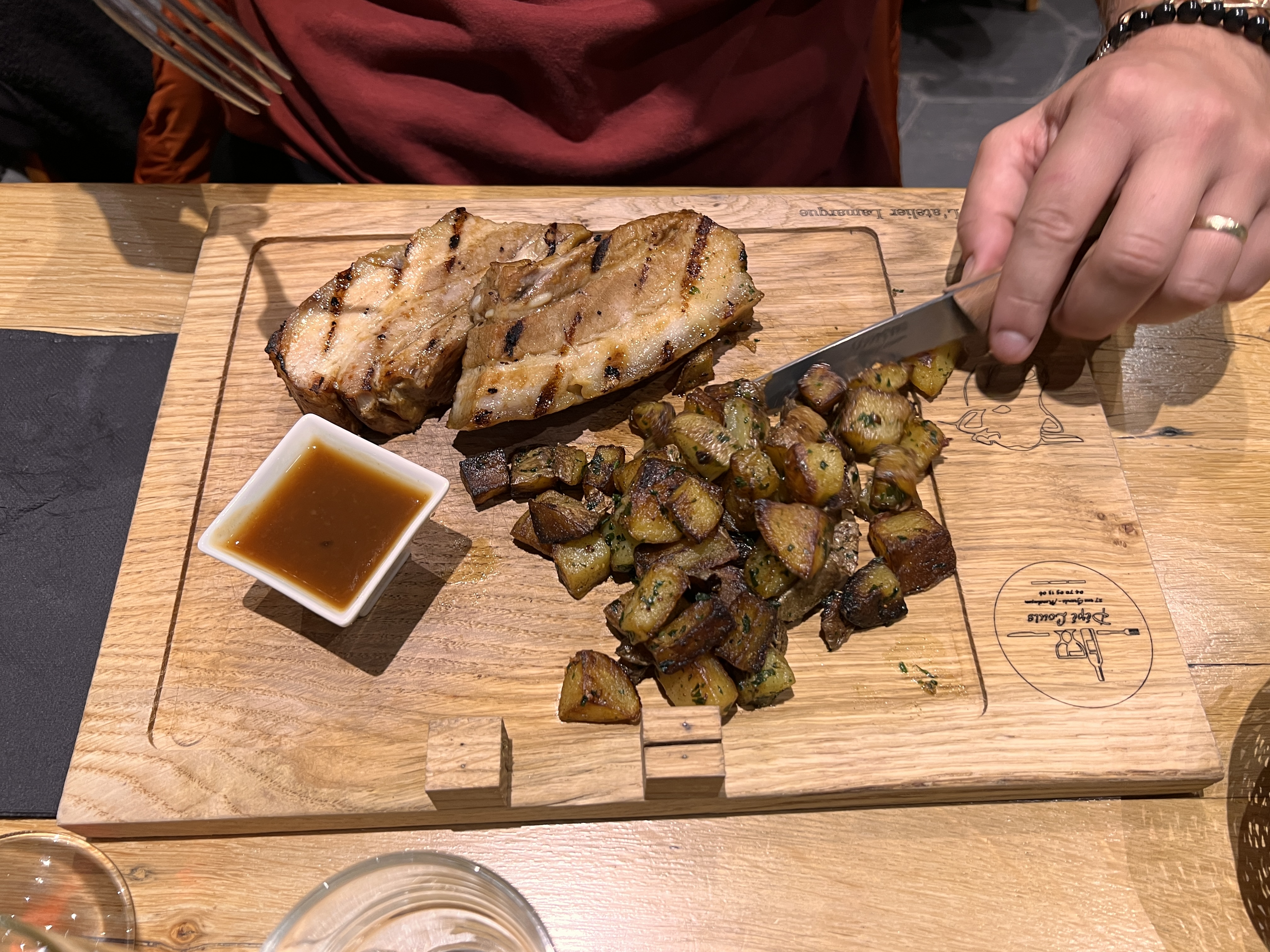 Sympa ,convivial , viande tendre à souhait, j'ai adoré la poitrine de porc Merci