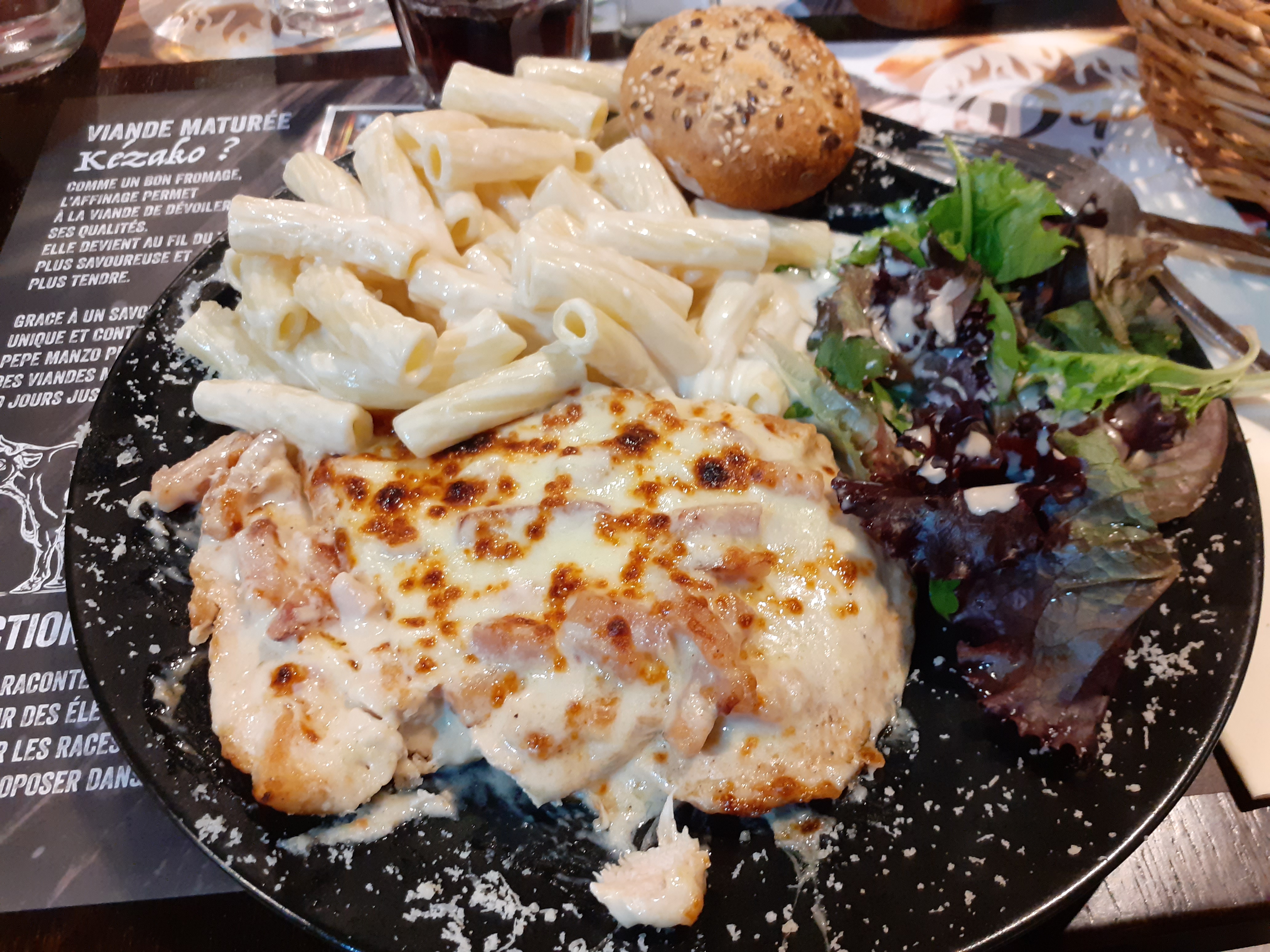 Escalope de poulet pas cuite, le reste du groupe n’avait pas la cuisson souhaité pour les entrecôtes. Nous avons dû renvoyer des assiettes. Le lendemain certains étaient malades… Le seule point fort c’est les serveuses très gentilles.