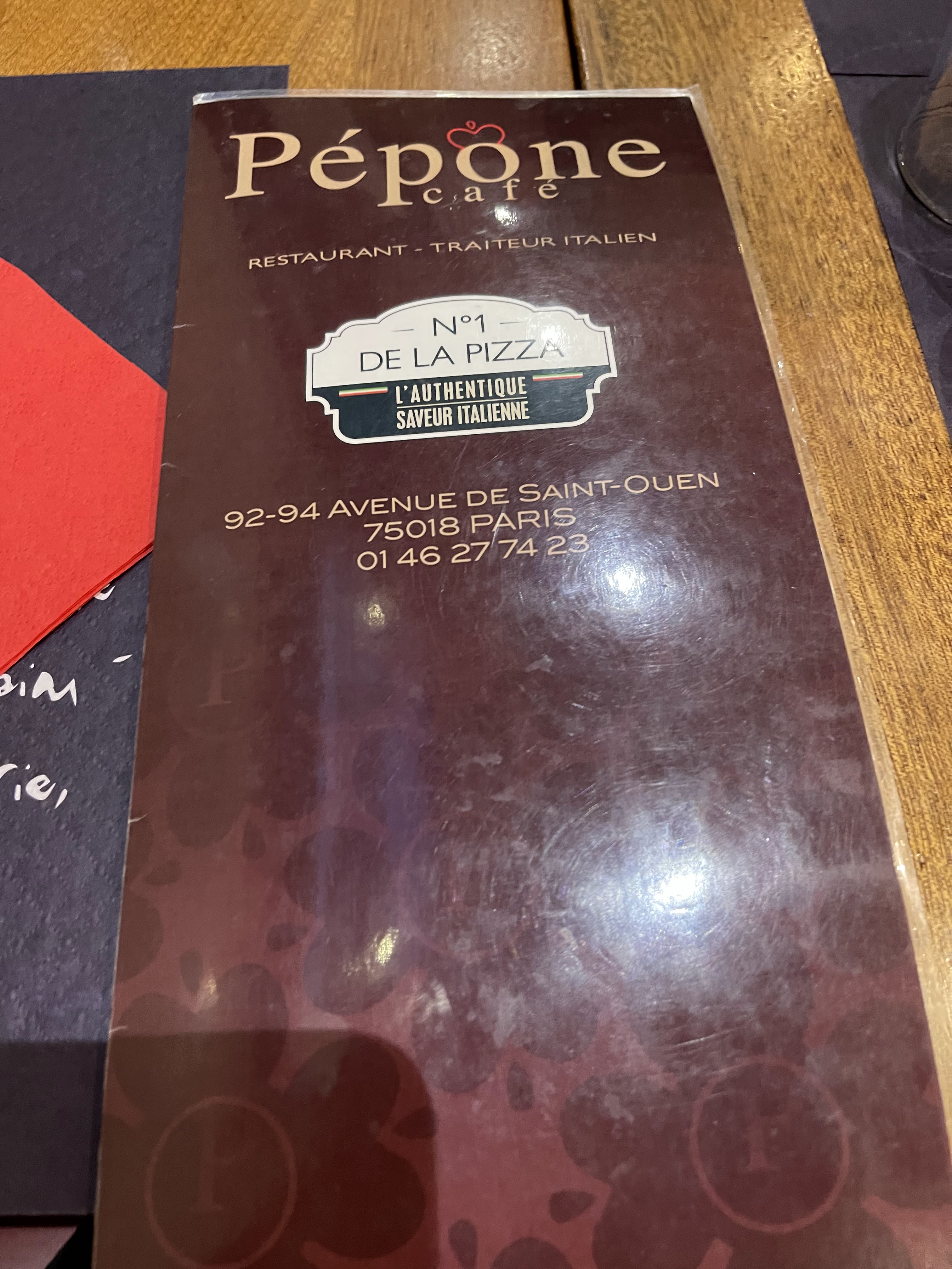 J’adore manger chez Pepone . Mon plat préféré c’est la pizza. Trop trop bon . Le service super. Je reviendrai ça c’est sure.Merci. Continue comme ca . Merci beaucoup