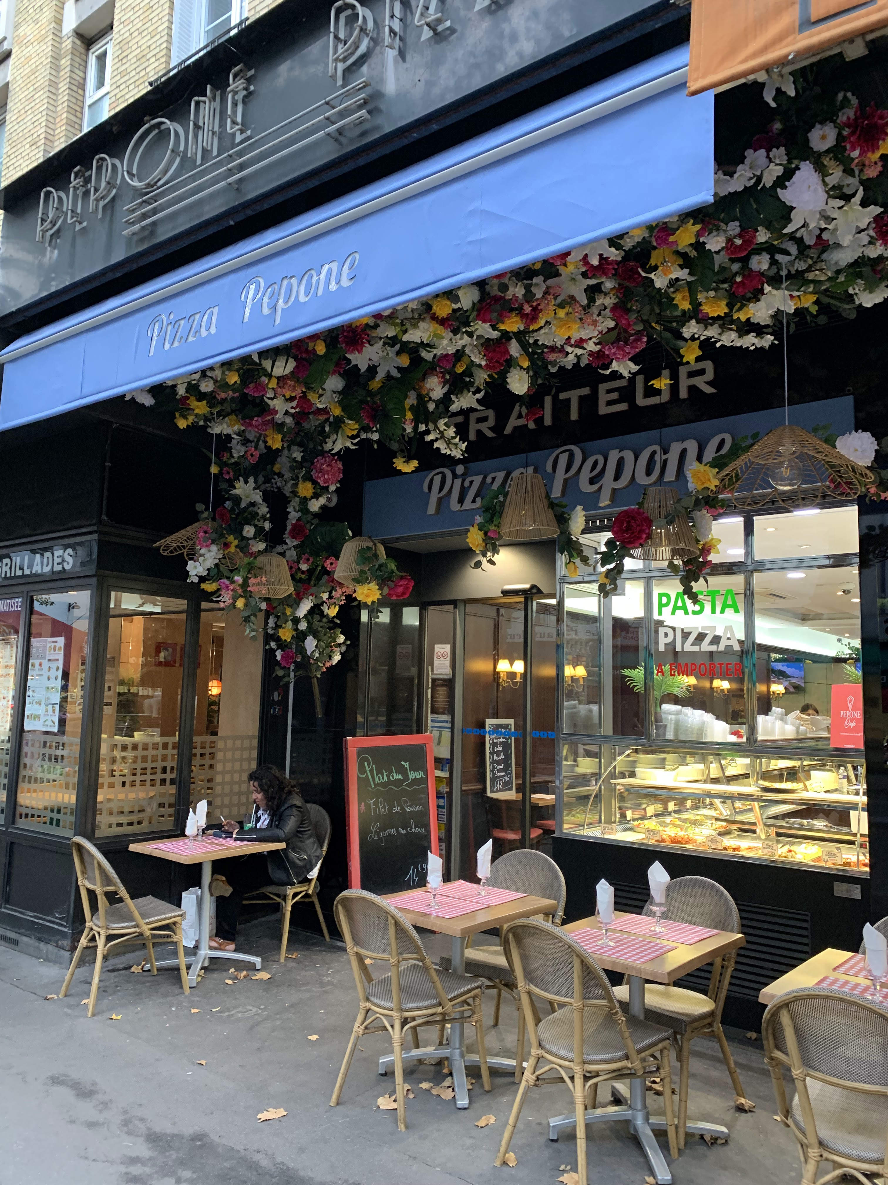 Il ne faut pas être pressé, ou limité par le temps pour manger chez Pepone, avenue ST OUEN, dans le 17ème arrondissement. Il y a une jolie variété de plats, salades, légumes, pizza, entrées sympathiques, et autres petits plaisirs. Le grand inconvénient dans ce restaurant, qui d'ailleurs m'empêchera d'y retourner, c'est l'attente, incompréhensible, alors qu'en arrivant à 12h10 le restaurant est quasi vide. En fait, j'ai remarqué que les responsables du lieu, préfèrent privilégier les personnes qui viennent pour emporter des plats, et laisser attendre les clients déjà sur place ( surtout quand il y a un manque de serveur ). En résumé, le service est à revoir fortement, en attachant de l'importance à tout type de client. Je suis très déçue.