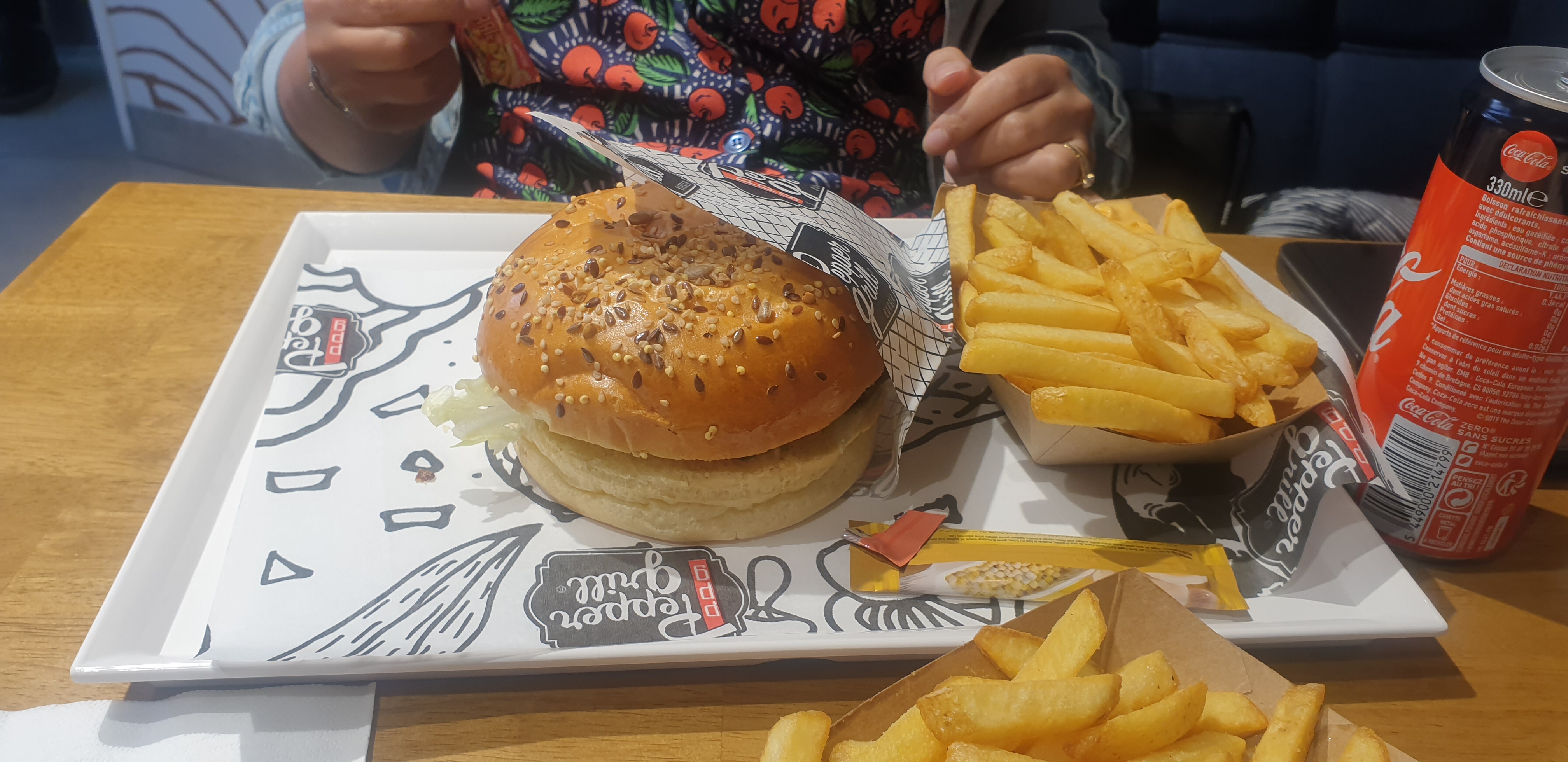 Testé aujourd'hui, très bien, le burger fish avec de bons filets de cabillaud. Un bon son, ça c'est cool, fauteuil confortable. Personnel sympathique. Je vous conseil Pepper Grill de Mantes 👍👍