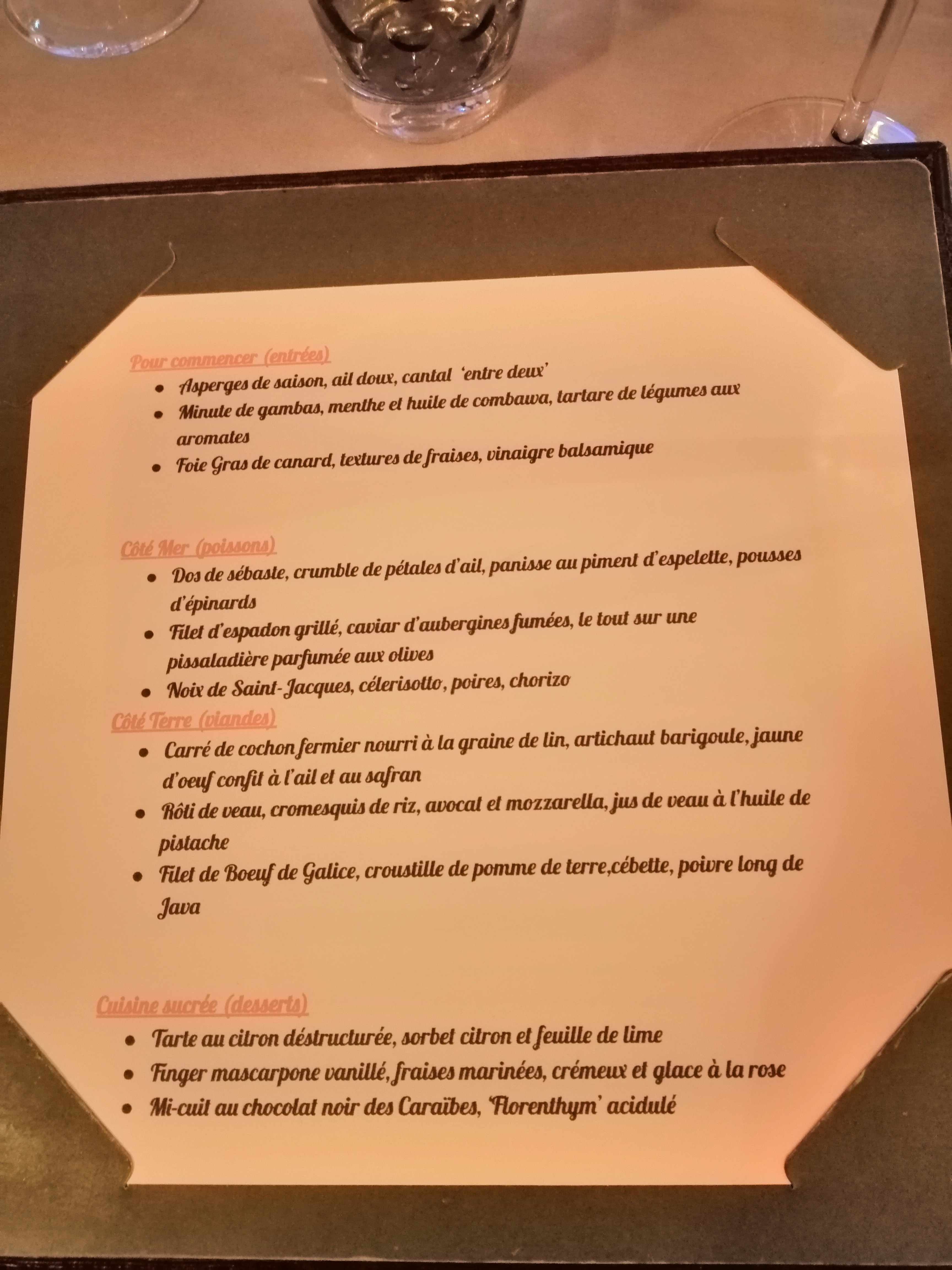 Un très bon dîner, une cuisine mettant bien en valeur des produits frais, locaux et de saison. Excellent service, bravo !