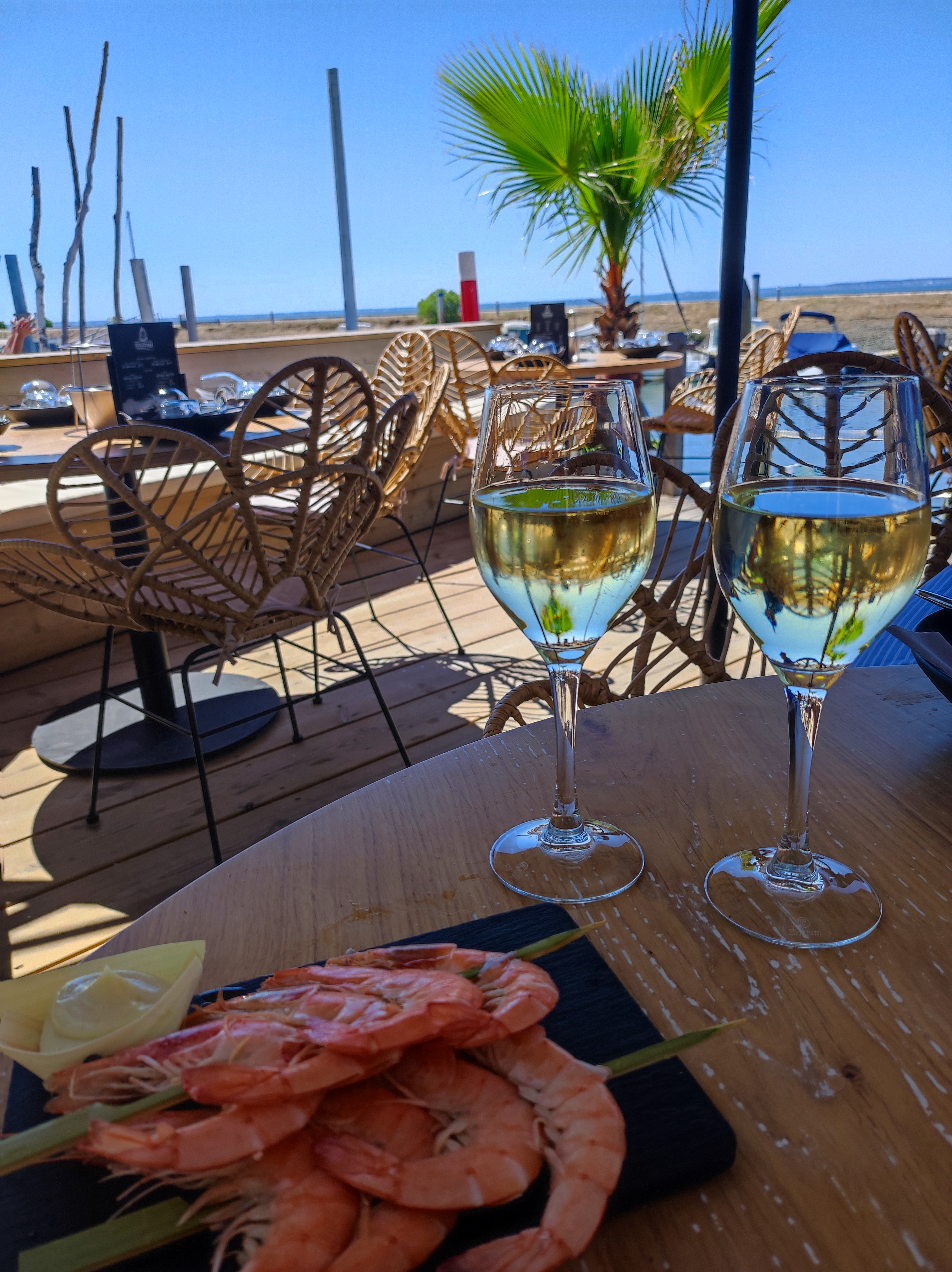 Arrivé par hasard en vélo sur ce lieu ldilique nous avons craquer pour des fruits de mer exellents ainsi que le vin pain et aïoli En plus notre table donnée sur l entrée des canaux avec cerise sur le gâteau un super coucher de soleil merci pour l accueil nous conseiller A